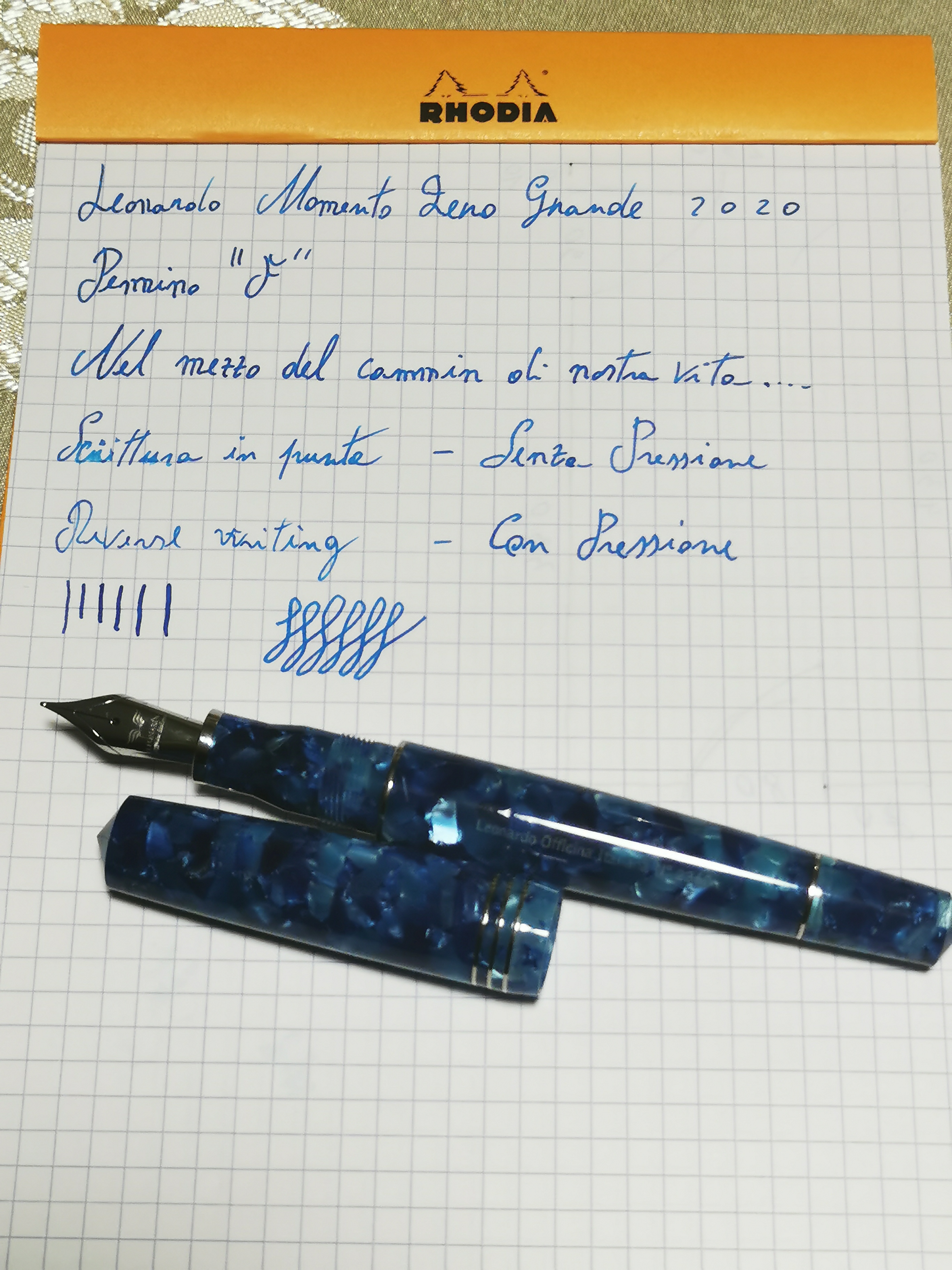 La grafia è una cosa personalissima, non esiste pessima a mio modo di vedere, ma con caratteristiche diverse dalle altre. C’è persino chi la studia e ne ha fatto un mestiere.kisso ha scritto: ↑sabato 23 gennaio 2021, 20:56La mia calligrafia è veramente pessima, per cui mi limito a riferire le mie impressioni. Dunque il pennino è un fine, che ha comunque un tratto generoso, così come il flusso, grazie all'alimentatore in ebanite. Le dimensioni generose della penna non ne innalzano particolarmente il peso, per cui si riesce a scrivere fluidamente anche con il cappuccio calzato.lonetraveler ha scritto: ↑sabato 23 gennaio 2021, 18:00 Molto bella, stavo appunto per chiedere il modello preciso... ma mi hai preceduto!![]()