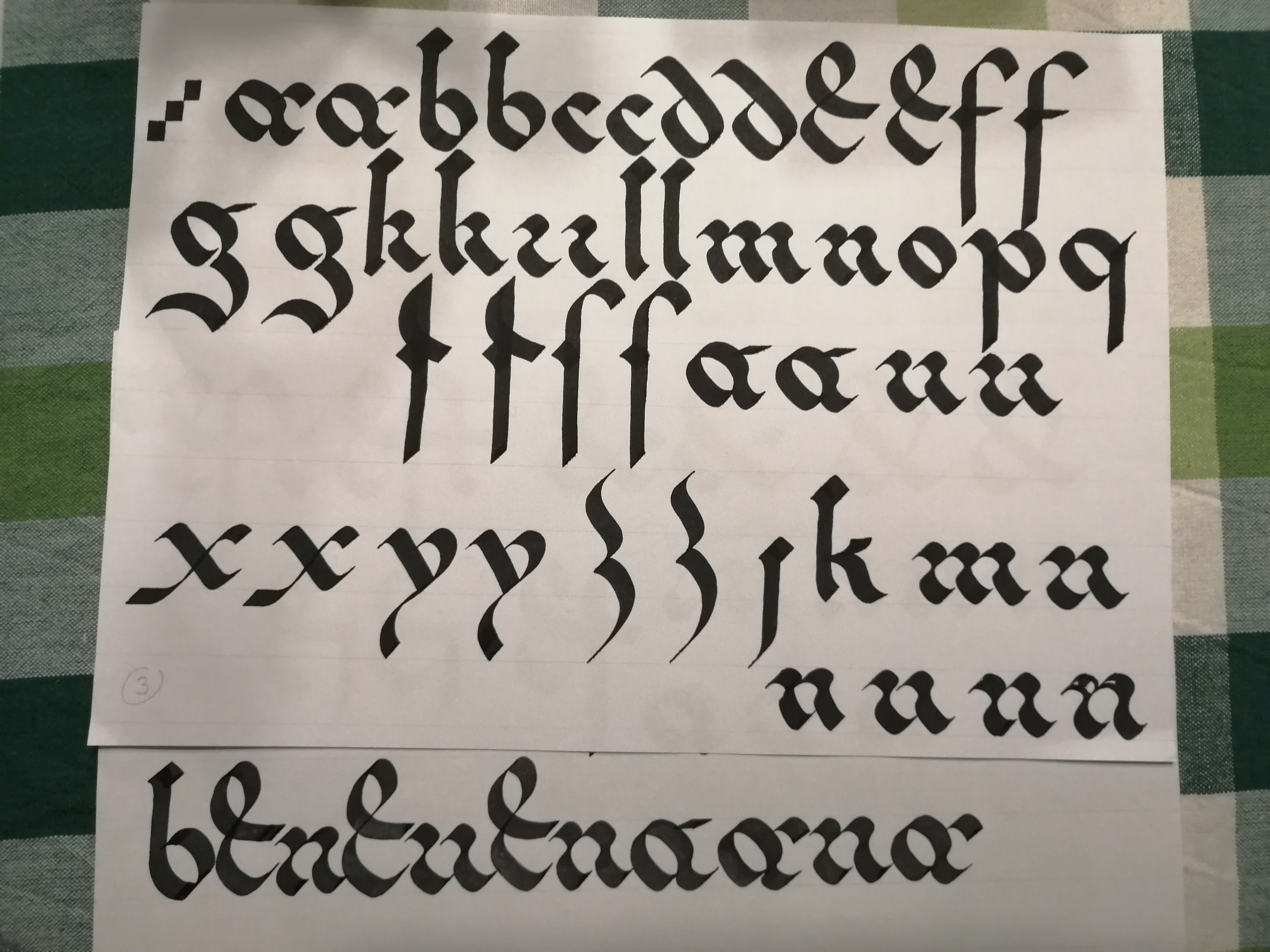 Ciao Dory, mi sembra complesso trovare il giusto ritmo di scrittura (oltre alle "ochette"). Ho fatto qualche prova, ma dovrò riprendere perché ho interrotto qualche settimana fa. Ti allego il massimo che sono riuscito a produrre finora (comprensivo della "traduzione" perché oltre al problema della scrittura c'è quello della lettura