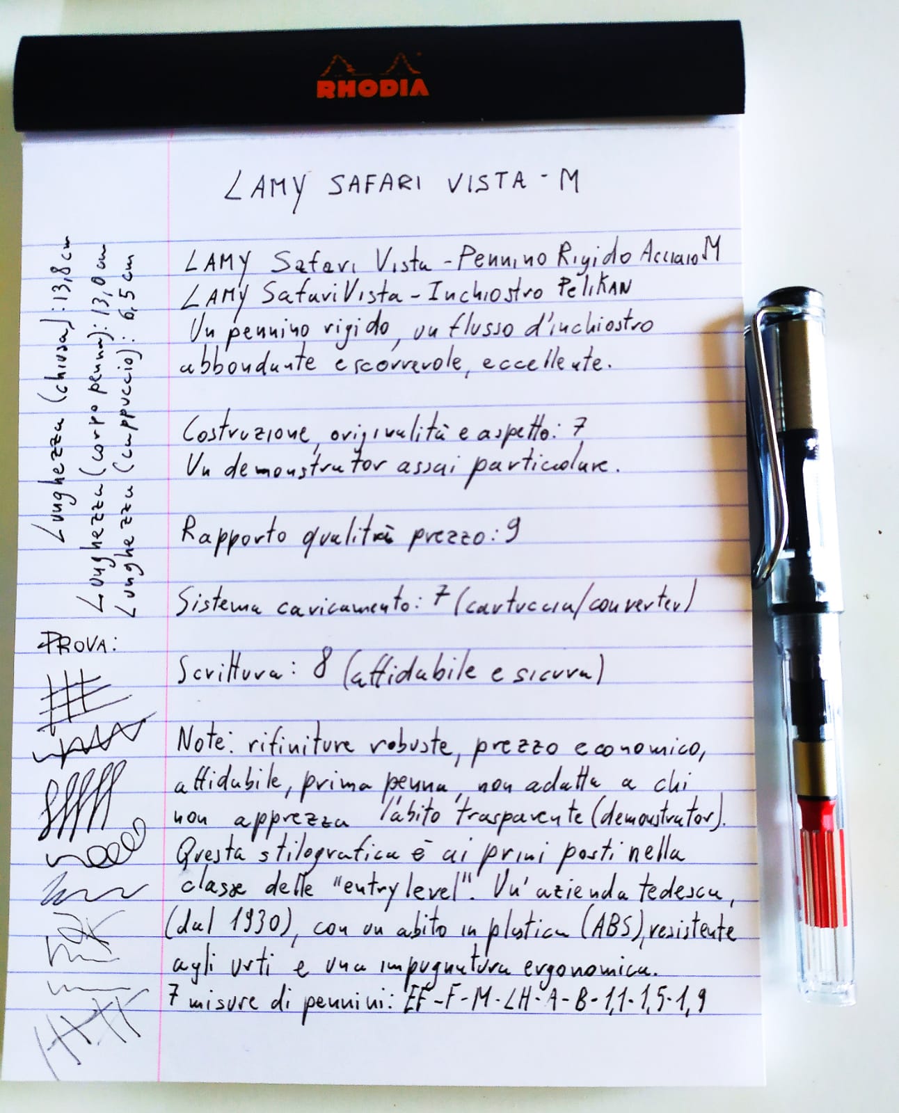 La ringrazio per la sua cortese annotazione, nelle mie recensioni (sicuramente non prive di errori e incongruenze), io assegno i miei voti in maniera del tutto personale e priva di interessi (voto 7,5), mentre nelle note negative apprendo dai pareri espressi da altri oppure da situazioni pregresse. Accade che quello che è un difetto per me, in realtà è un pregio per un altro (la mancanza della clip in una stilografica oppure la sua importanza esagerata, il colore del converter rosso oppure nero, ecc.). In conlusione per me vale 7,5, poi nelle note positive o negative, è giusto indicare anche quello che qualcuno registra (maggioranza o minoranza che sia). Non so se sono siuscito ad essere chiaro, talvolta mi manca la capacità di sintesi e chiarezza. Credo che ognuno di noi la possa pensare come vuole, il mio bilancio finale premia la Lamy Safari (voto di media: 8) per la sua generosità, sincerità, stile e affidabilità e tanto altro ancora...
