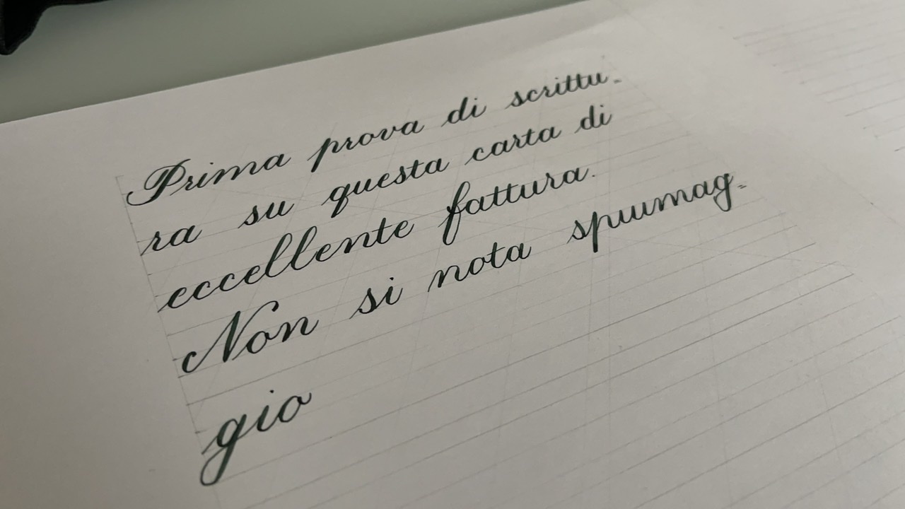 Nel frattempo ho provato a scrivere due righe senza troppe pretese tecniche, giusto per provare la carta. Sembra di scrivere su Rhodia.