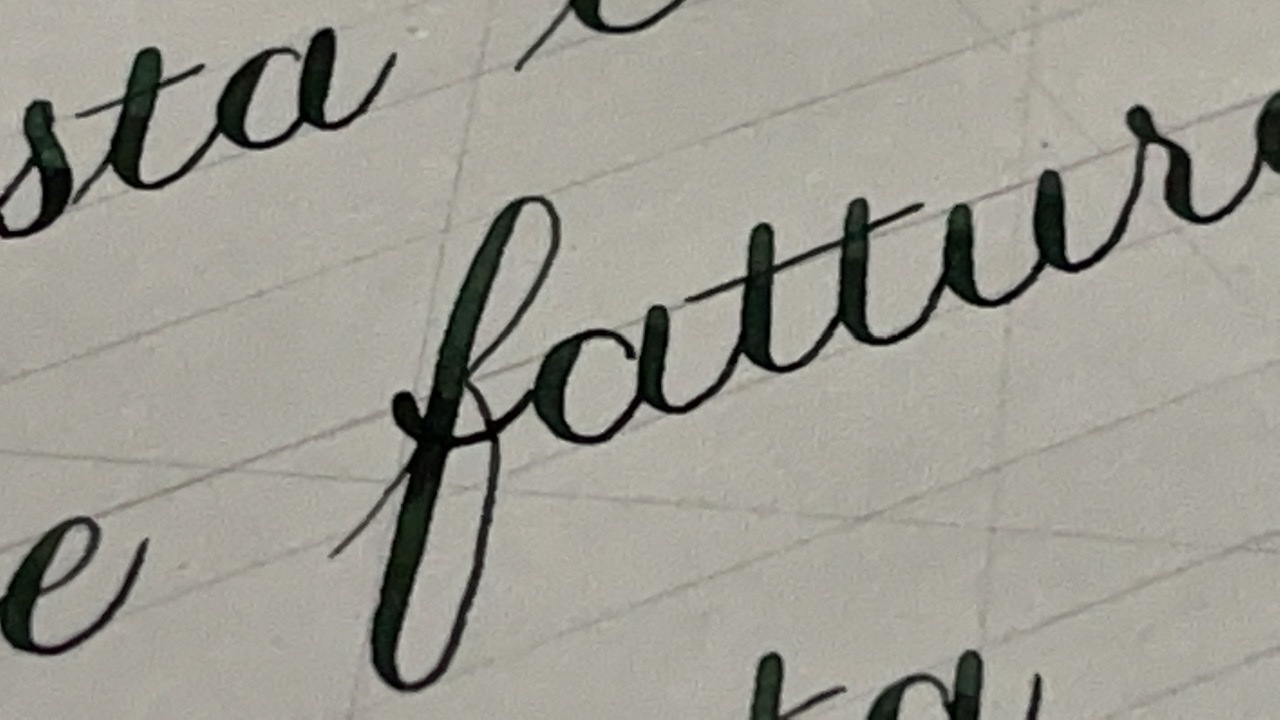 Fortunato ad avere la zia che ti può fornire carte diverse e di diverso formato; un buon modo di ricambiare la sua gentilezza penso potrebbe essere scrivere qualche bel testo....ne quale non ci siano le effe obbrobriose che continui a far vedere ( :) ) e le a siano fatte correttamente con l'ovale completo ( ;) ).