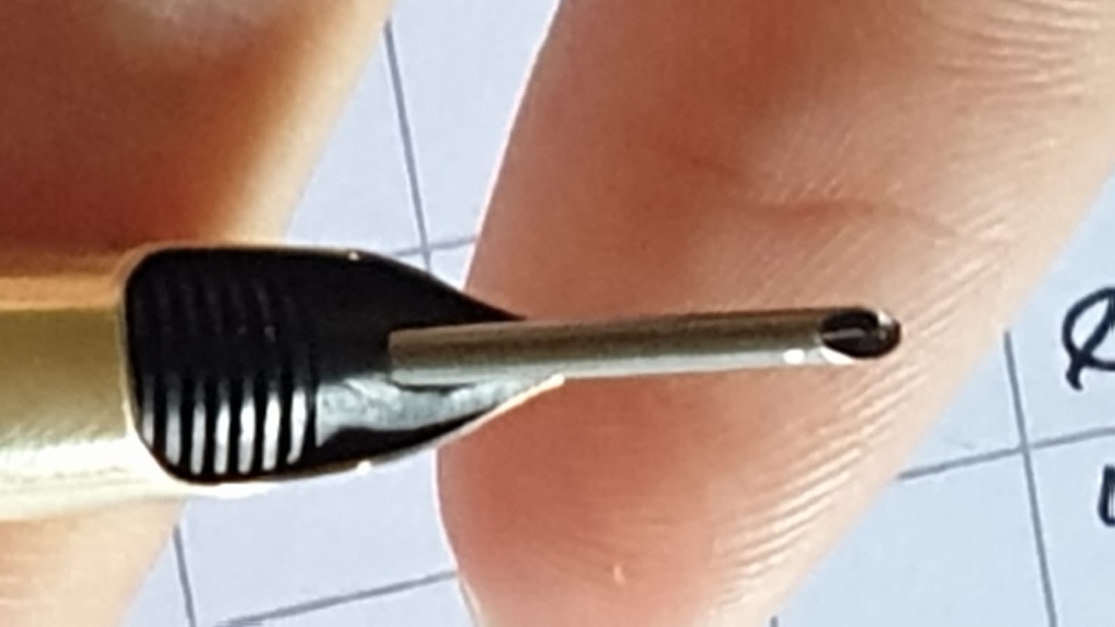 ho purtroppo notato che il canalino dello snorkel ha dentro pezzettini di gomma che ho paura lo intasino la parte frontale si è scheggiata, ho riallineato a mano i canalini e l'ago con una pazienza disumana e ora vedo la fessura dall'altra parte. purtroppo finche non arriva il sacchetto non so come testare la scrittura, posso provare a bagnare la punta o rischio che risalga fino al contenitore?