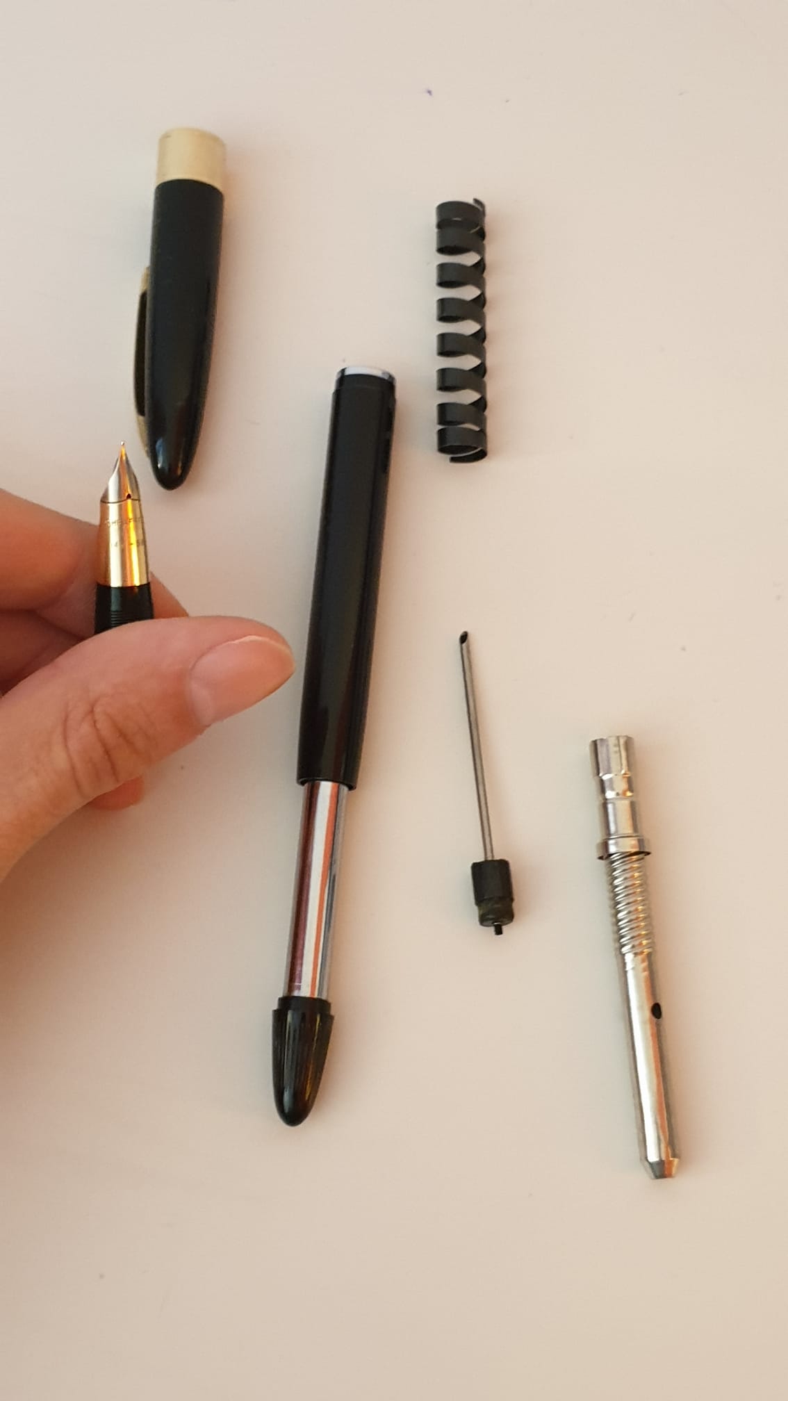 ho seguito diverse guide e tutorial e sono riuscito a smontare la penna rimuovere ruggine e inchiostro secco.