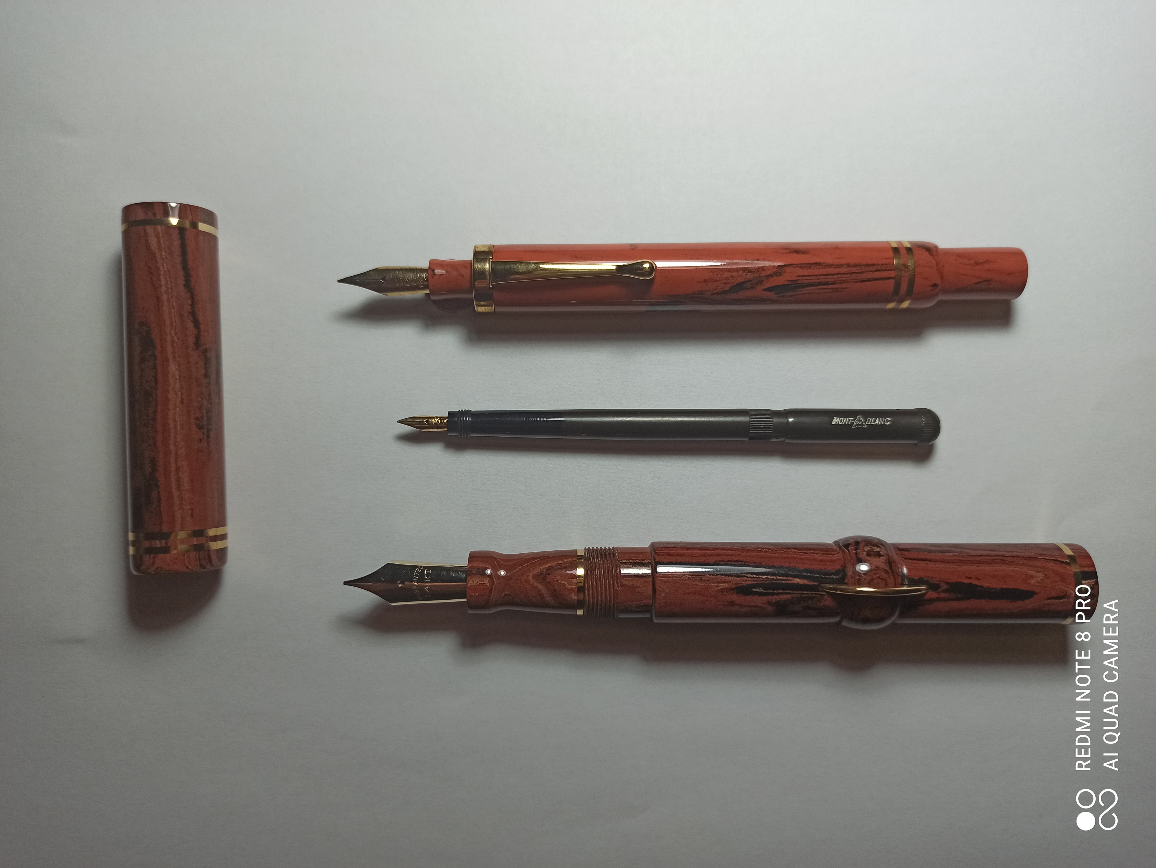 Ho appena finito una crescent filler oversize con pennino n 8 waranted il materiale e ebanite tedesco edizione limitata che si chiama Vesuvio ll in confronto e una Pelikan 800 e una 1000 infine MB baby e waterman 58(purtroppo manchero da Firenze per motivi di lavoro)