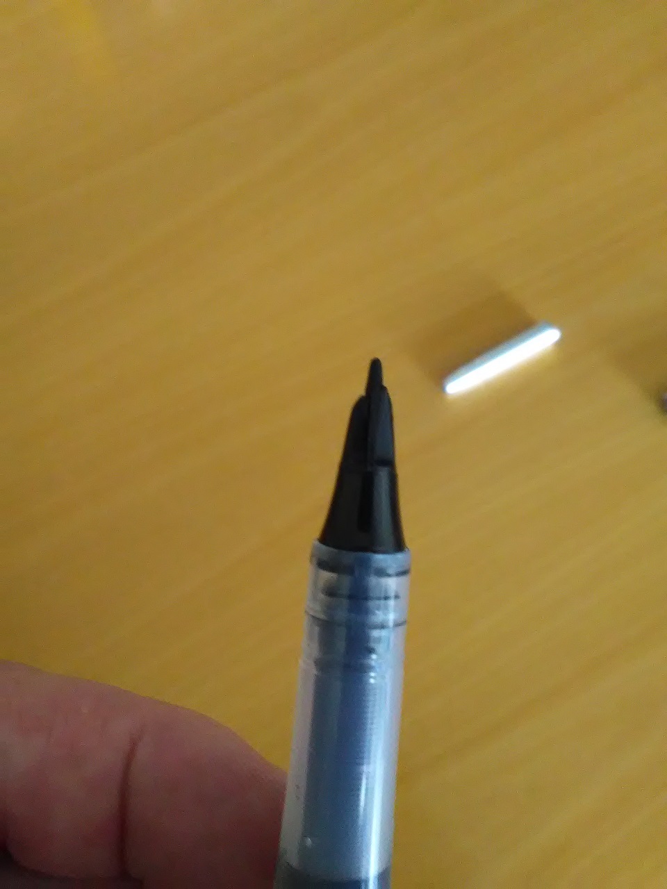 La punta rigida permetteva di ottenere due tratti, uno sottile e l'altro grosso con una serie di tratti intermedi. Quando arrivò alla fine della carica di inchiostro un disastro, gocciolava abbondantemente, per fortuna poi non trovai più il ricambio e ora giace nella scatola dei ricordi