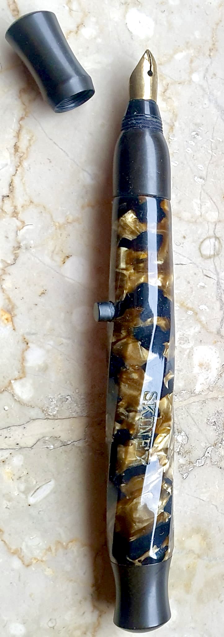 A proposito di penne dalla forma tortile, c'è anche questa SKINEX dal design molto innovativo, senza clip e con un inconsueto pulsante per cicchetto sul corpo penna. Caricamento a bottone di fondo.
