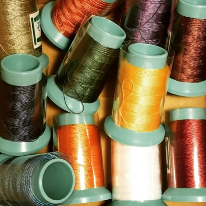 Scegliere un filo per cucire un oggetto di pelle è un po’ come scegliere l’inchiostro con cui caricare la penna, si considerano vari fattori. E come per gli inchiostri.. tanti bei colori.