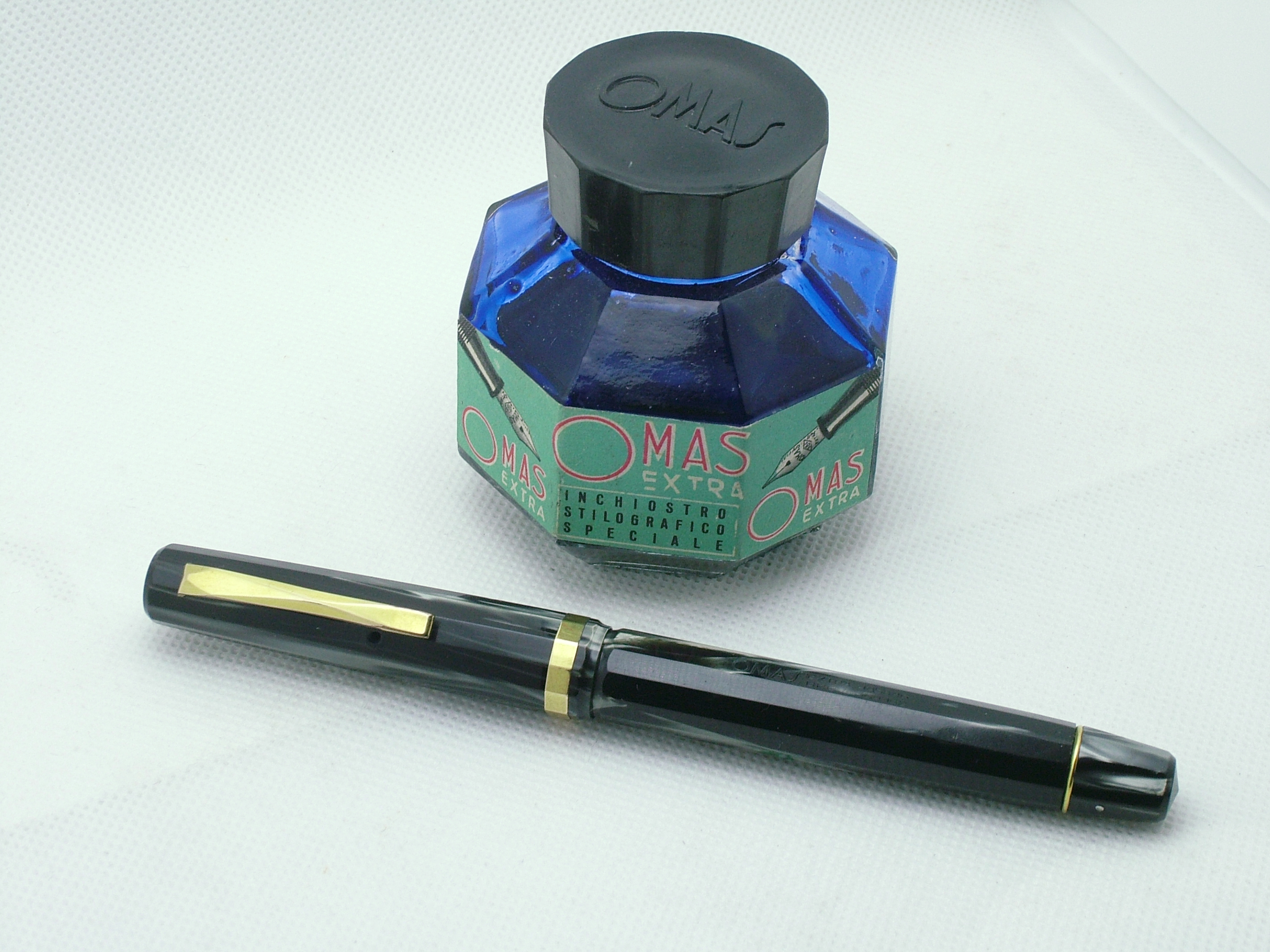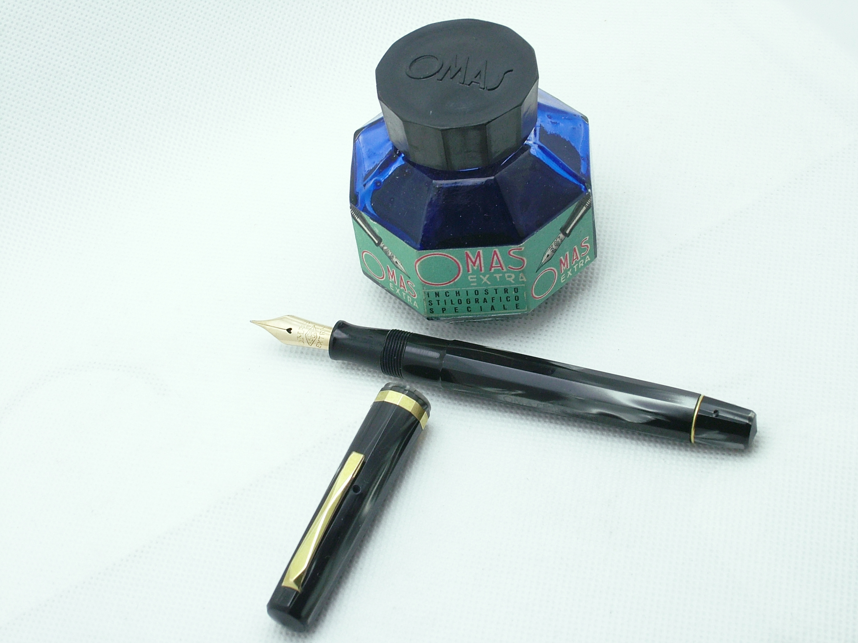 Ultimo acquisto, una meravigliosa Omas Extra misura media (556 F) degli anni '50 in celluloide marmorizzata grigia,