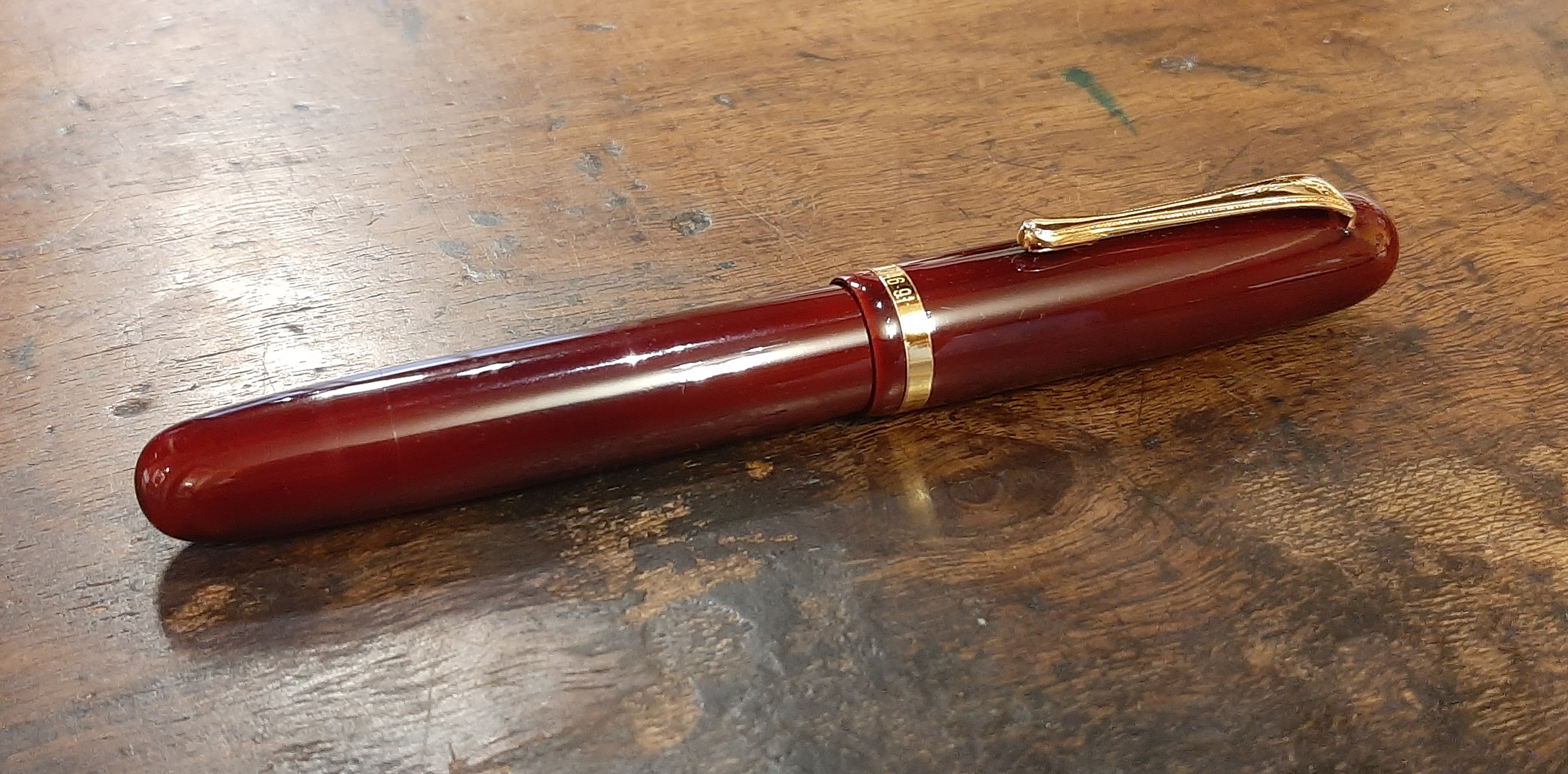Penna prodotta nel 1989 in soli 92 esemplari a causa dell' improvvisa morte del maestro pennaio giapponese che per conto dell' allora Visconti le produceva a mano pezzo per pezzo. La penna è in ebanite e poi laccata tramite il tradizionale metodo giapponese Urushi, carica con contagocce, è una eye dropper; per scrivere bisogna svitare leggermente il fondello che esiste ma la cui congiunzione con il fusto è quasi invisibile. Come pennini vennero utilizzati dei warrented vintage semi flessibili rifiniti e punzonati GK (Kabutogi Ginjiro), il mio scrive molto bene con tratto fine. È una penna imponente, sobria e molto elegante, leggermente più grande della 149. La sensazione tattile è molto gradevole, è un materiale caldo e avvolgente, stessa sensazione delle penne in celluloide. La veretta dorata del cappuccio riporta il numero di serie../92