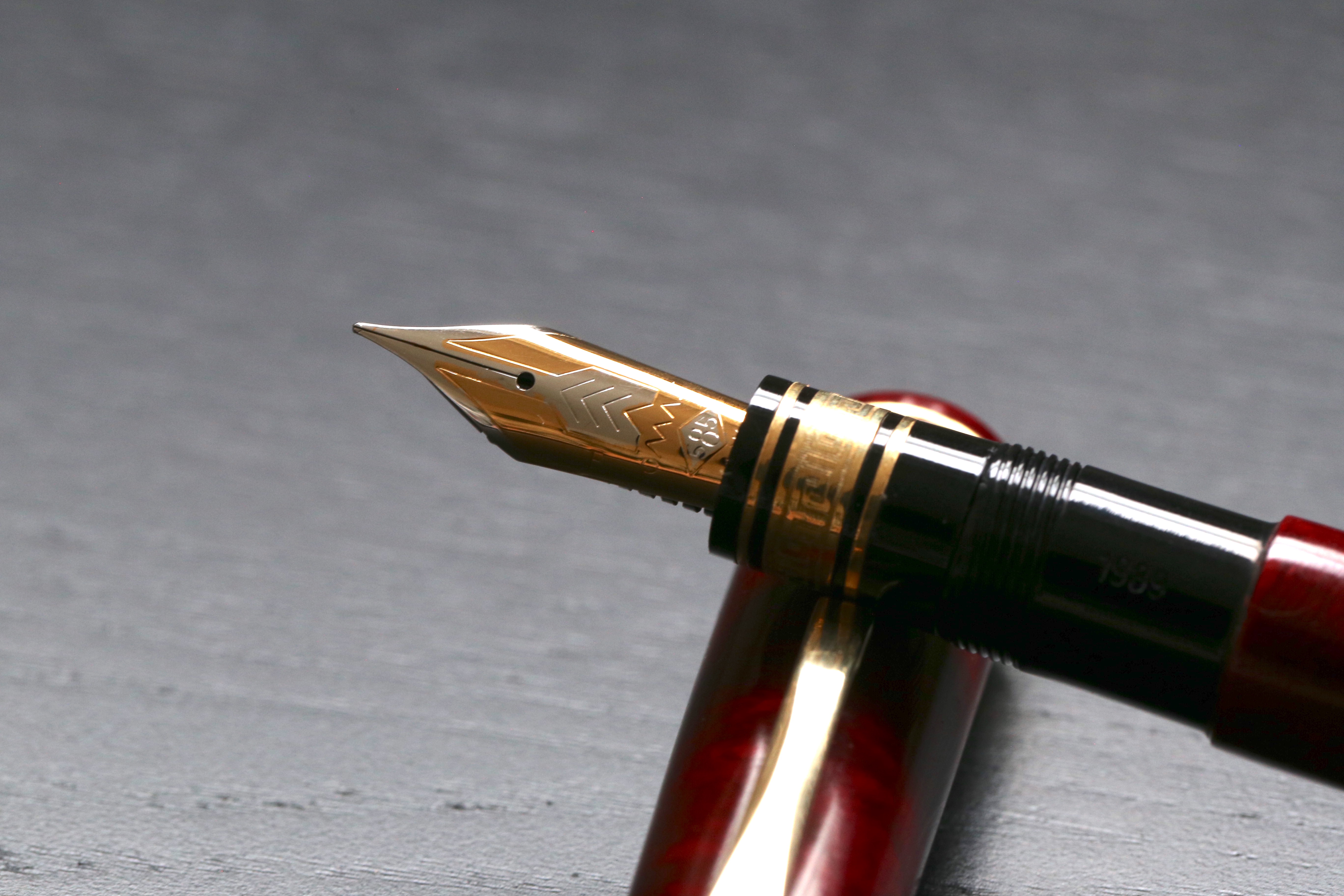 Ho notato che l'esemplare di Sanserei ha il pennino 18K ed è la serie del 1992, mentre la mia con pennino 14K è del 1989. Chissà se c'è una relazione tra le due cose, siccome Luca ha sul suo esemplare un pennino 14K sarebbe utile capire di che anno è la sua.