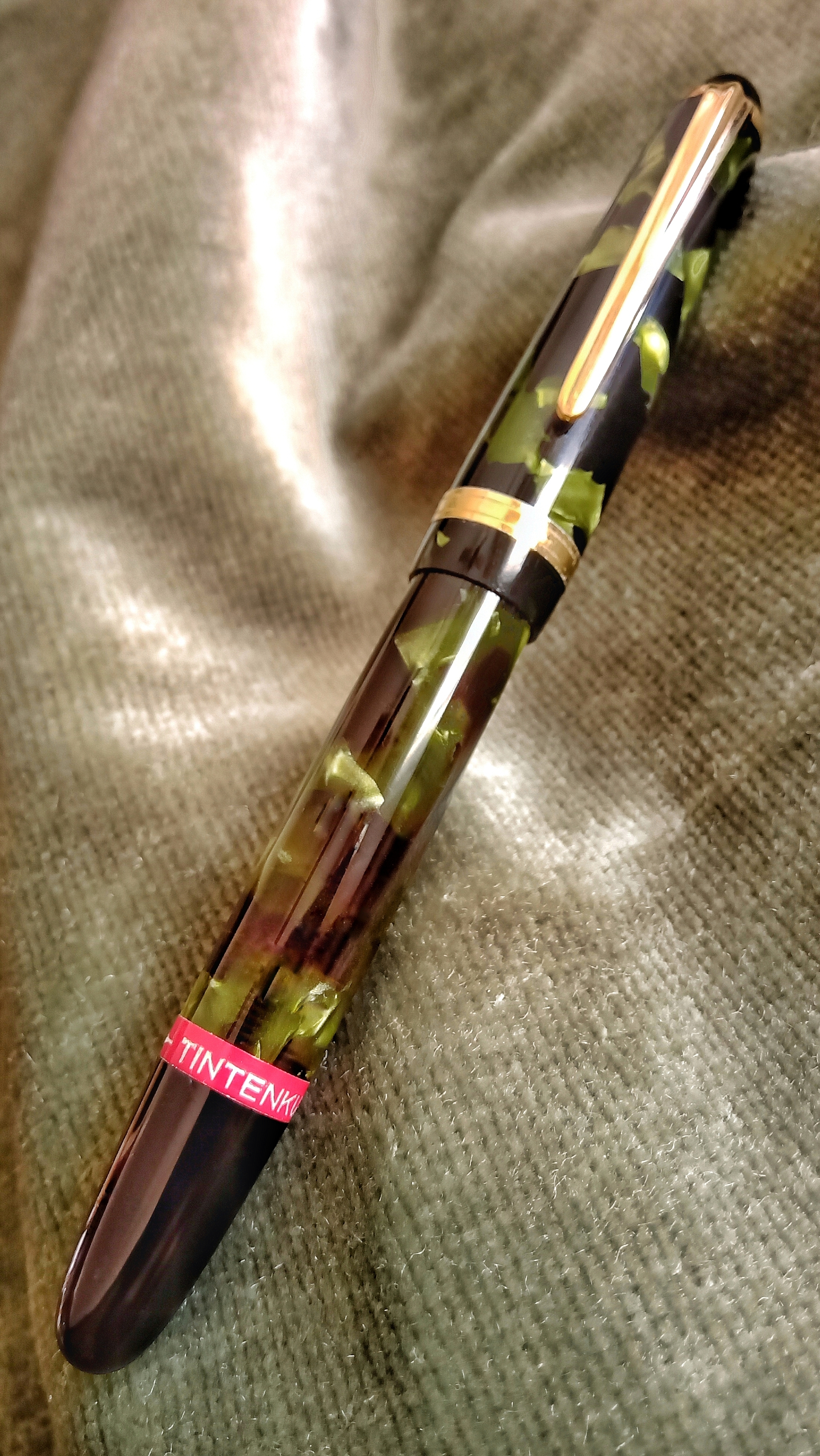 I would like to present to you in this continuation of capillographs, this Tintenkuli from the 50s, third generation, that although I cannot say with certainty if it was manufactured in Germany or Argentina, its unique structure is made of celluloid with a green pearl laminate that gives a very particular beauty...
