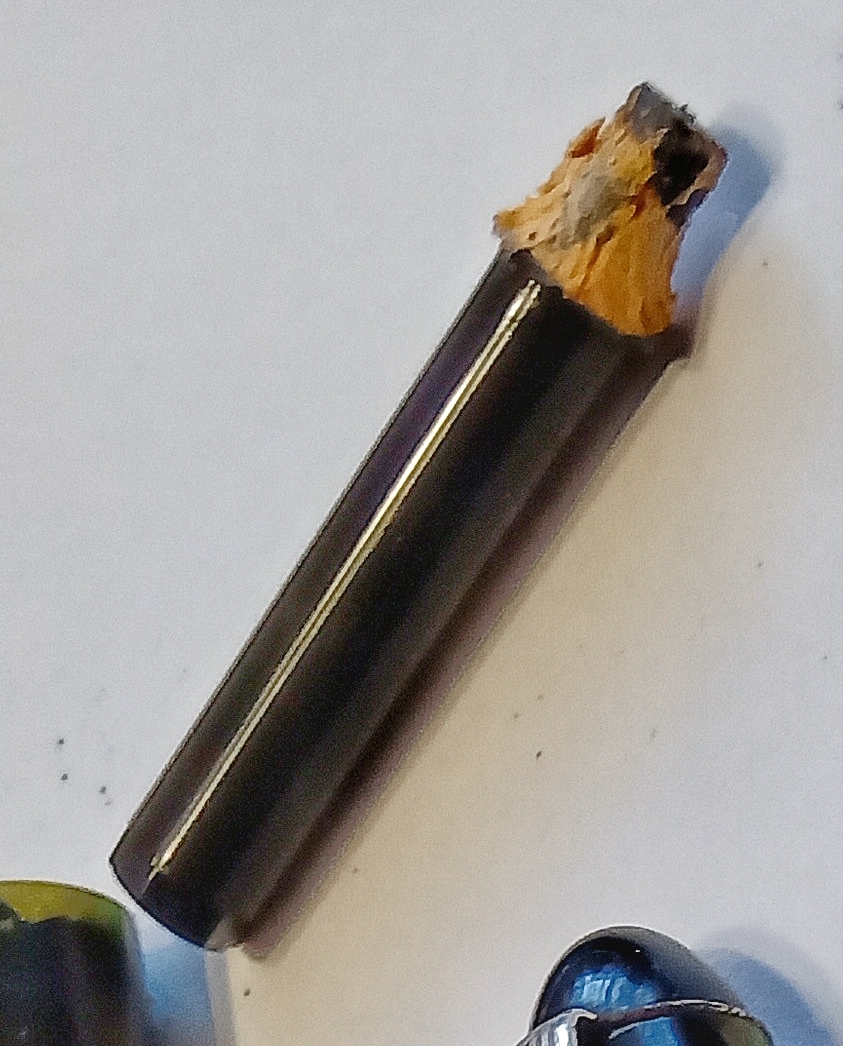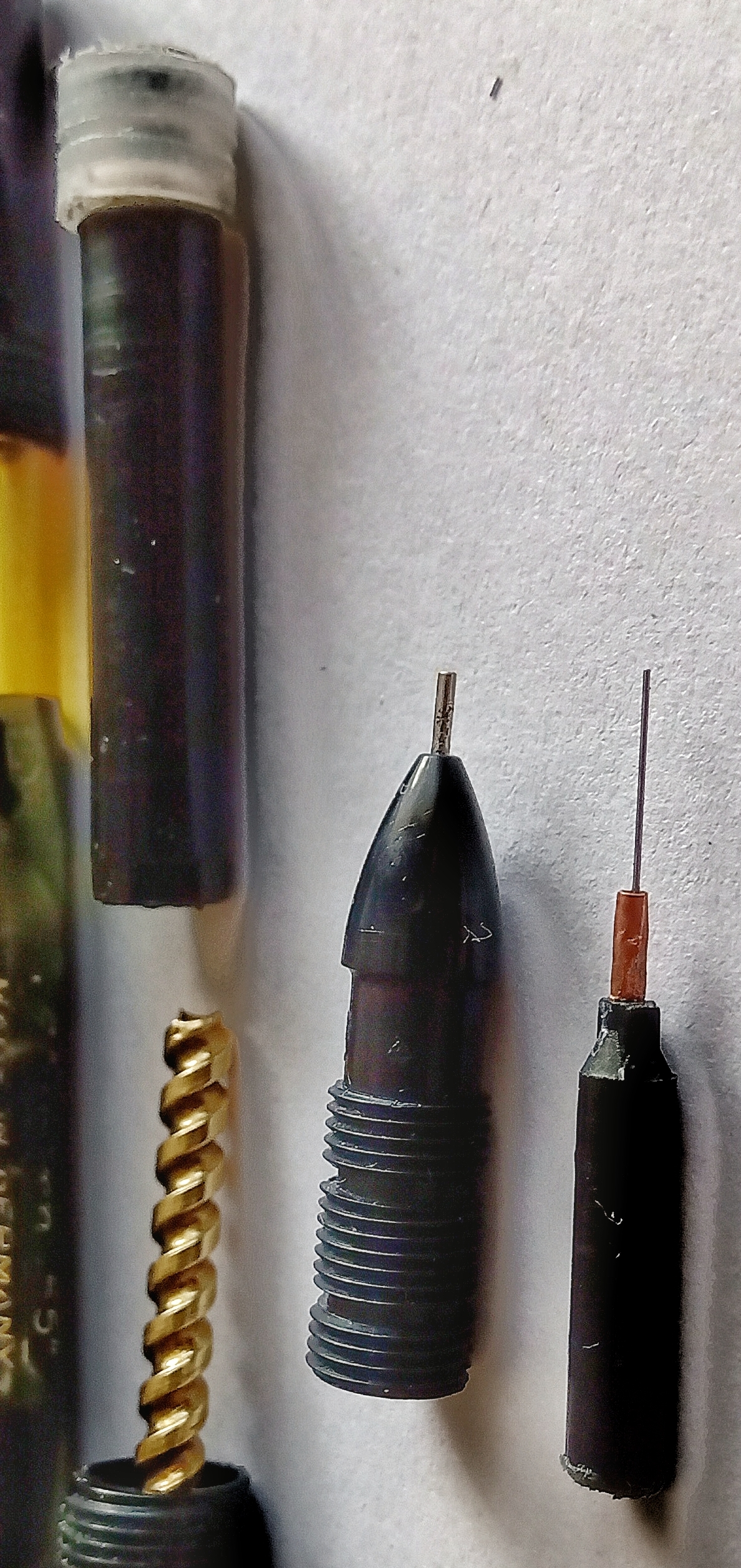 Il pistone, completamente distrutto, è stato sostituito da un pistone in materiale sintetico, e lo spillo/bilanciere, da una parte Rotring Variant che doveva essere calibrata e accorciata per funzionare all'interno del meccanismo...