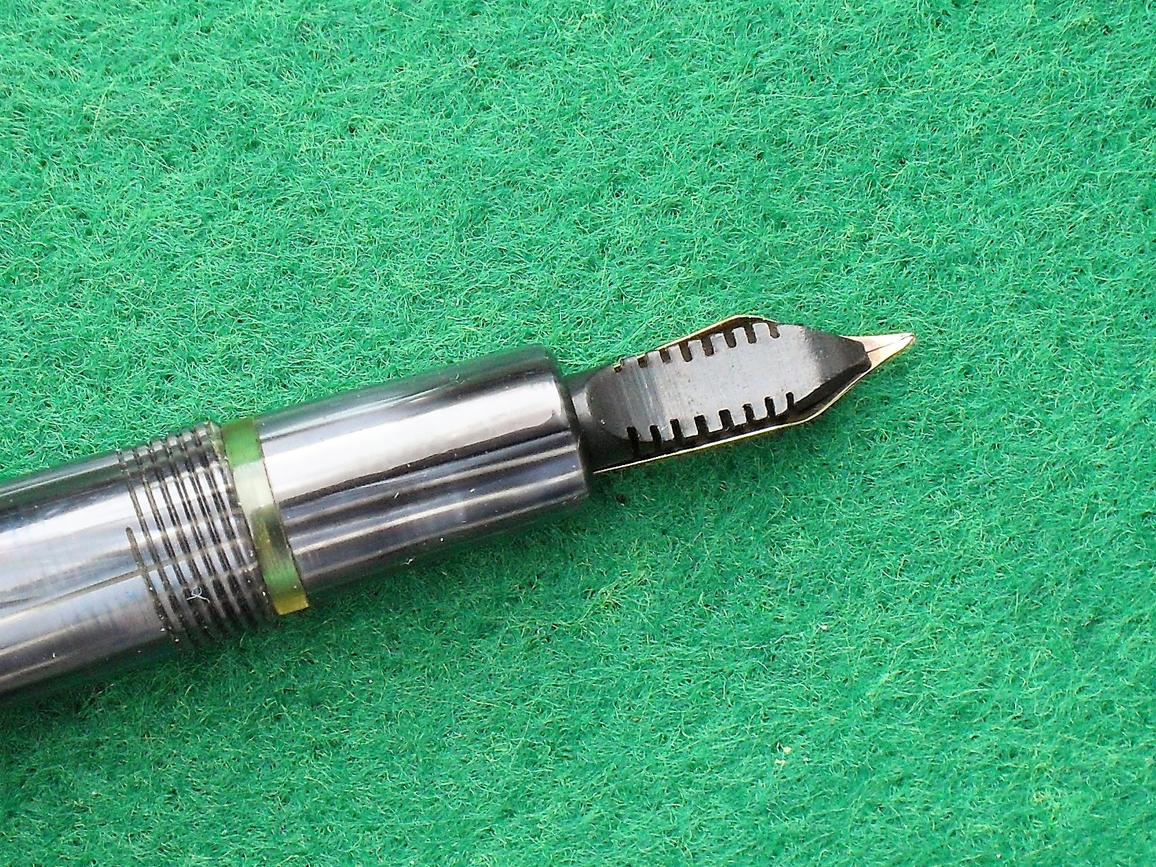 bella penna, dal vivo non ne ho mai vista una neanche io, e questa in effetti sembra di ottima fattura, ed ha una linea molto elegante. Per il pennino propendo più per l'ipotesi della sostituzione, perché esistono penne Helvetia con quel pennino, e pennini marcati Artil.