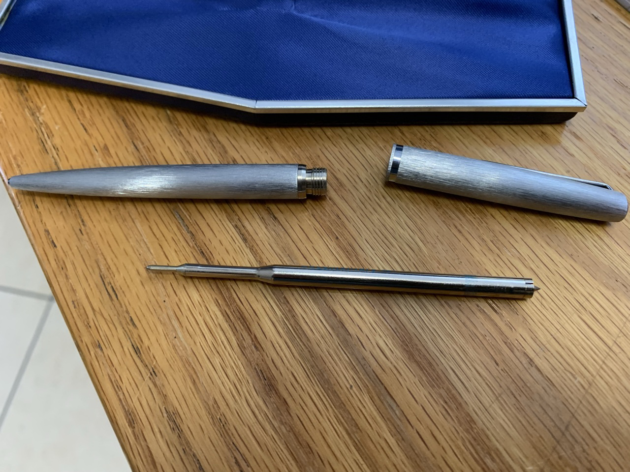 Con la mia ad es ho provato con un refill Pelikan debitamente accorciato, entrava e la penna si chiudeva ma poi attivando il meccanismo si incastrava il refill, non ti dico i santi che ho scomodato per estrarre la molla di ritorno…