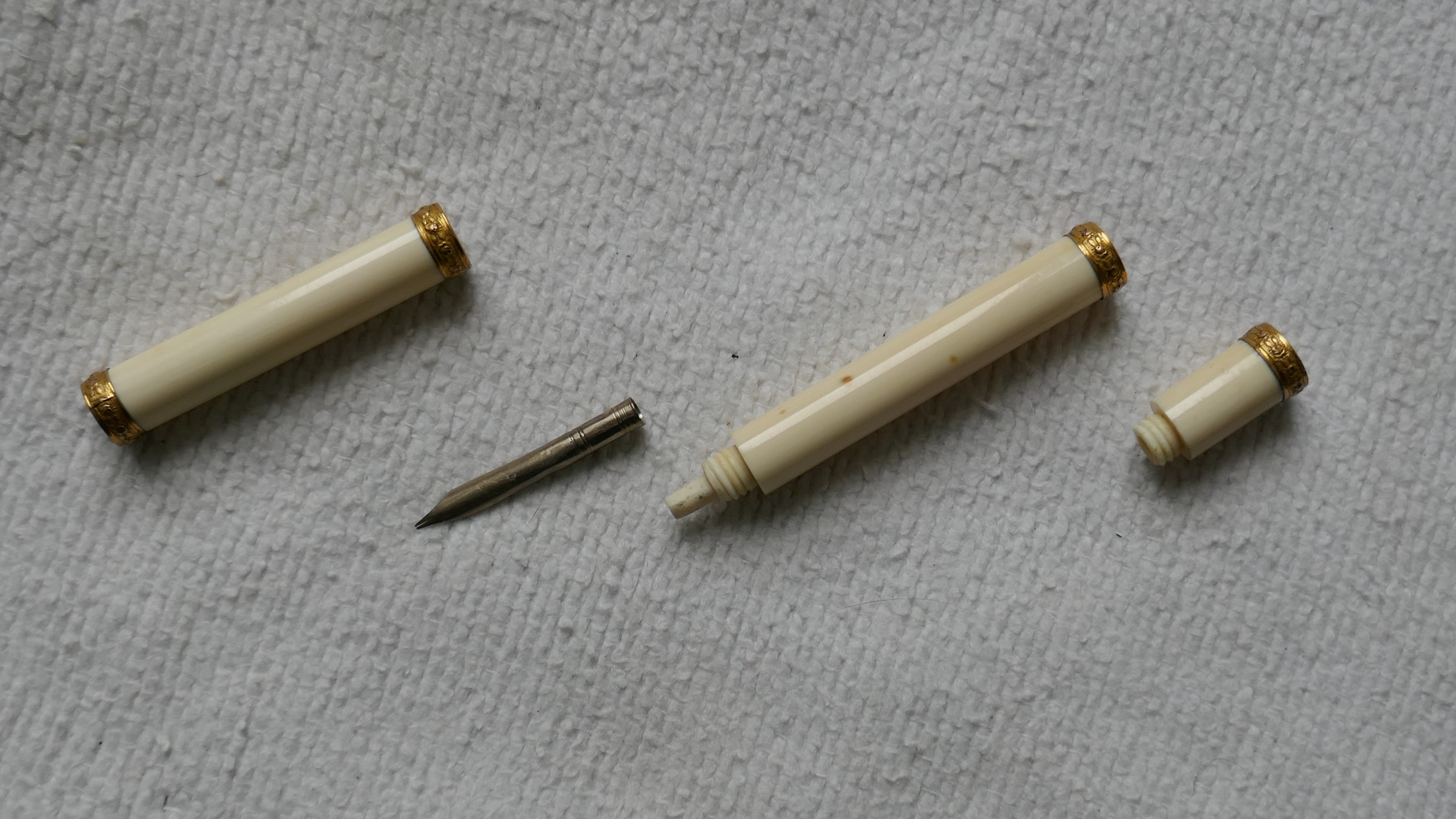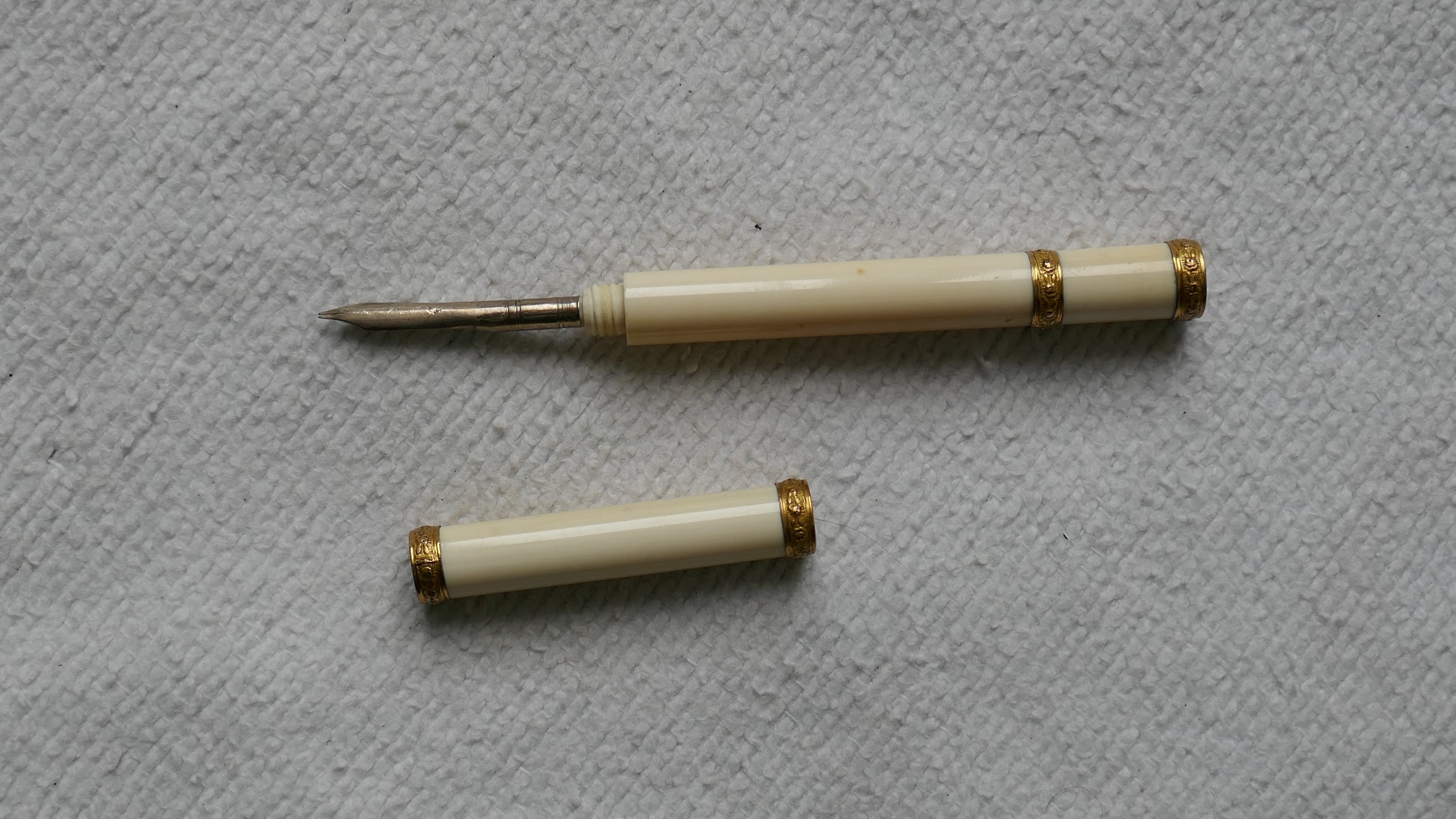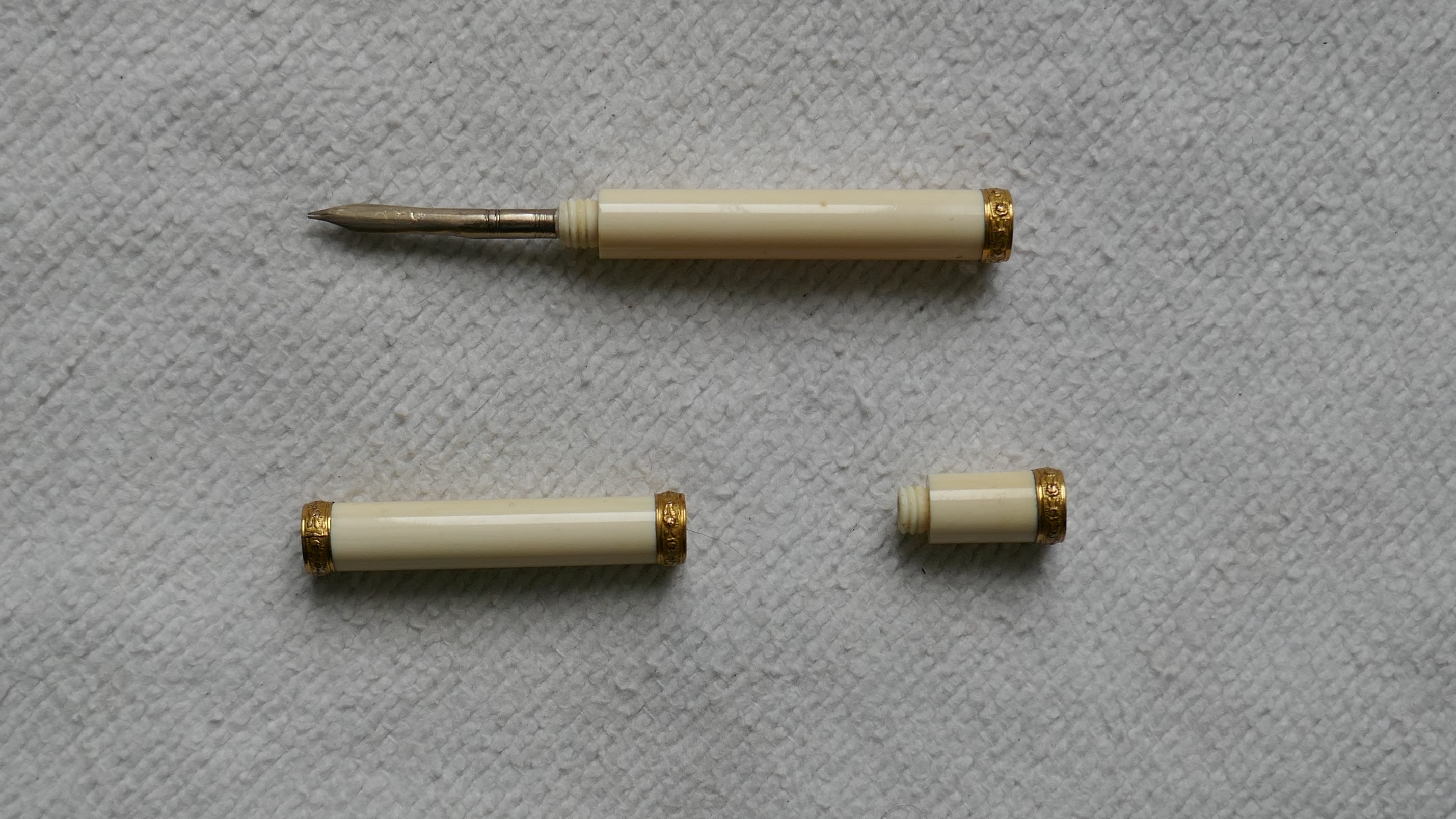 Potrebbe essere un penner in avorio o qualche sorta di pennino da viaggio.