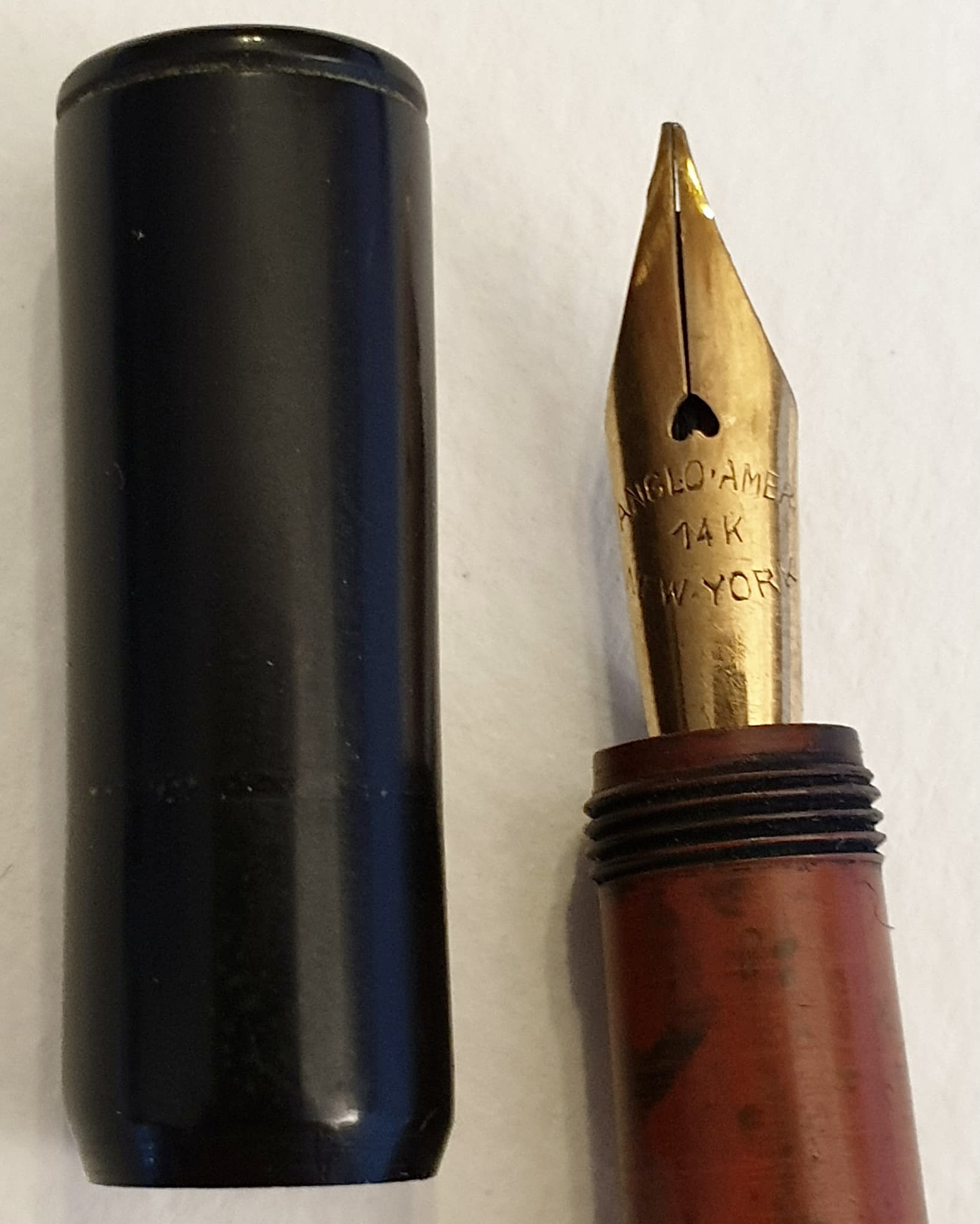 penna davvero molto interessante, Angloamer è un marchio intriso di collegamenti, ci lavorò Eberstein, che aveva lavorato alla Moore, dopo esser fuggito dalla Germania con la cassa della Simplo Filler, avendo tra l'altro realizzato un altro clone della Non-Leackable per la suddetta... Ma anche una Anglo-Amer non la conoscevo.