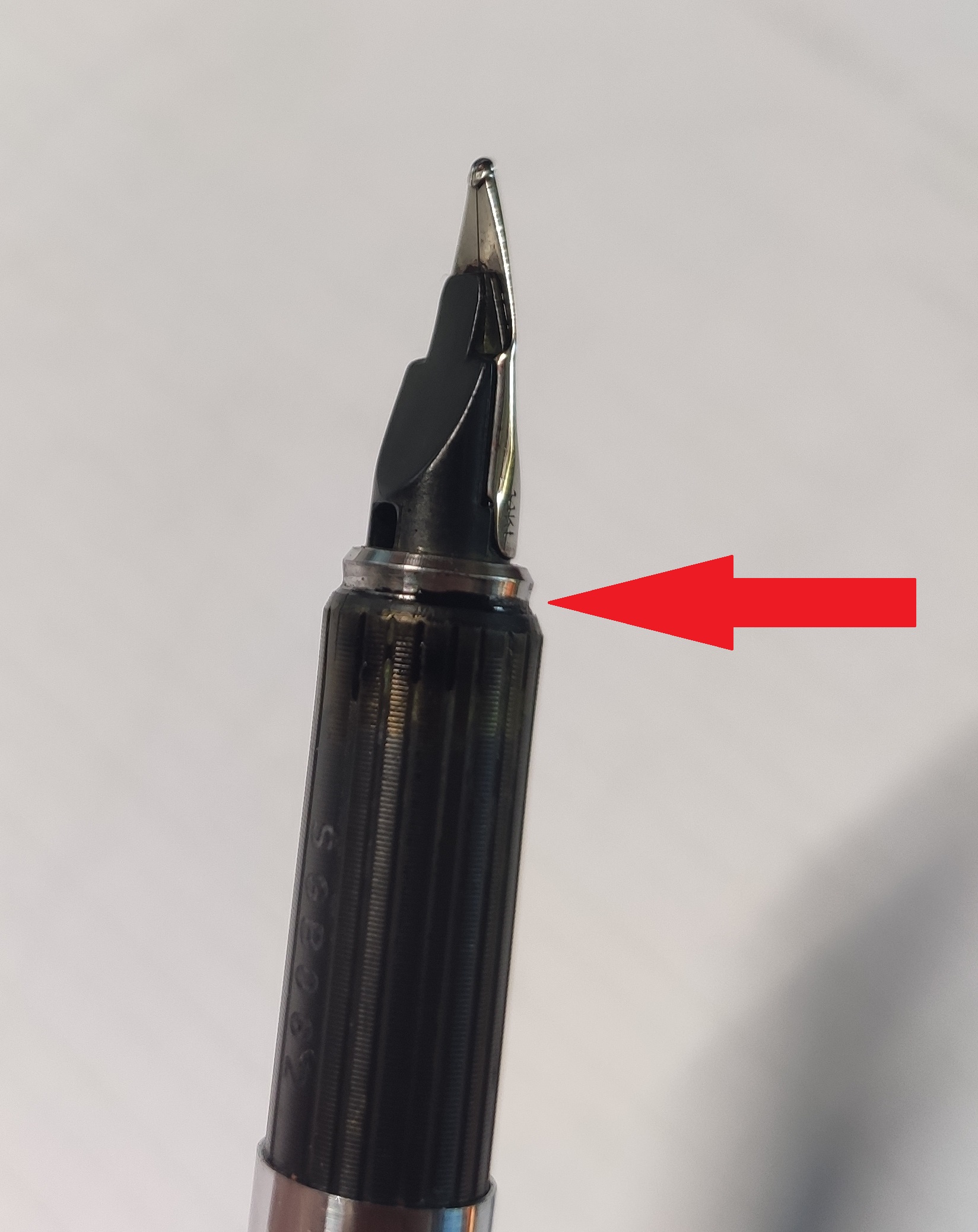 se l'inchiostro trafila tra la parte plastica della sezione e l'anellino ii acciaio,
