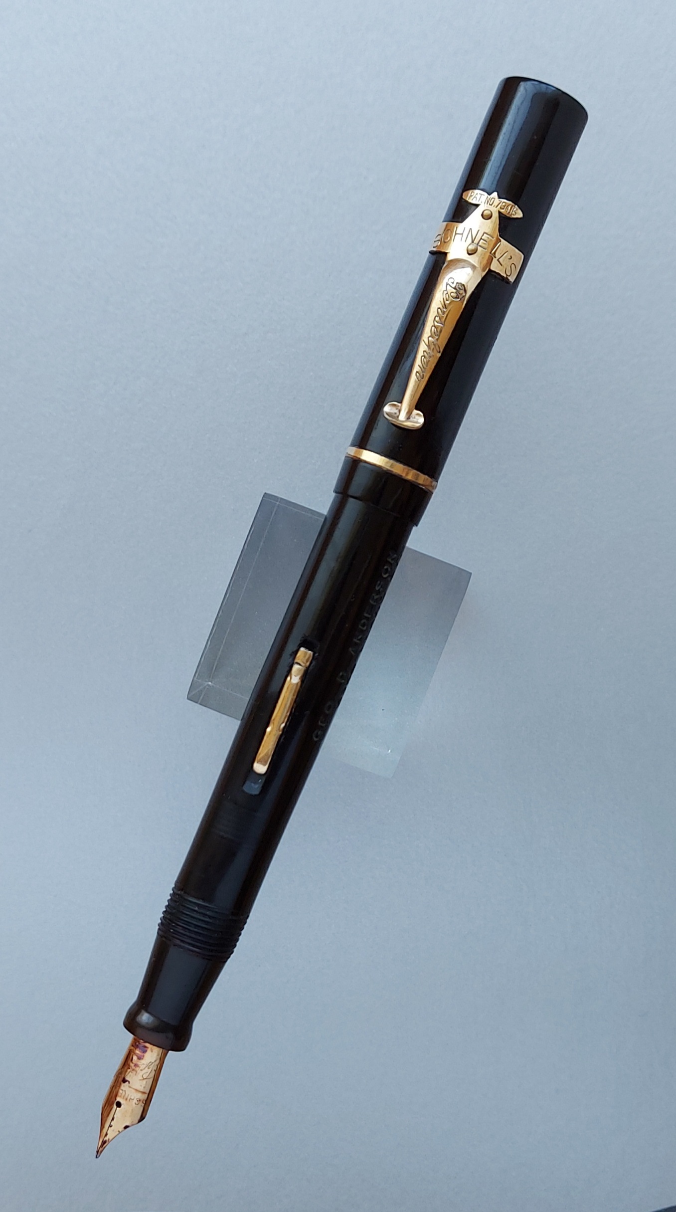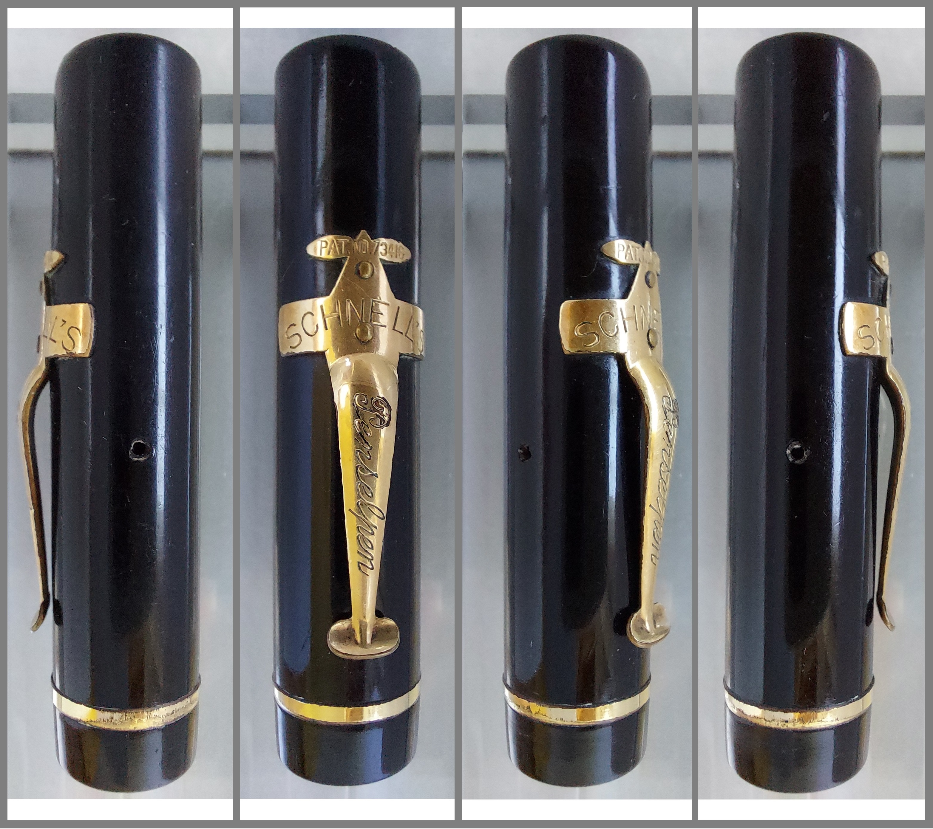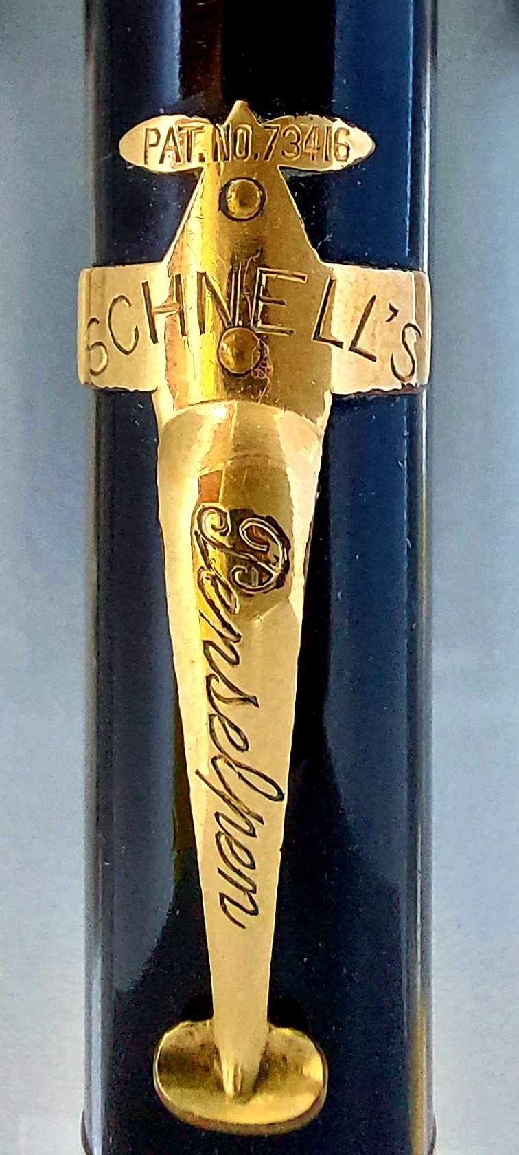 Intorno al 1925 Julius Schnell, buon ultimo sul mercato, trovò più semplice accordarsi per sfruttare industrialmente il brevetto di tale C.S. Nudelman (chiesto nel 1923 e concesso nel 1925: US-1526365, uno dei 4 brevetti che troviamo stampigliati sul fusto della “Penselpen”), pensando che quello era proprio il tipo di combo stilografica-matita (https://www.fountainpen.it/Combo) che avrebbe voluto realizzare, perché da bravo tecnico del settore evidentemente capiva che non sarebbe riuscito ad “aggirarlo” in modo conveniente con una variante progettata ex novo.