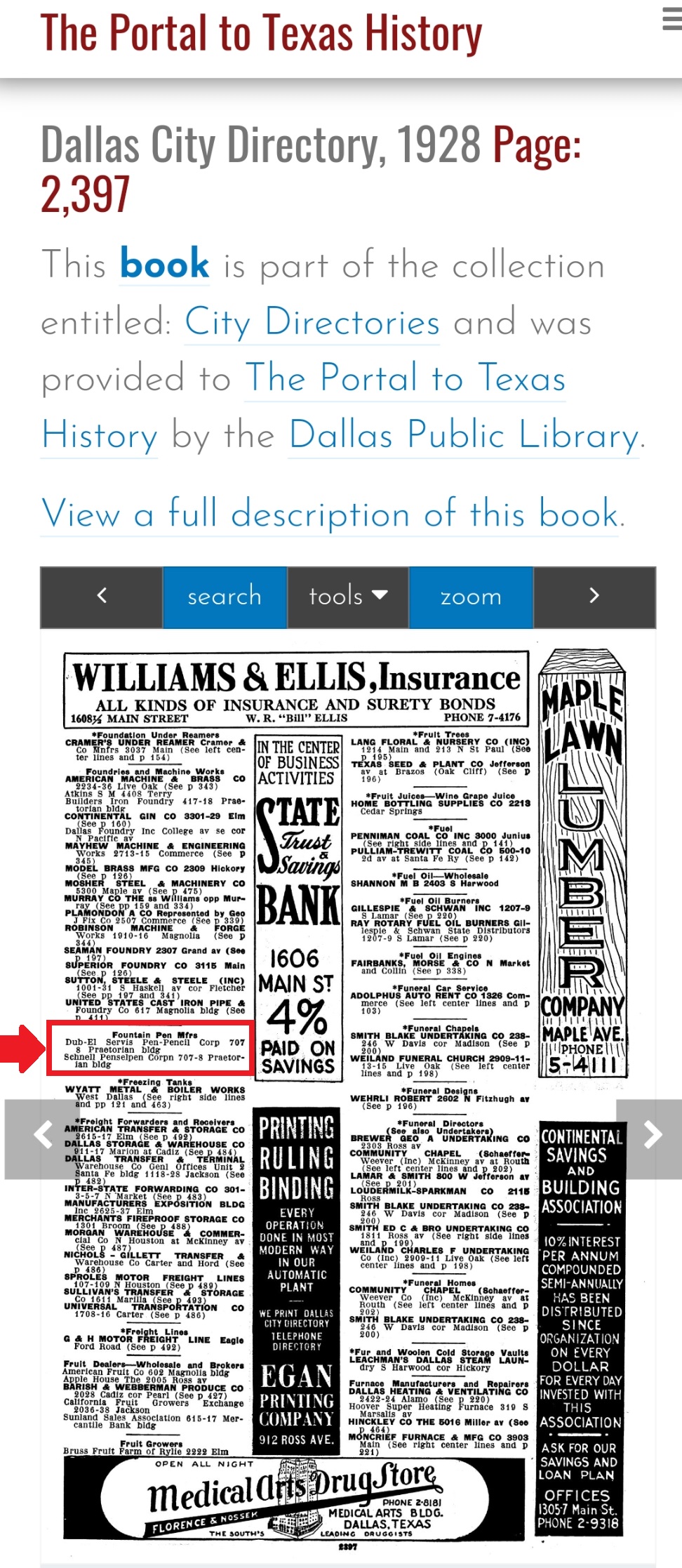 L’estratto dal quotidiano che ho allegato precedentemente indicava che l’operazione tra le due Corporation di New York era in qualche modo “localizzata” a Dallas, Texas: orbene, come si può leggere nello sterminato annuario civico ella città nel 1928 le due società risultavano allo stesso indirizzo,