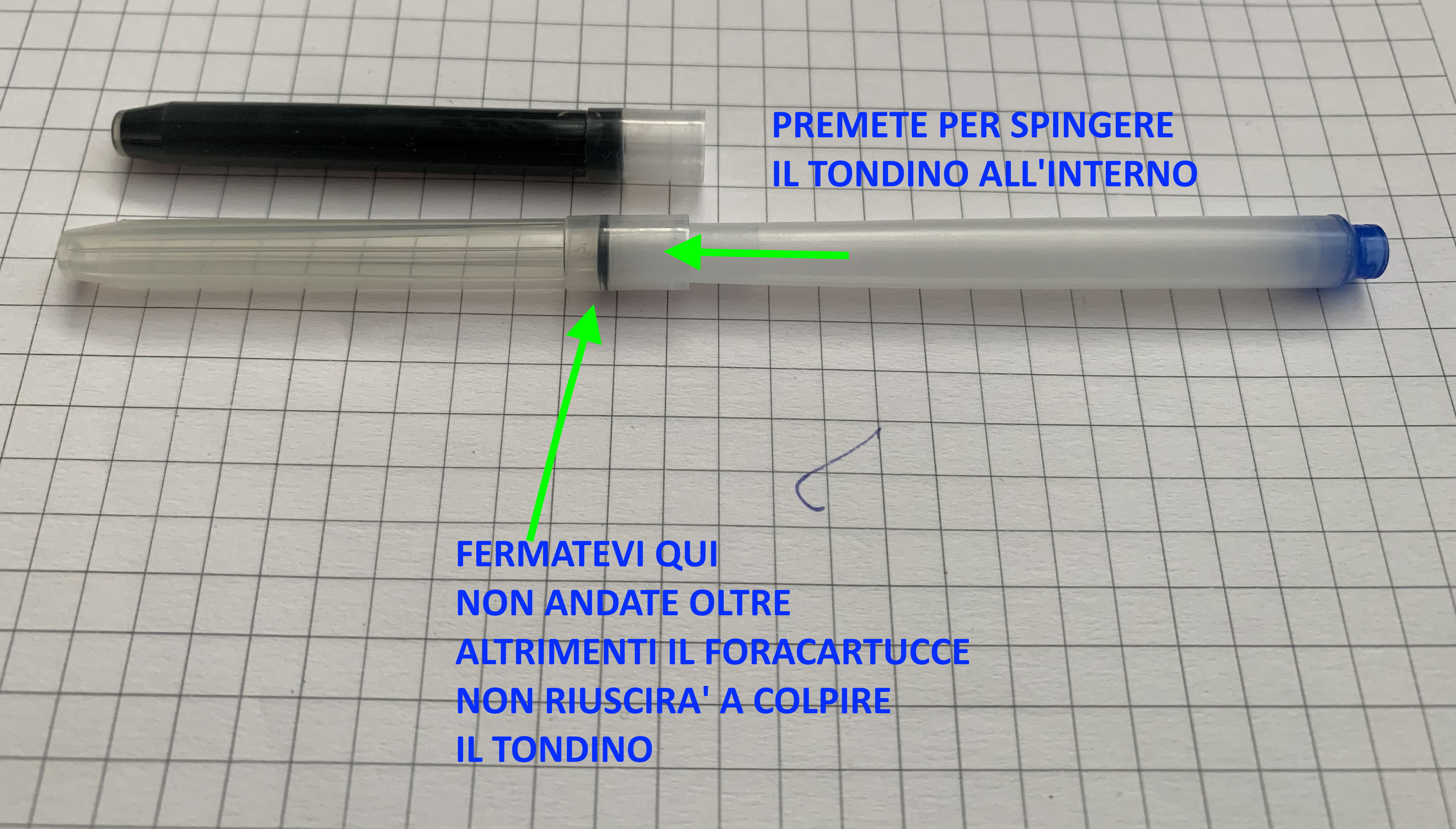 ATTENZIONE 2: Se usate la cartuccia Aurora invece state più attenti perchè il suo diametro è inferiore a quella Parker e quindi farà meno resistenza e sarà più facile arrivare troppo in fondo, con la cartuccia Lamy ancora di più.