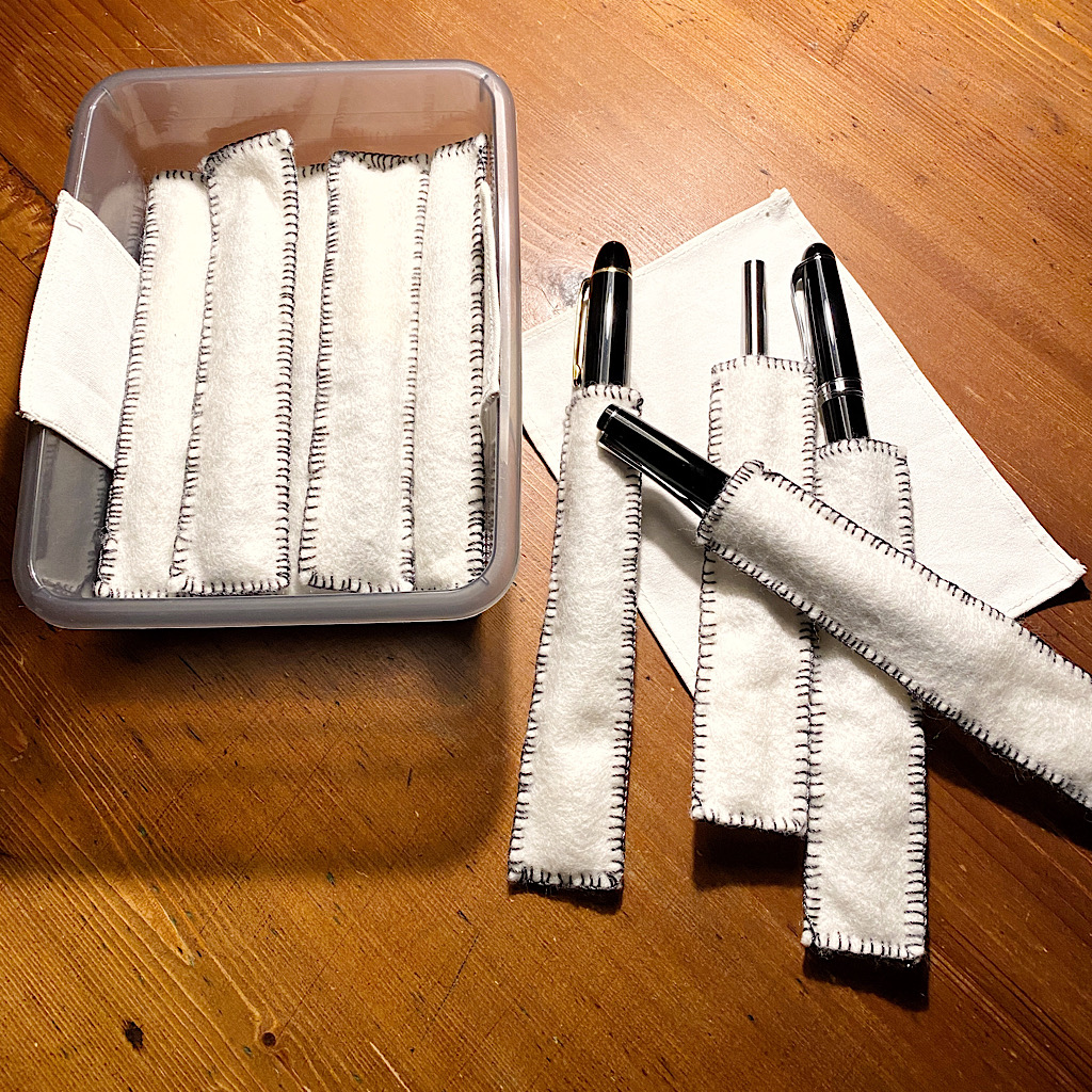 Tante belle bustine di panno lenci in una vaschetta di plastica delle giuste dimensioni.