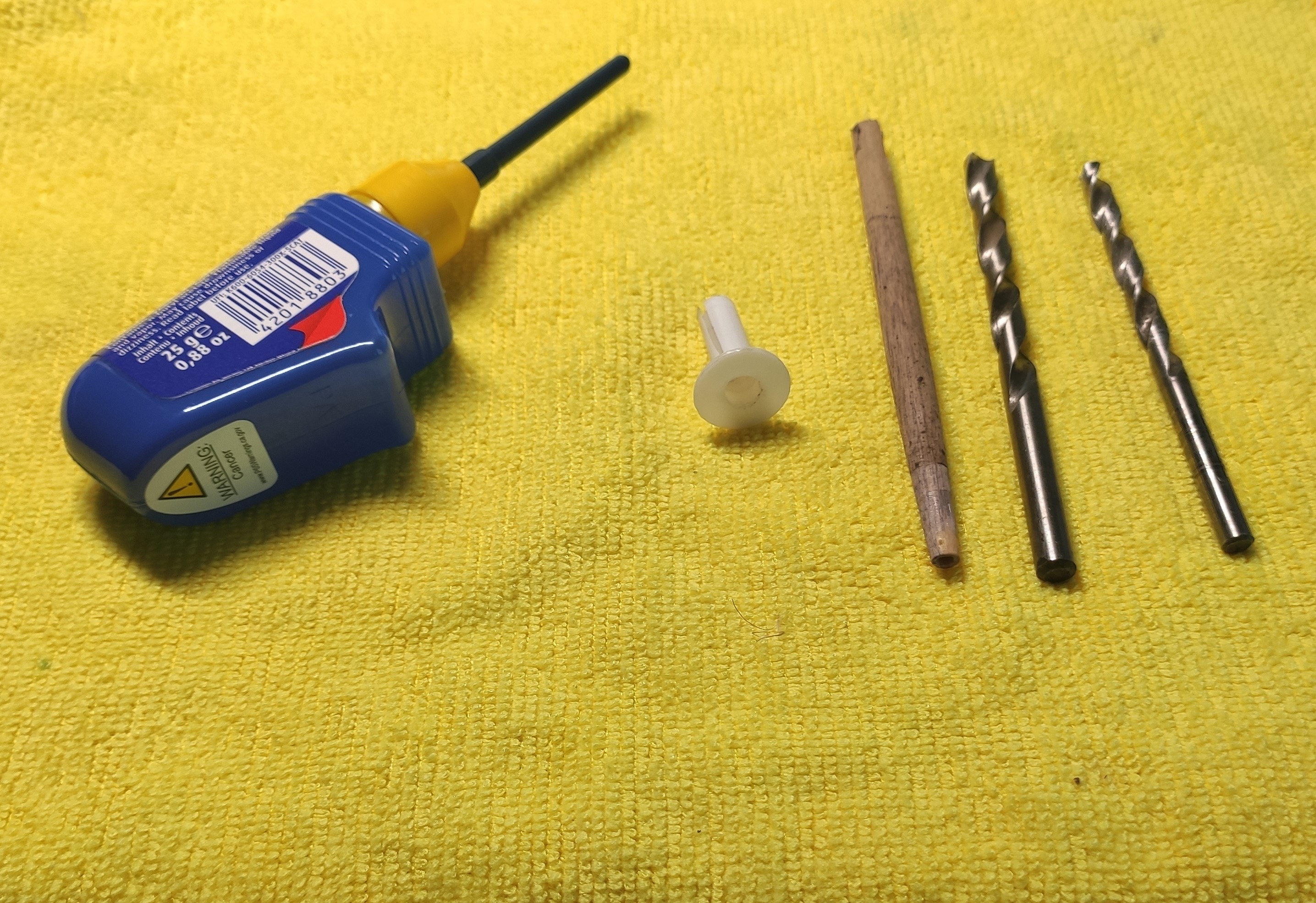 - Guida per punta trapano (attrezzo bianco in foto, non necessario se si presta molta attenzione)