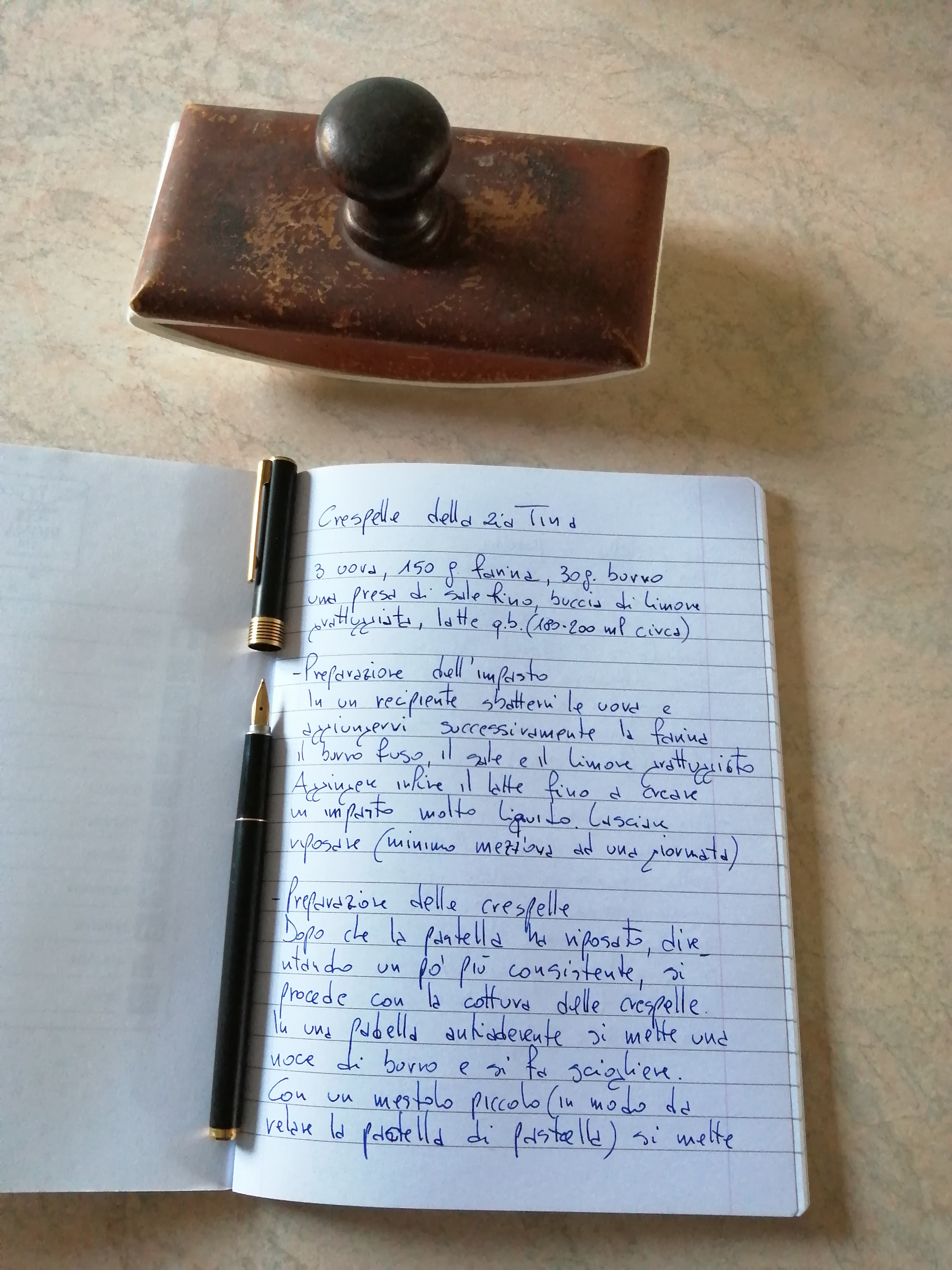 Dopo tanto pensarci forse finalmente sono riuscito ad iniziare il mio progetto: scrivere su un unico quaderno le ricette del cuore. E per iniziare non potevano che essere le crepes della mia amata zia, che come le faceva lei nessuno mai, neppure io anche se ci metto tutto l'impegno possibile. 😊