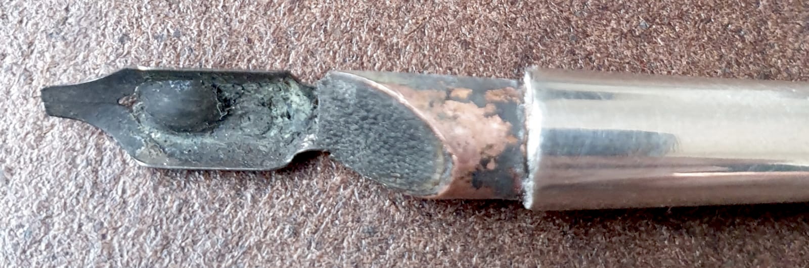 Sorpresona in una domenica di questo mite autunno friulano (a Cividale per l'esattezza): singolare, probabilmente unico, calamaietto francese ottocentesco, in argento, penna estensibile, bicchierino in cristallo molato. Monogramma BL finemente cesellato.