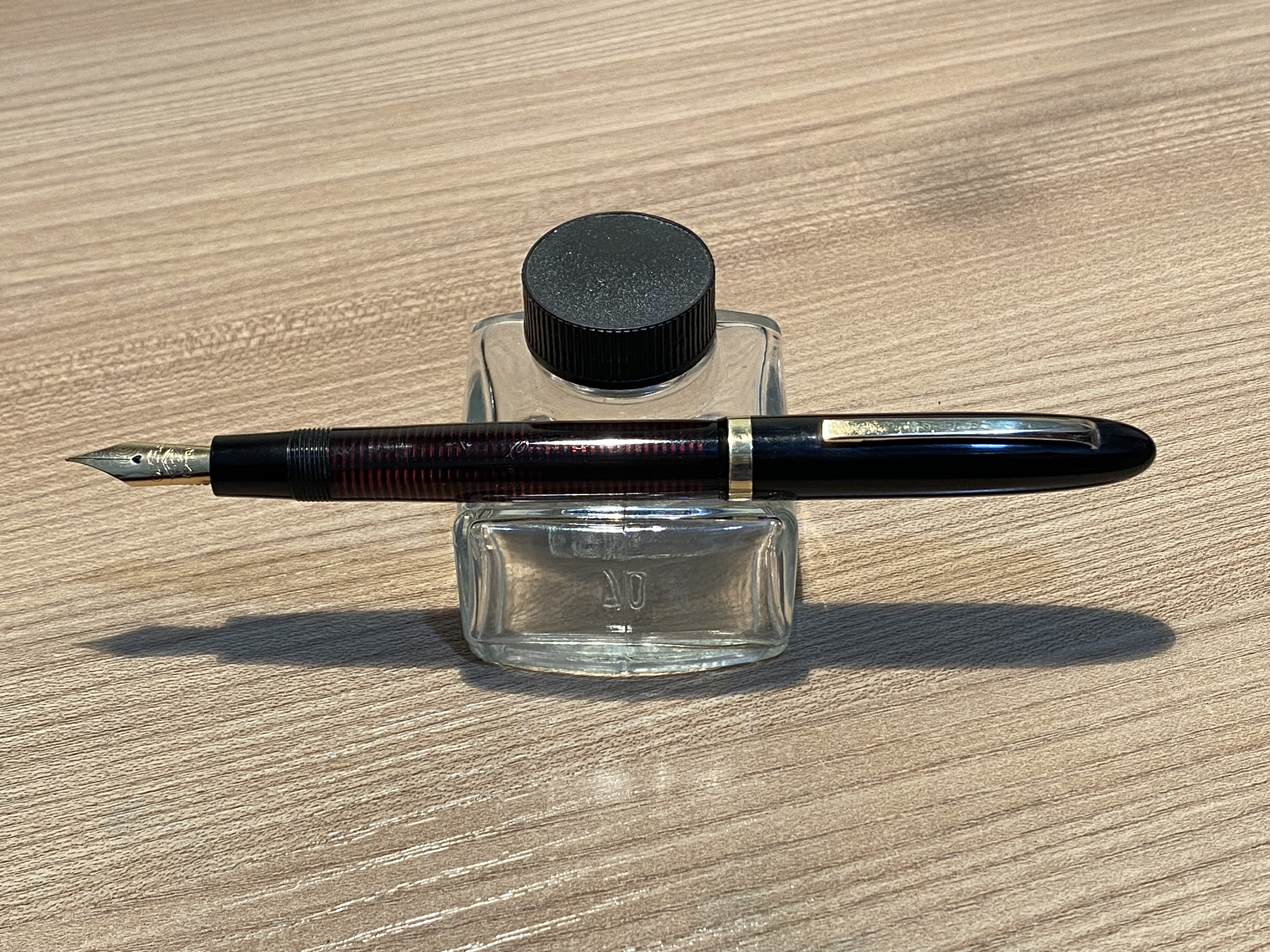 Inutile dire che l'esperienza di scrittura è diversa da una penna moderna, riesce a seguire naturalmente la mano con una facilità incredibile e offrendo una piacevole variazione di tratto. Il feedback è ben presente, ma credo sia normale, è un pennino che ha scritto tanto e si vede dall'iridio alquanto consumato benché ancora presente.