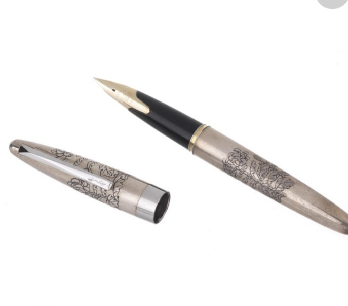 Bellissimo il pennino della Sylvern (giusto?) indicata da fab66, ma il decoro sulla penna mi pare un po’ esagerato e pacchiano. La Elite è più simile come pennino e più raffinata, anche se sottile.