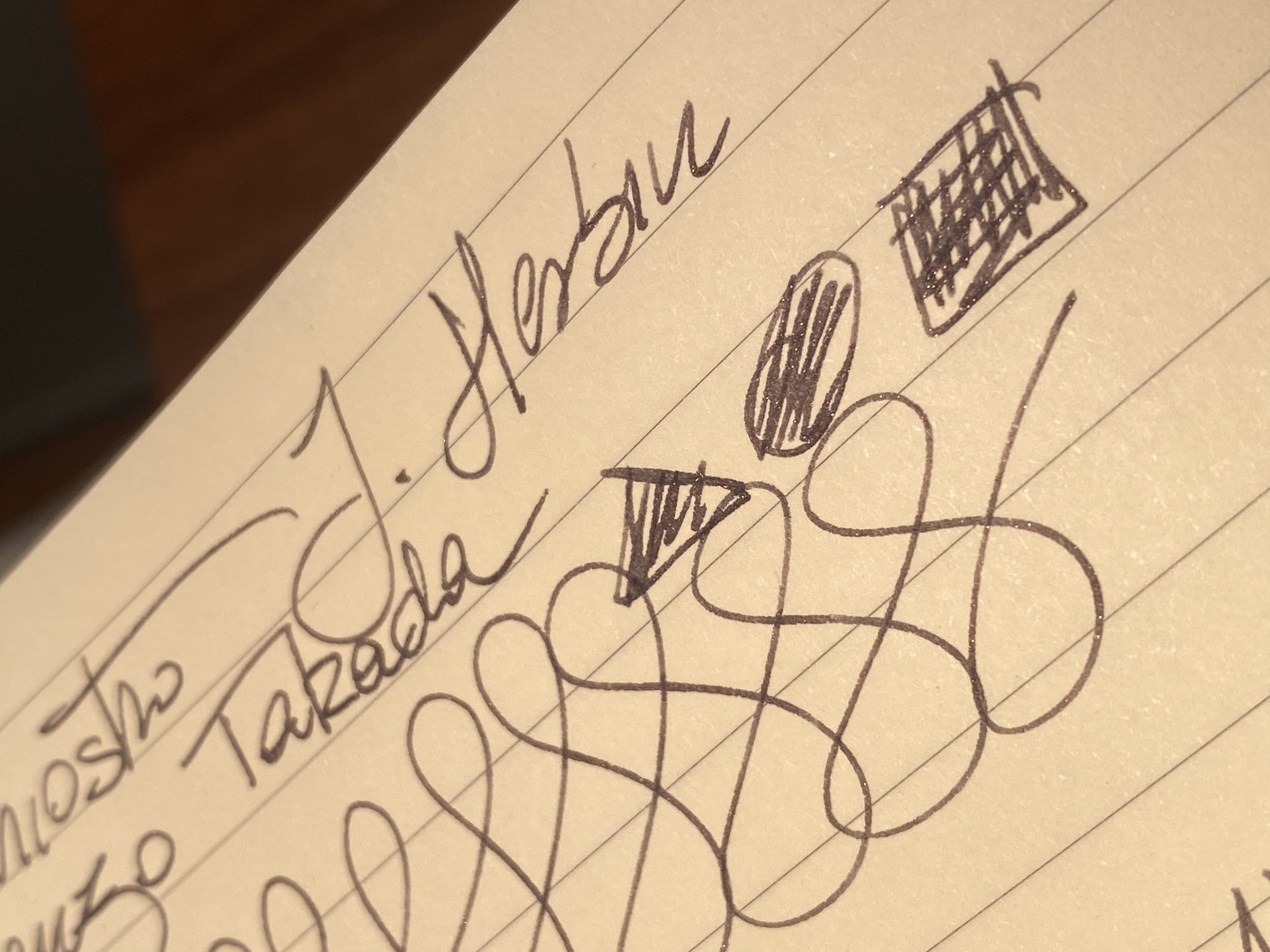 Nonostante tutte quelle scorie che navigano l’inchiostro scorre molto bene, lo trovo ‘grasso’ tant’è che forma quasi una patina sul pennino come lo intingo, non si impunta sulla carta, non gratta, ma non va dove vuole (tipo i pilot per esempio…)
