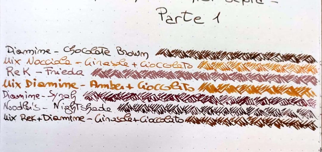 Provo a lanciarmi in una recensione. L'inchiostro è un marrone con sfumature rosse molto pronunciate, un terracotta scuro o un terra di Siena bruciata.