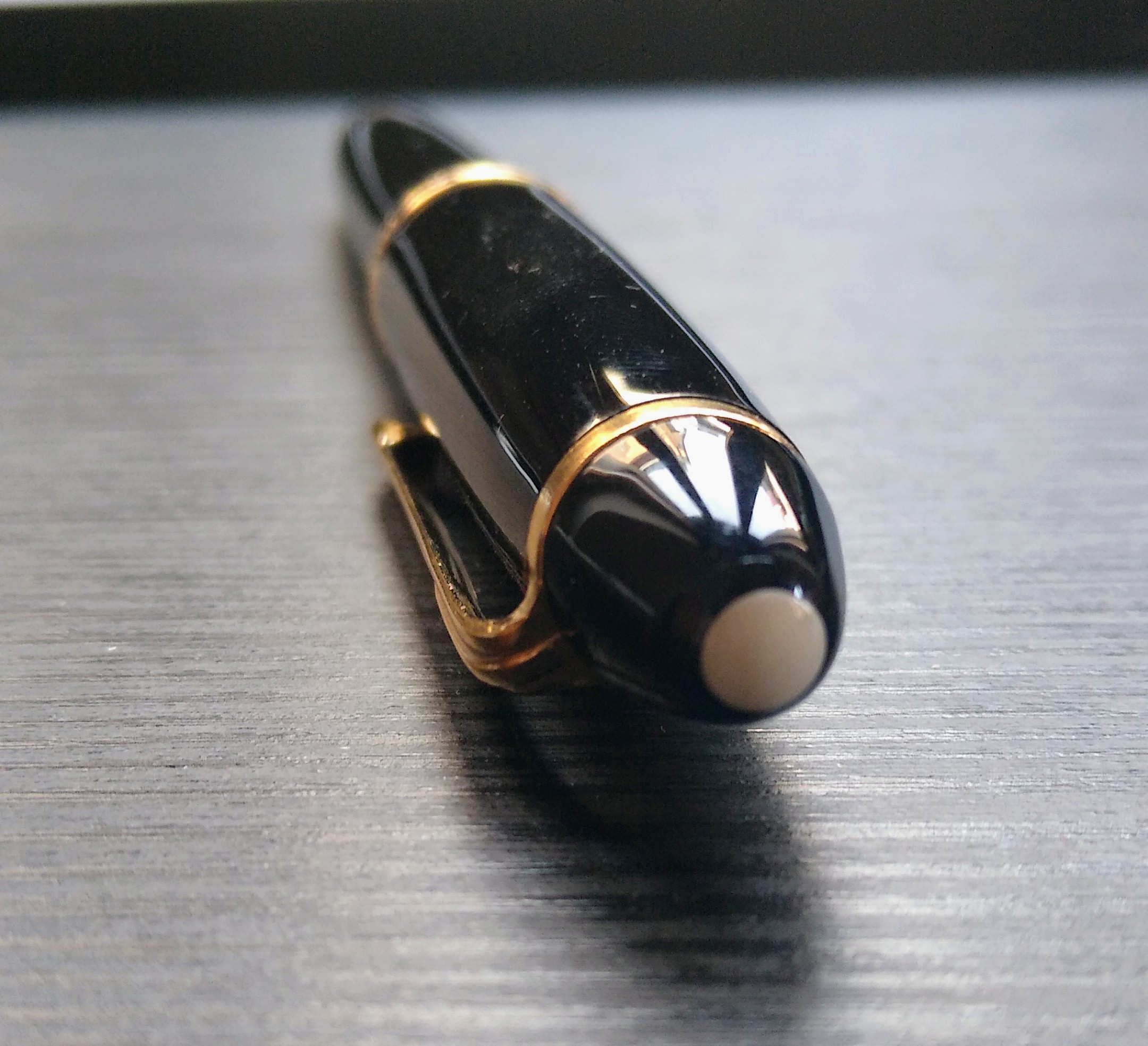 Ultima arrivata con questo curioso particolare di un white dot invece della solita stella a sei punte. Da quello che ho trovato cercando in rete dovrebbe trattarsi di una delle Montblanc vendute a tempi nei Paesi Arabi dove la stellina poteva far storcere il naso.