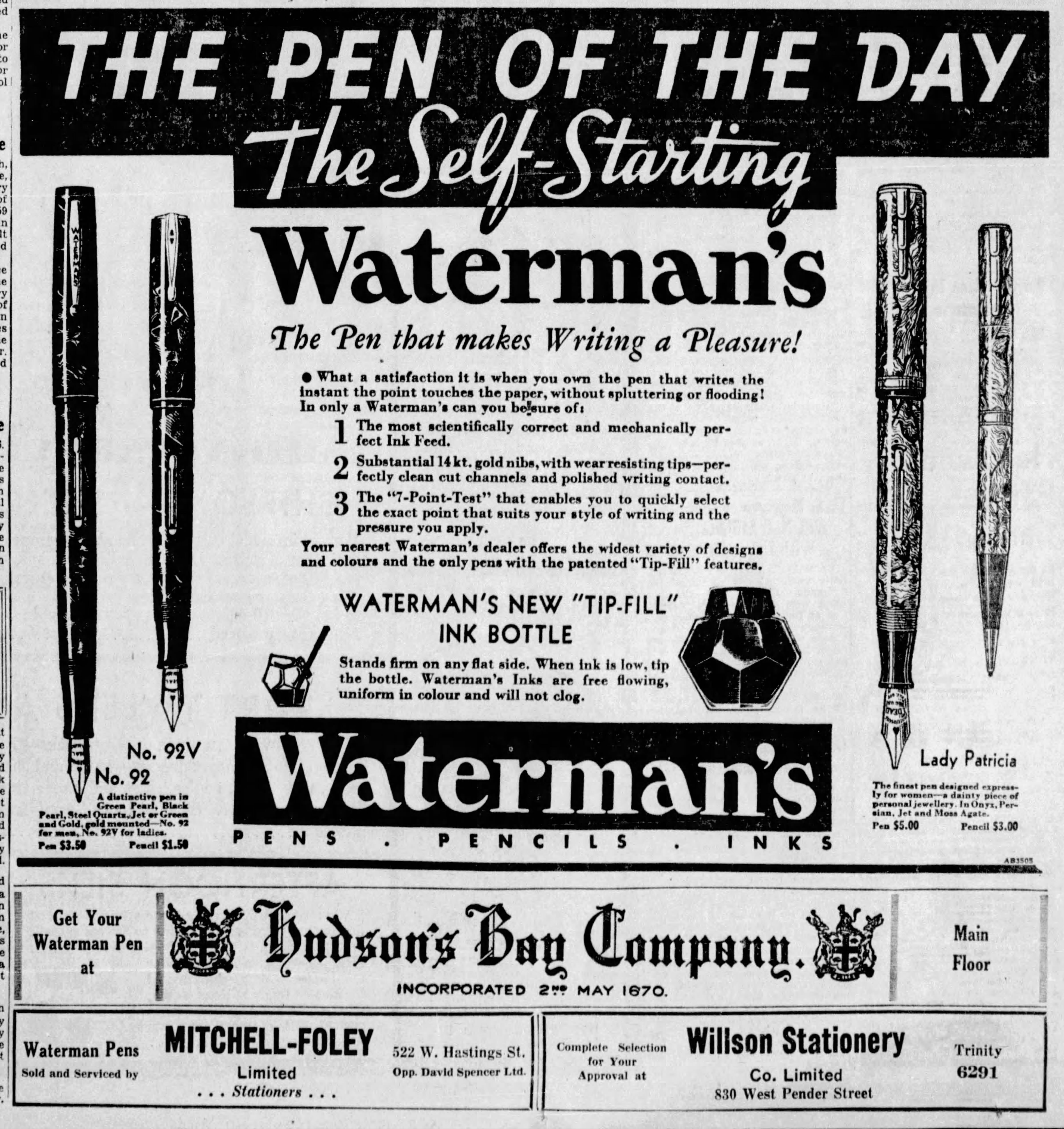 Lo stato dell’arte dei calamai Waterman’s negli USA nell’anno 1936