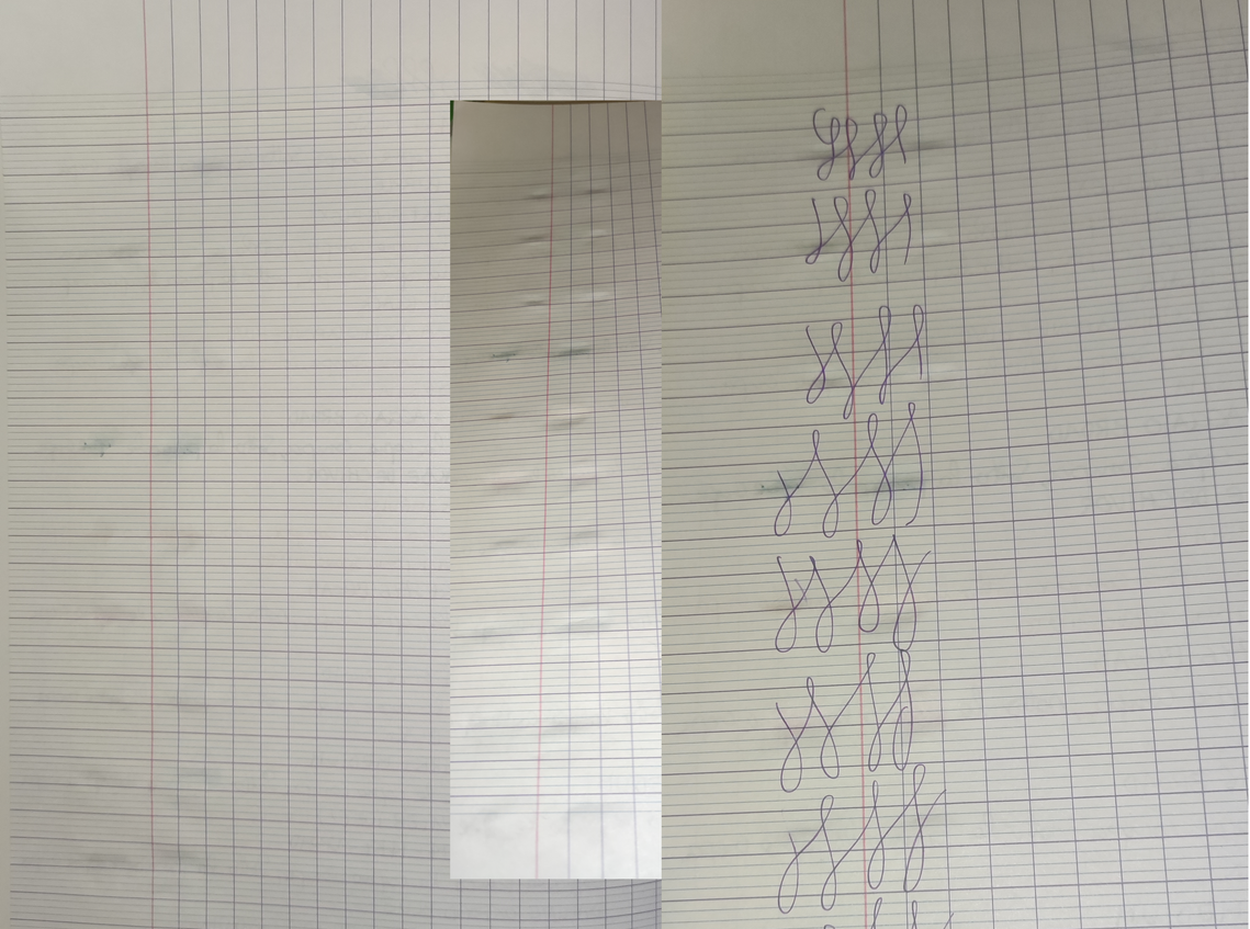 Non mostra alcun segno di trapasso con l'uso normale, e un puntino di inchiostro nella parte dove è stato scritto con emeraude de chivoir con punta broad ( quindi già molto bagnato di suo ).