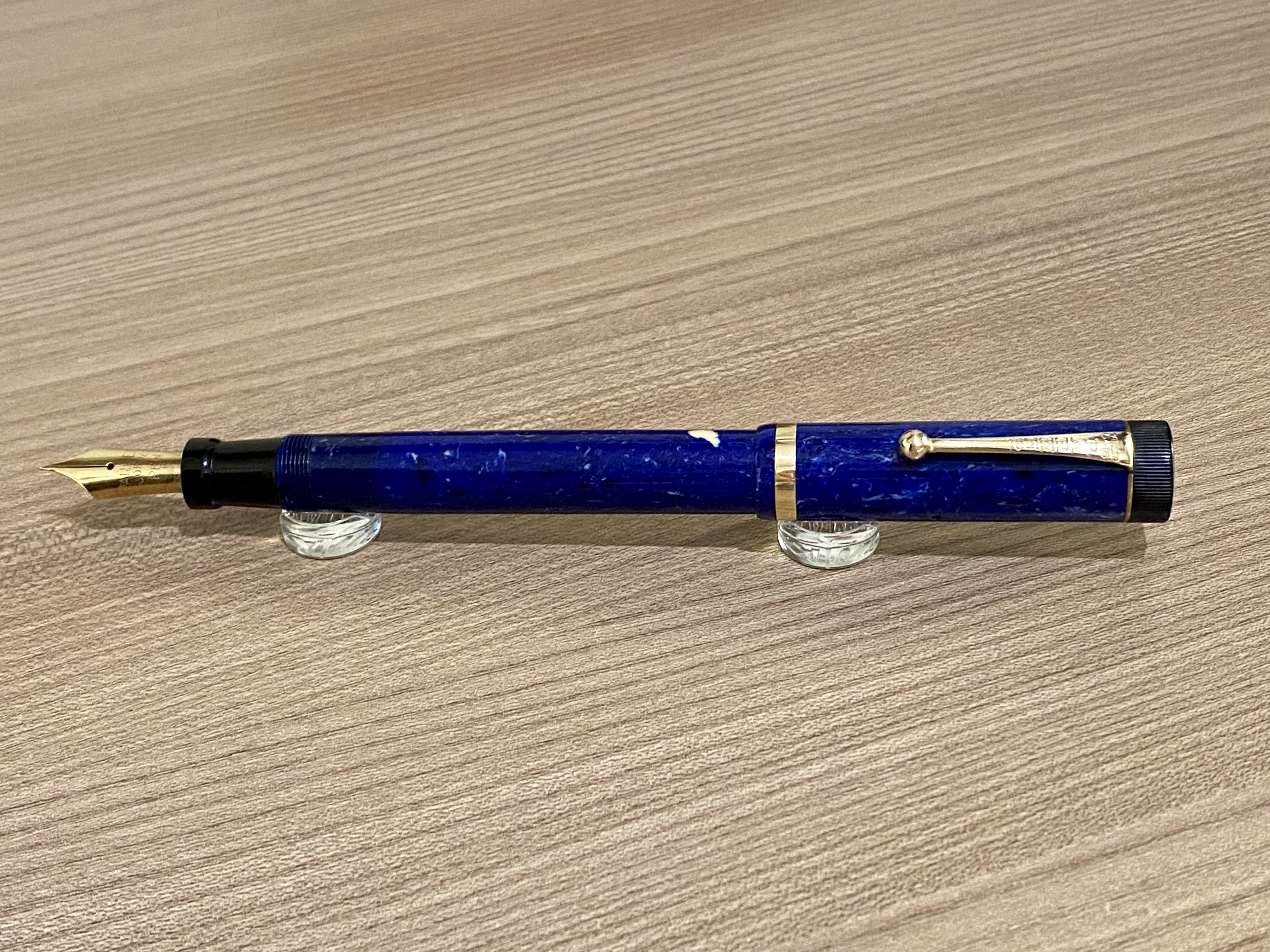 Quella che vado qui a mostrare è una Duofold Oversize in celluloide Lapis Blue, materiale che rimpiazzò il più raro Blue-On-Blue usato per breve tempo.