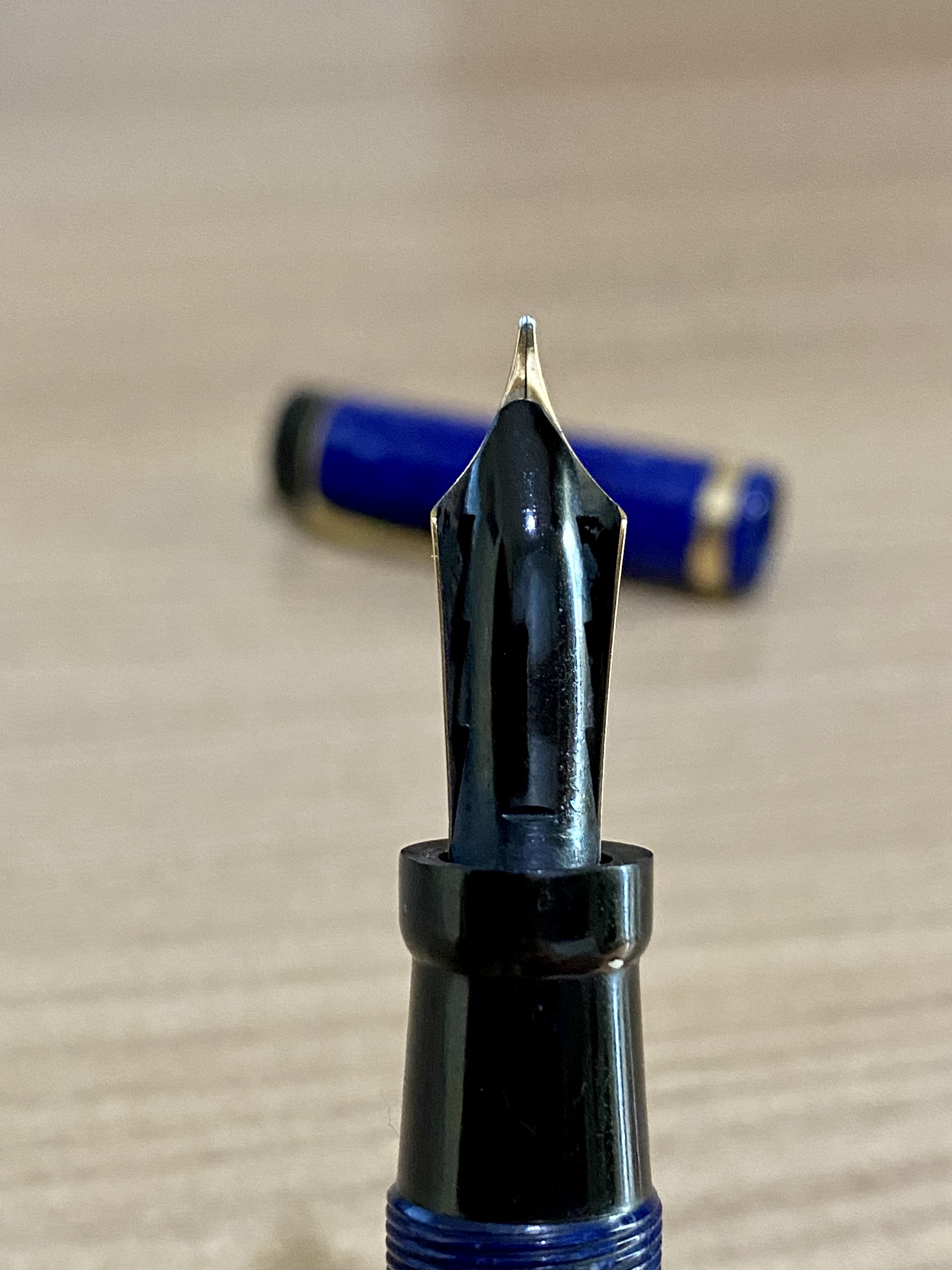 Benché l'esemplare è in condizioni estetiche perfette, praticamente pari al nuovo, reputo che il pennino per qualche motivo ignoto, è stato sostituito non essendo marcato Canada. Peraltro, a differenza del resto della penna, si nota subito che è un pennino alquanto usato, l'iridio ancora è presente ma non è certo quel che ci si aspetta su un pennino nuovo o quasi nuovo.