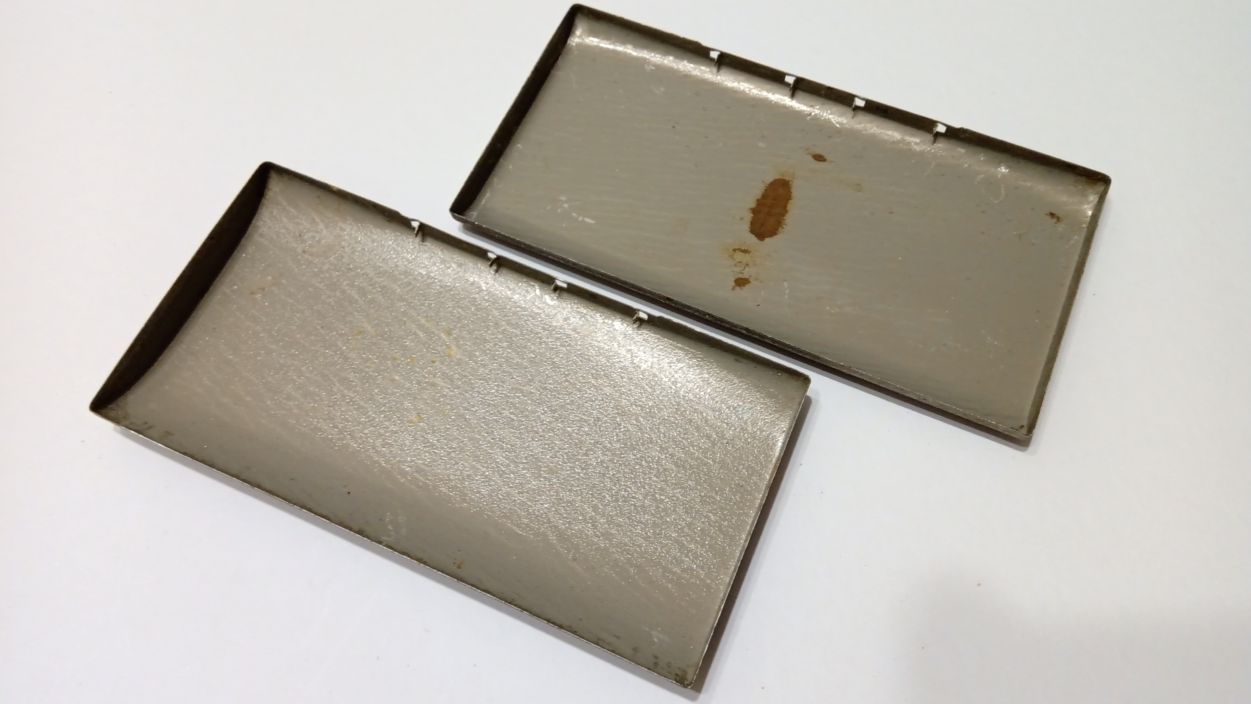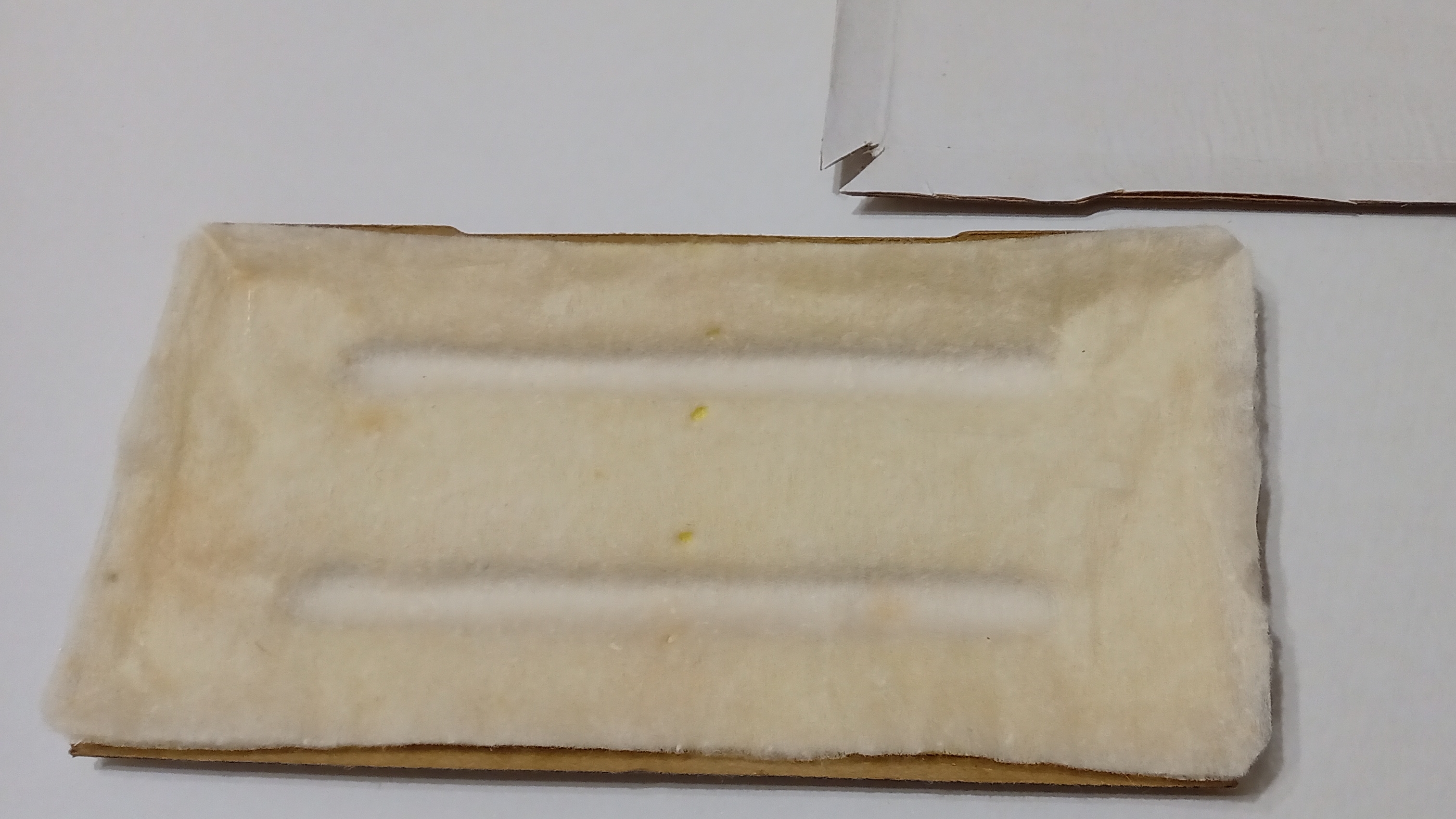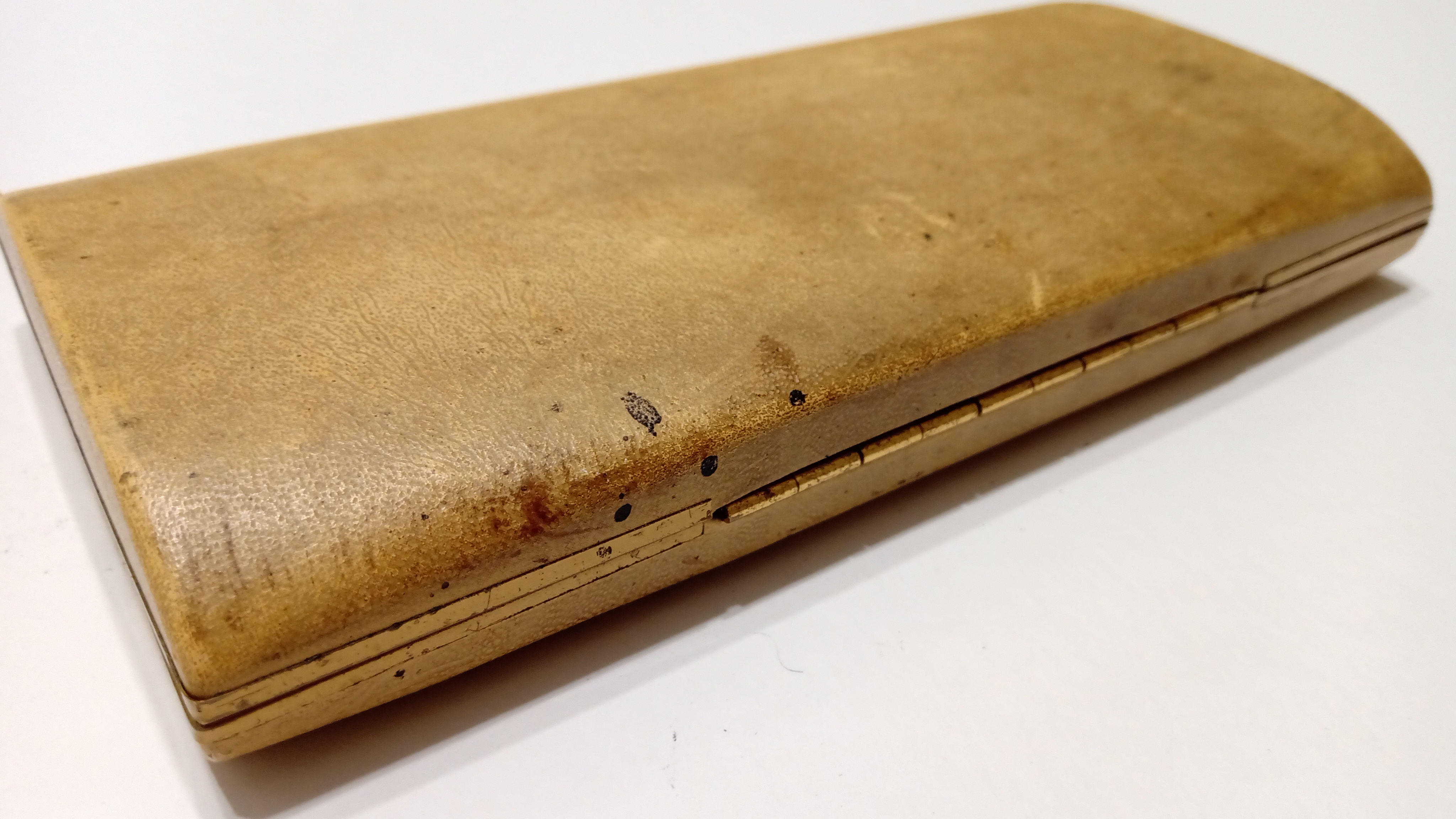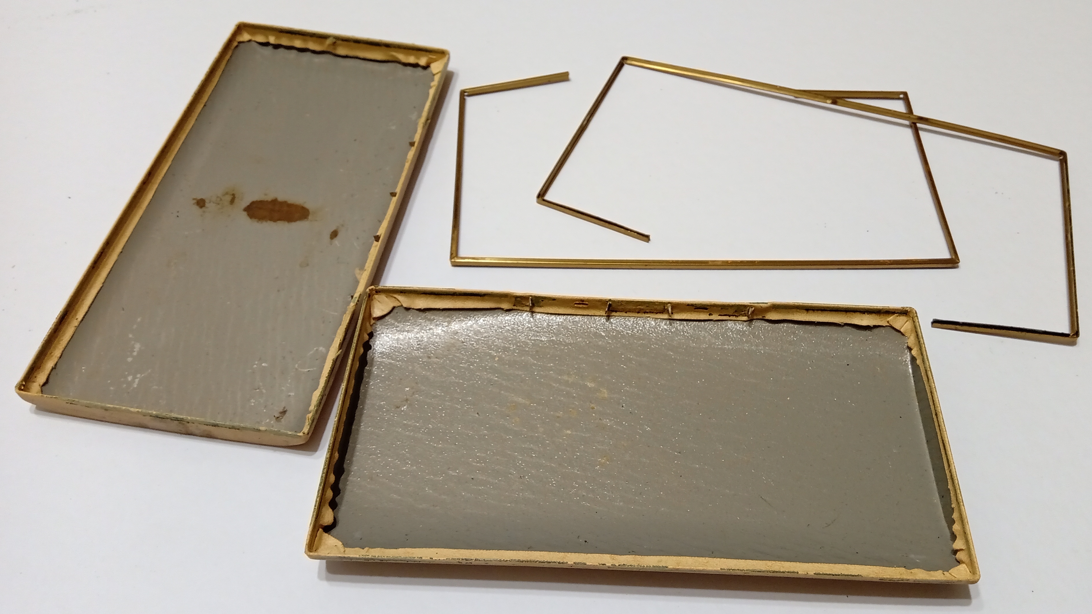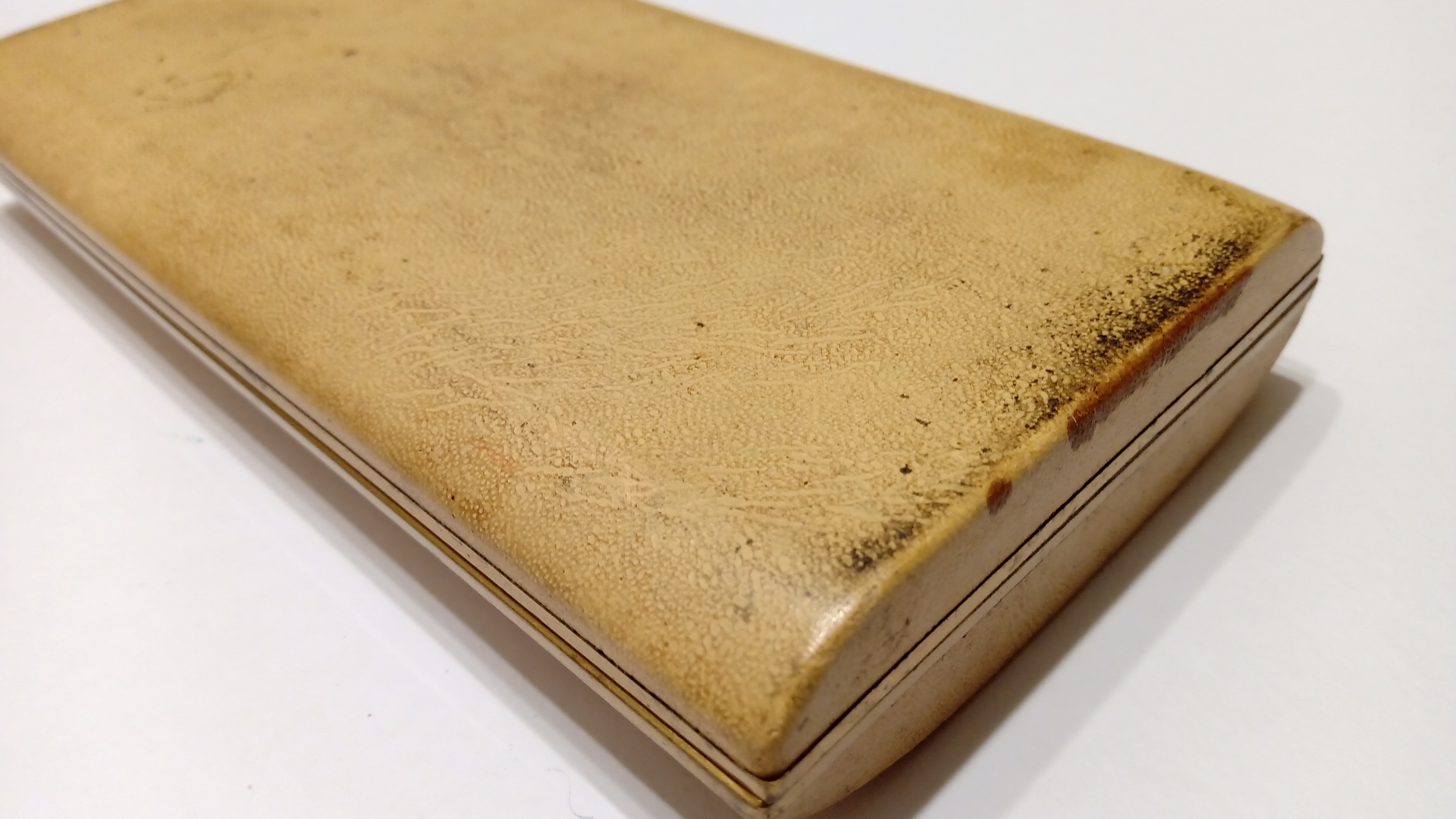 Ho quindi tolto il coperchio aderito al metallo, osservando che sia i materiali utilizzati per la cerniera che per il bacchette erano di altissima qualità, così come il metallo stesso della scatola, che presentava una curiosa "granatura" in maniera quasi perfetta stato di conservazione...