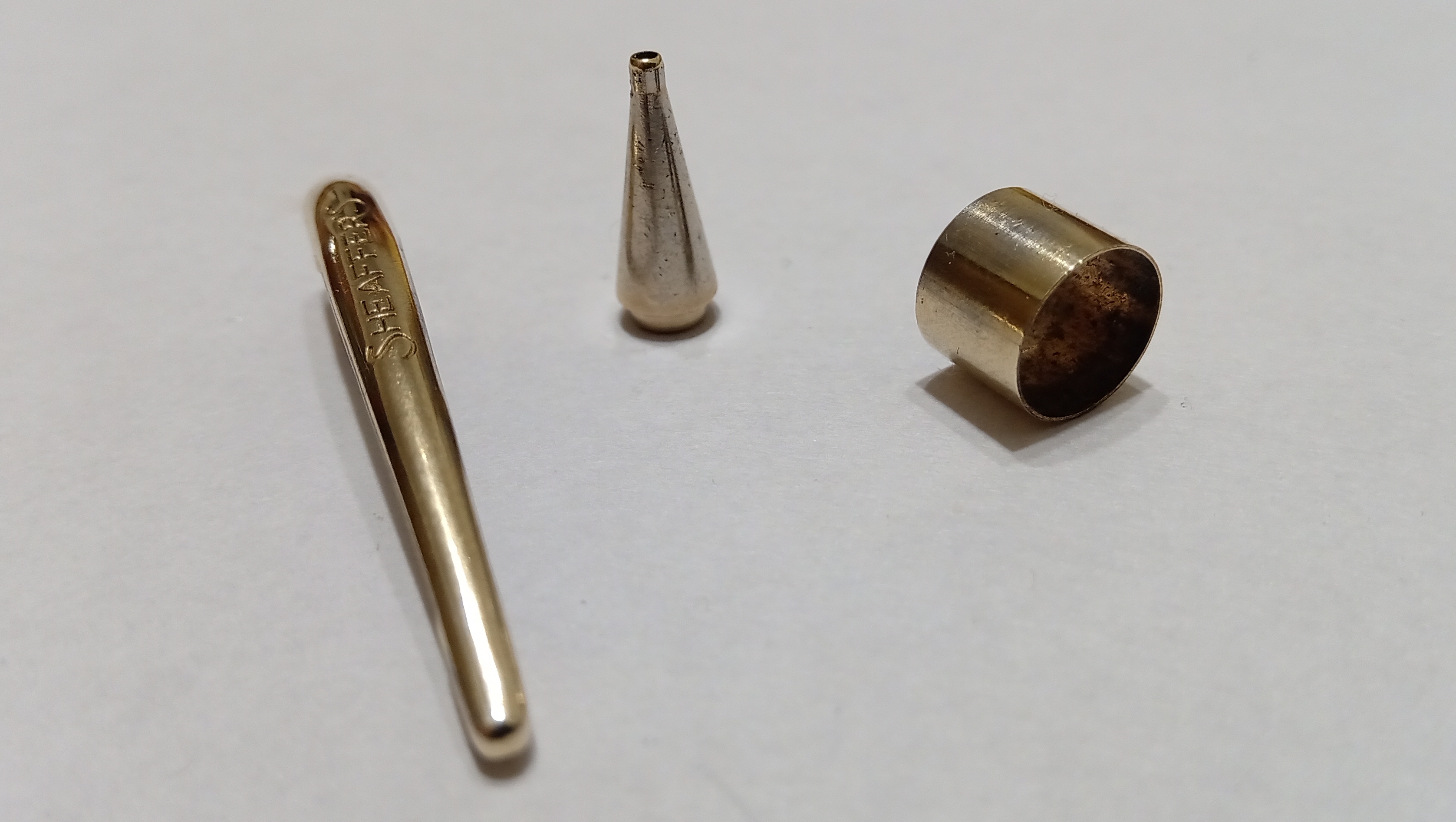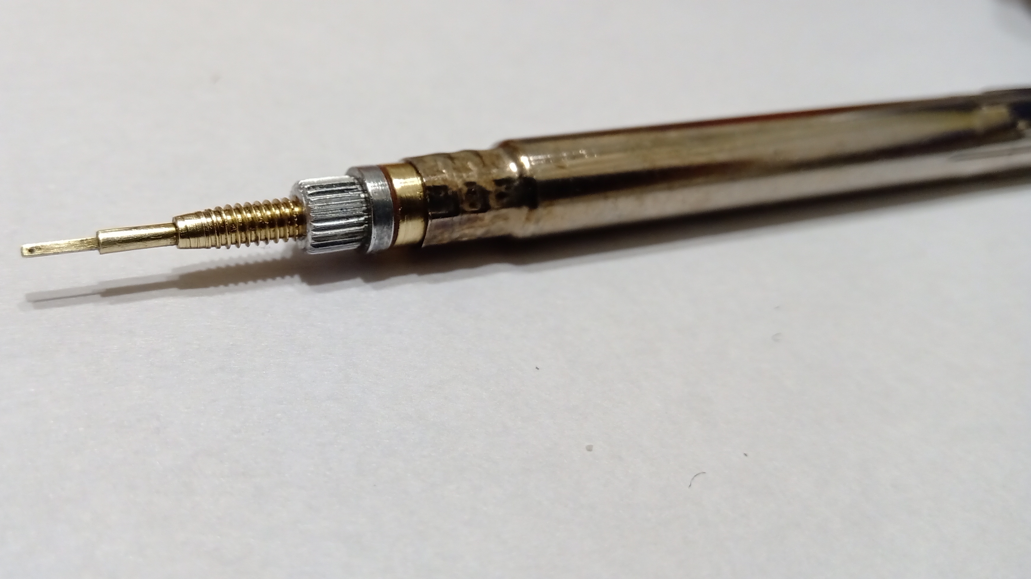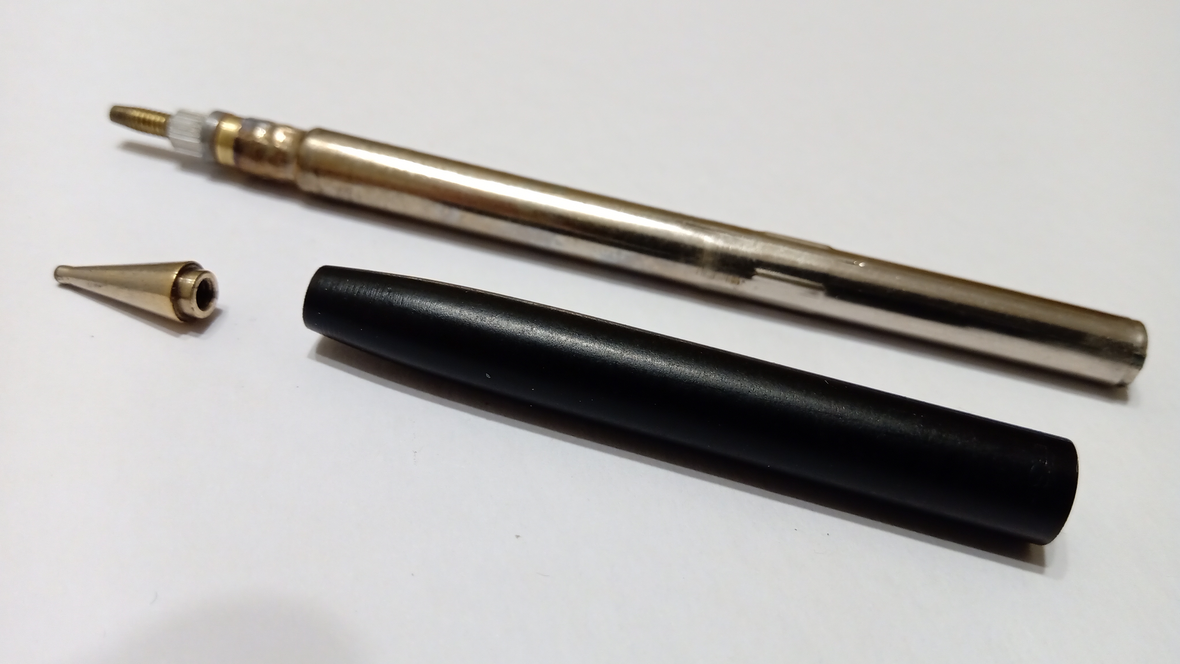Quindi dopo aver sigillato e lucidato la penna stilografica, mi sono dedicato alla matita meccanica, smontando prima il cappuccio, per allineare e regolare la clip, e lucidando la superficie in plastica cercando di ridurre l'impatto, e lucidando le superfici dorate.