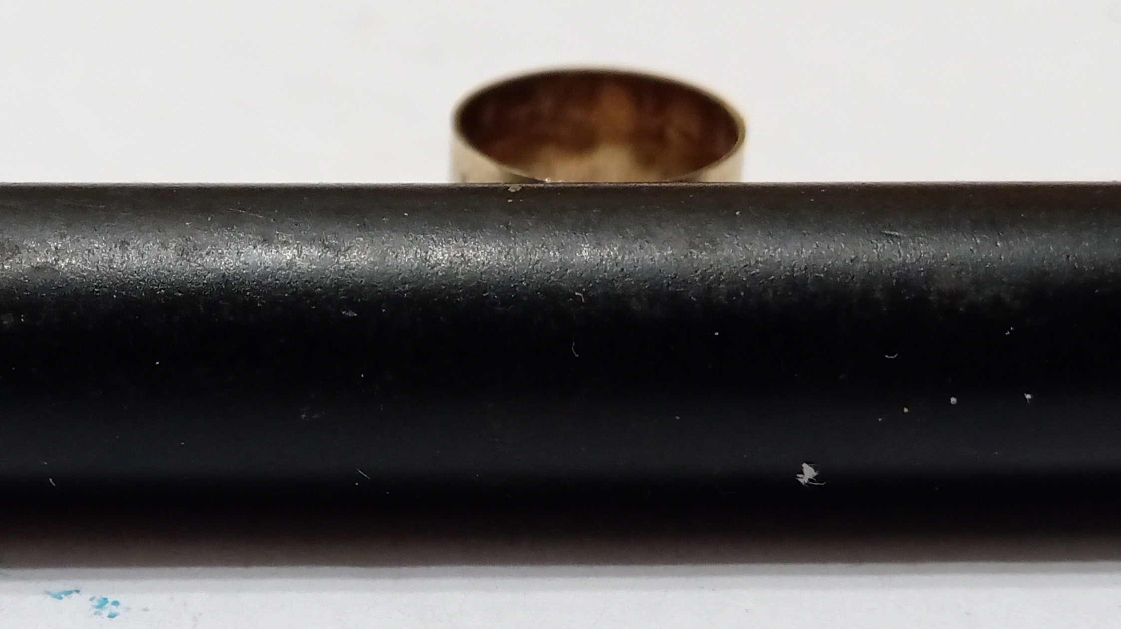 Ho proseguito con il cappuccio, che ho carteggiato con carta smerigliata 500 fino a 1500, rifinendo con una pasta lucidante, fissando poi la fascia in oro con una piccola goccia di Loctite 243, e dopo aver allargato leggermente la sede della clip per evitarne il gioco laterale , rimetto il lucchetto, spingendo con battuta d'arresto e tanta pazienza fino a raggiungere l'ancora...