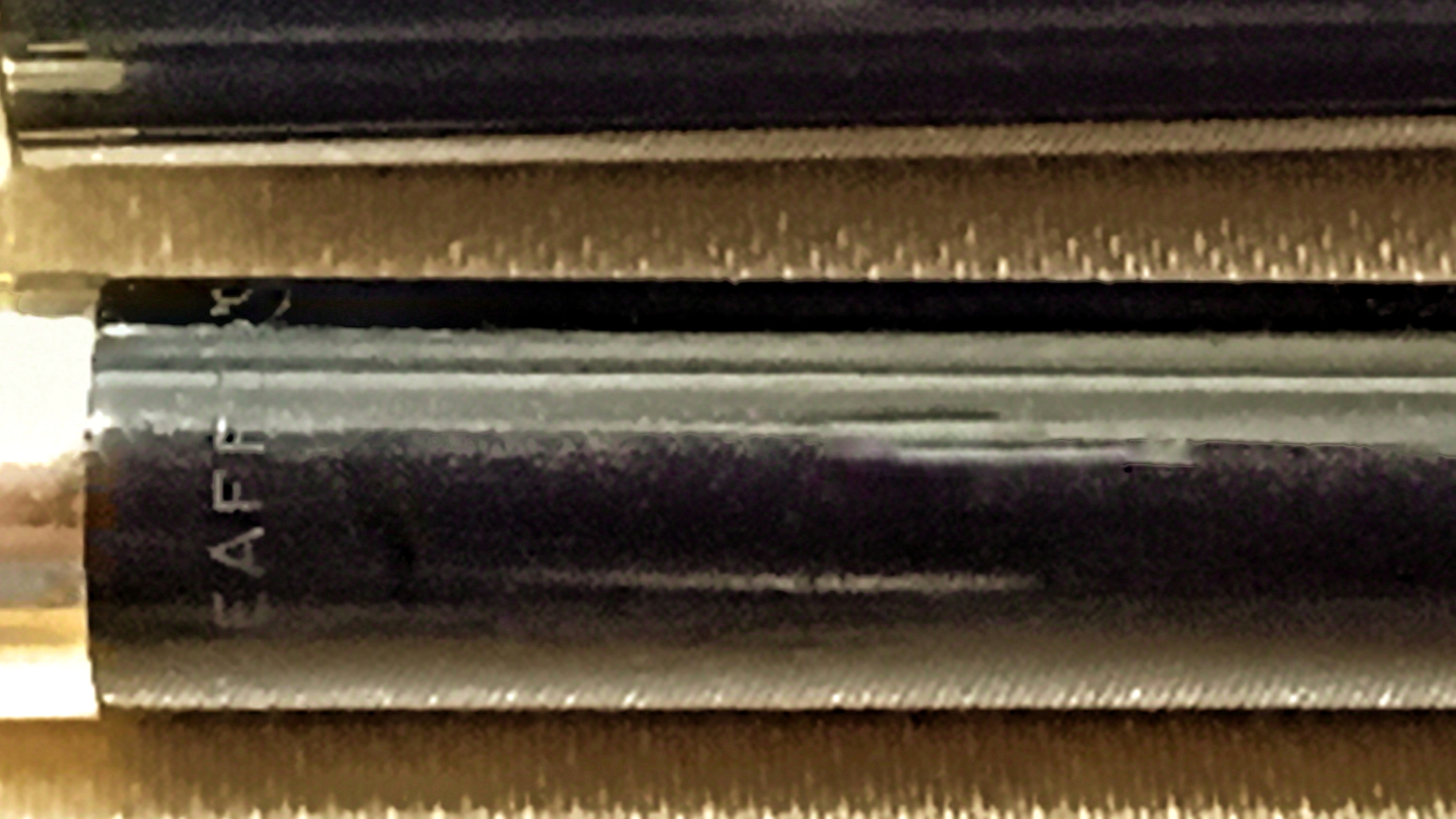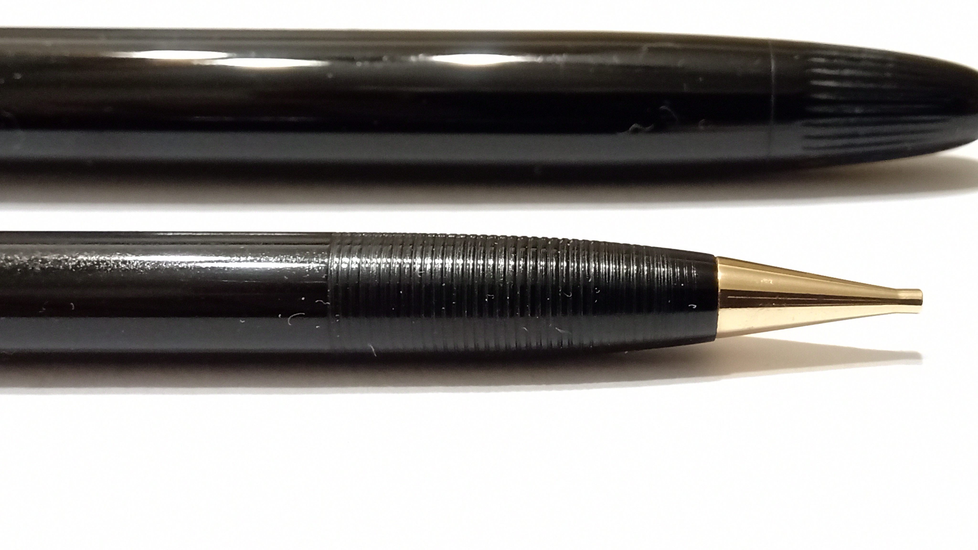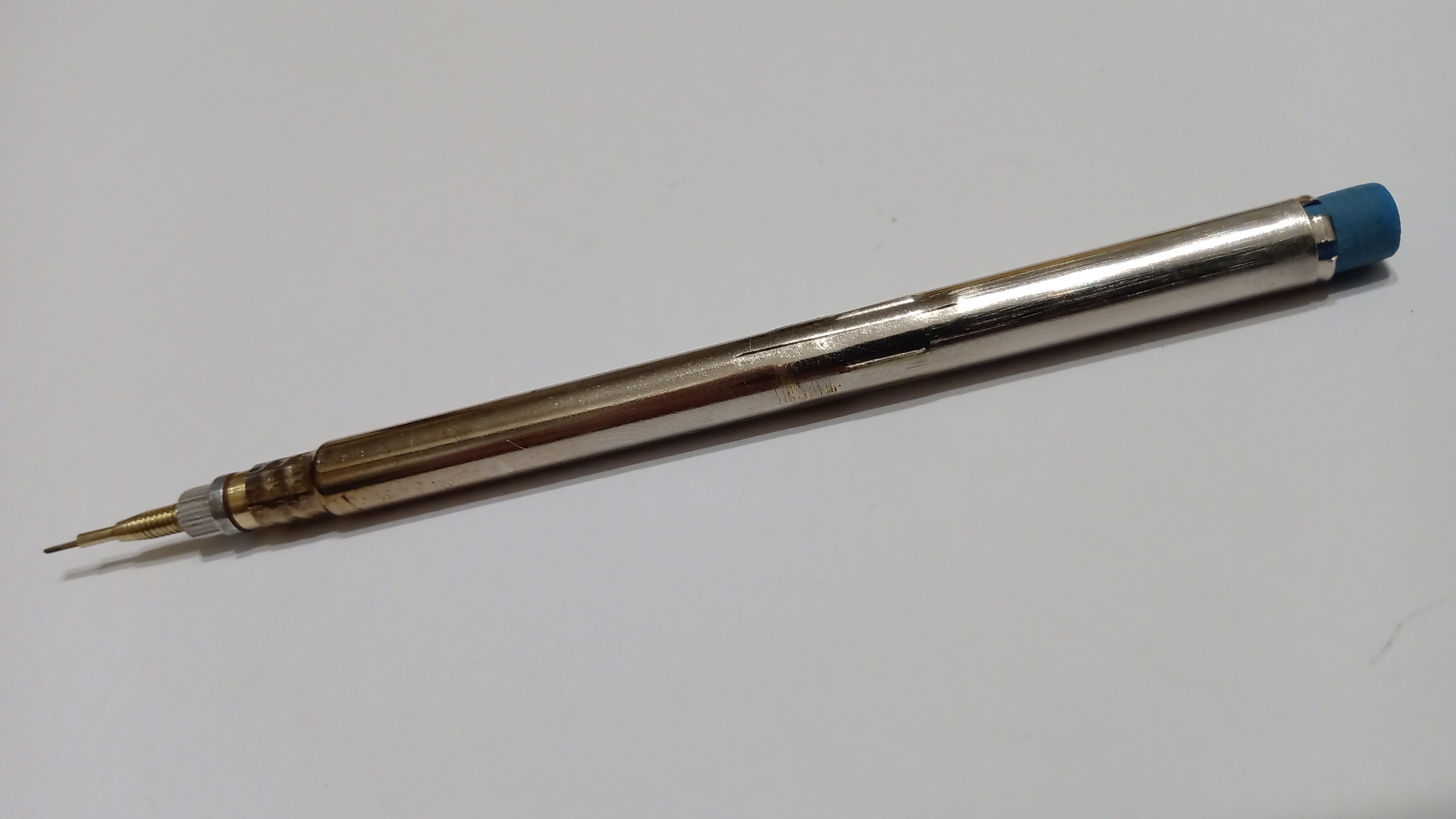 La matita meccanica, invece, è stata acquistata su eBay da un venditore negli USA, ma come si può notare, rispetto alla stilografica, presentava problemi di superficie con materiale percussivo, le scanalature sull'impugnatura erano completamente consumate, il gomma quasi inesistente, e il meccanismo di espulsione abbastanza bloccato...
