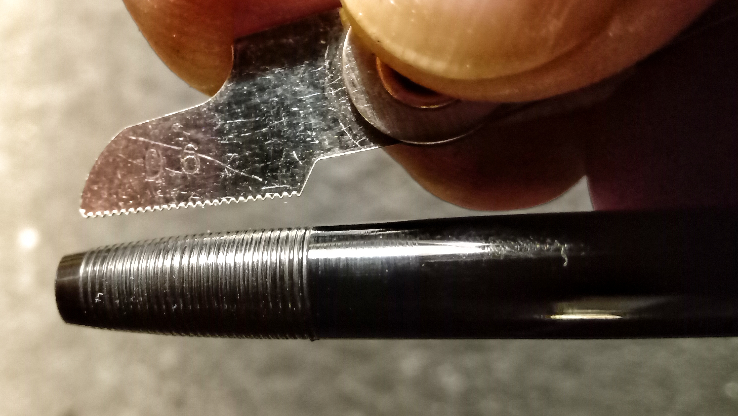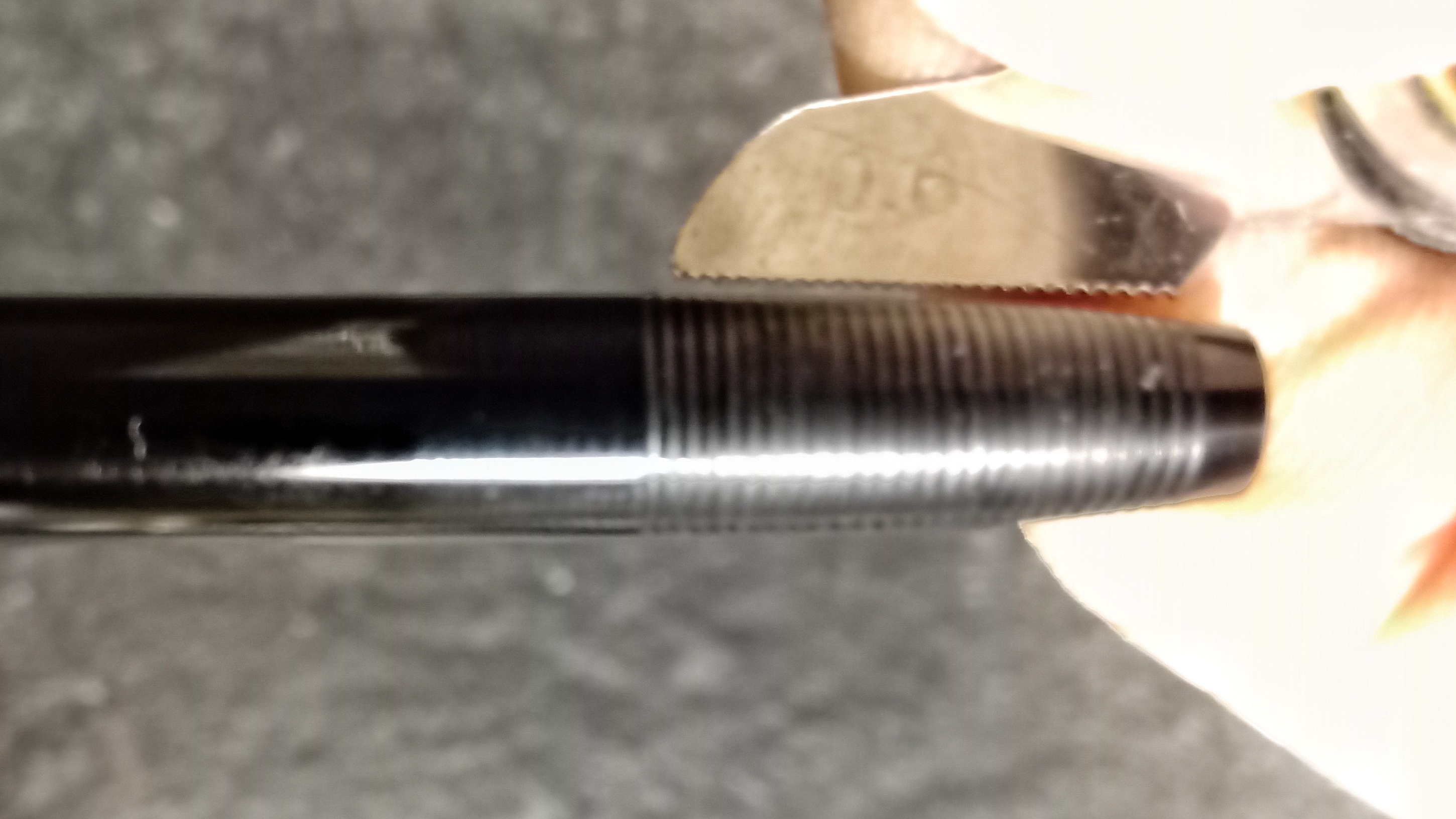Ho levigato delicatamente la canna con carta smerigliata 500 e poi 1500, quindi l'ho messa a ruotare (si può usare un trapano a velocità variabile ben fissato) e con un pettine in acciaio da 0,6 mm tra i denti e una buona mano ho rigenerato le creste del calcio della canna ...