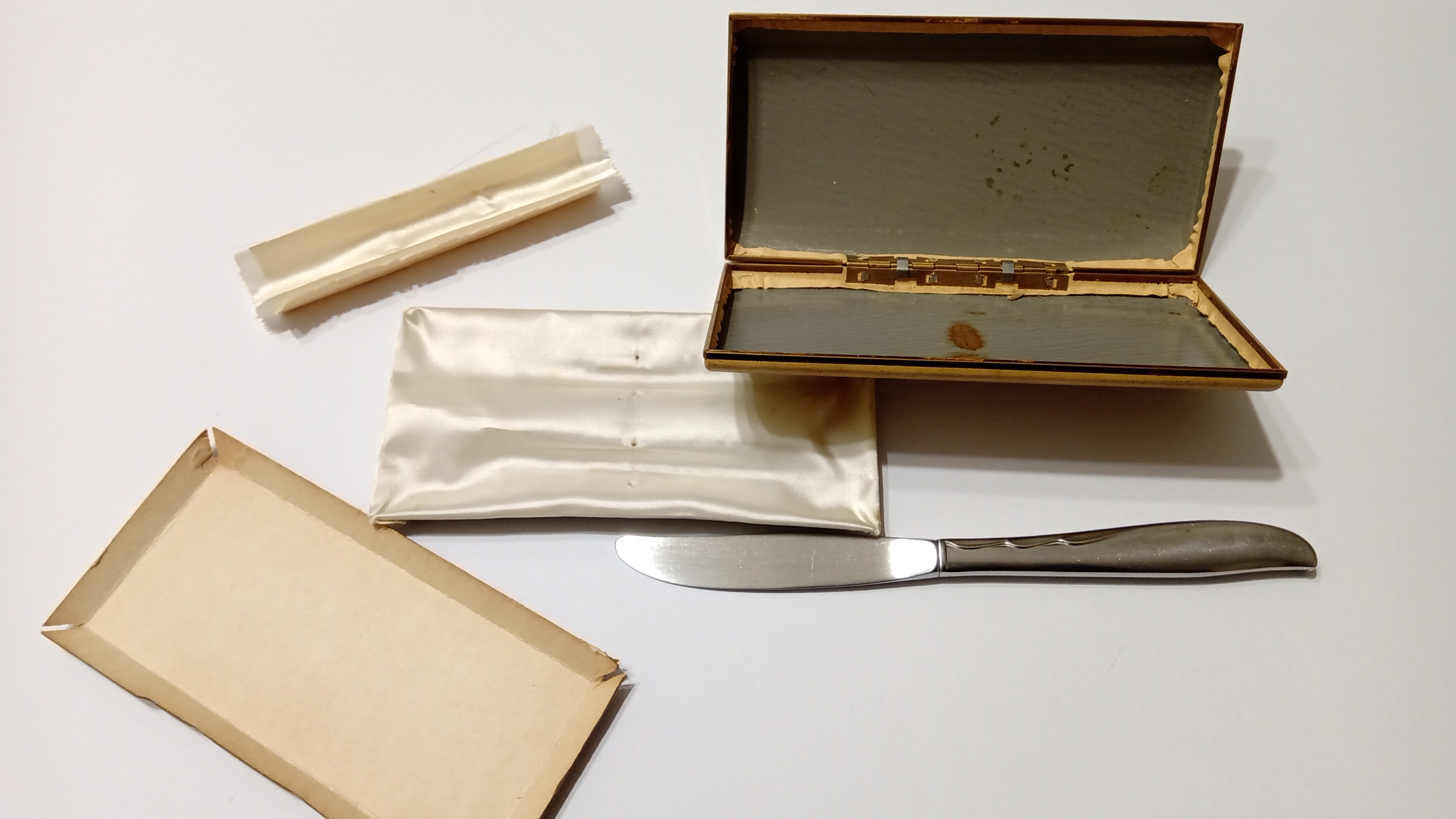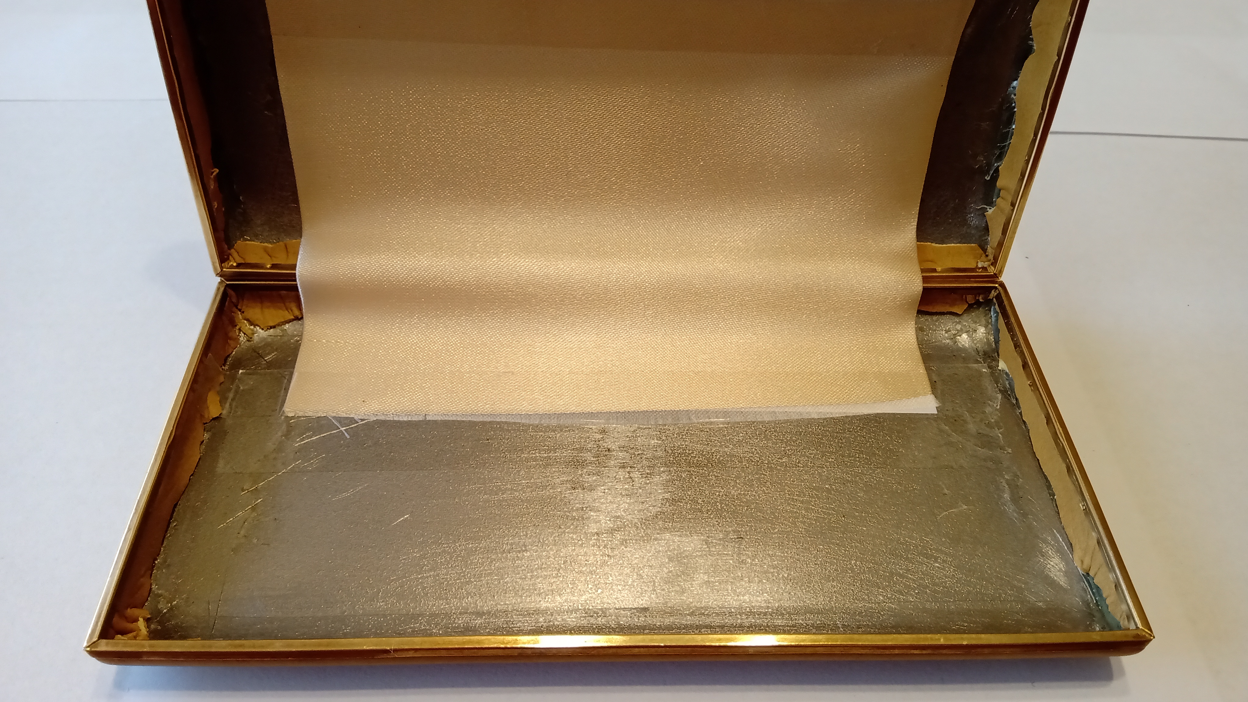 La scatola è stata acquistata da un venditore in Argentina, e sebbene strutturalmente fosse intatta, mantenendo in buone condizioni i pani e la cerniera, il suo esterno era molto deteriorato, con tessuti stampati mancanti all'interno...