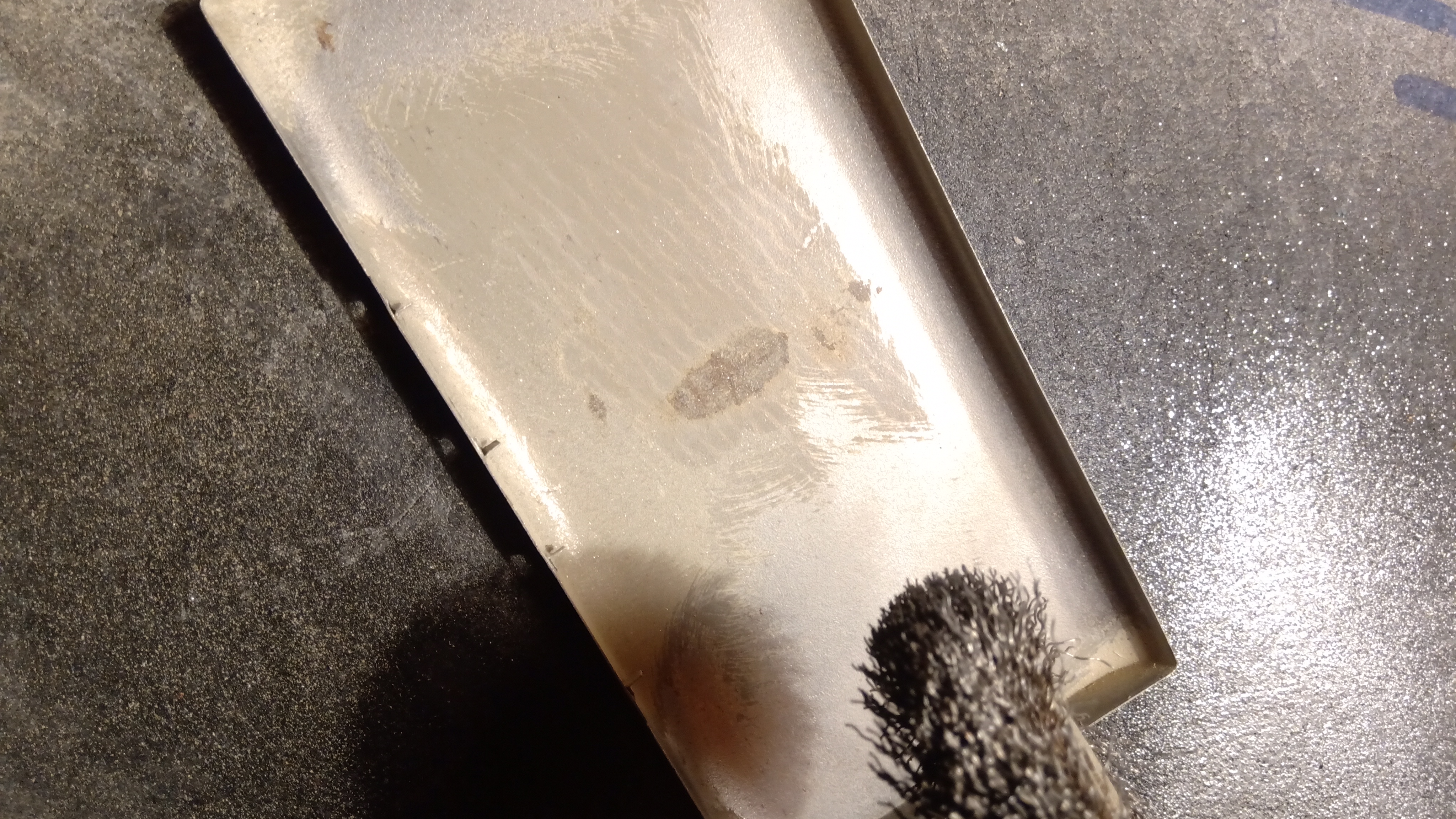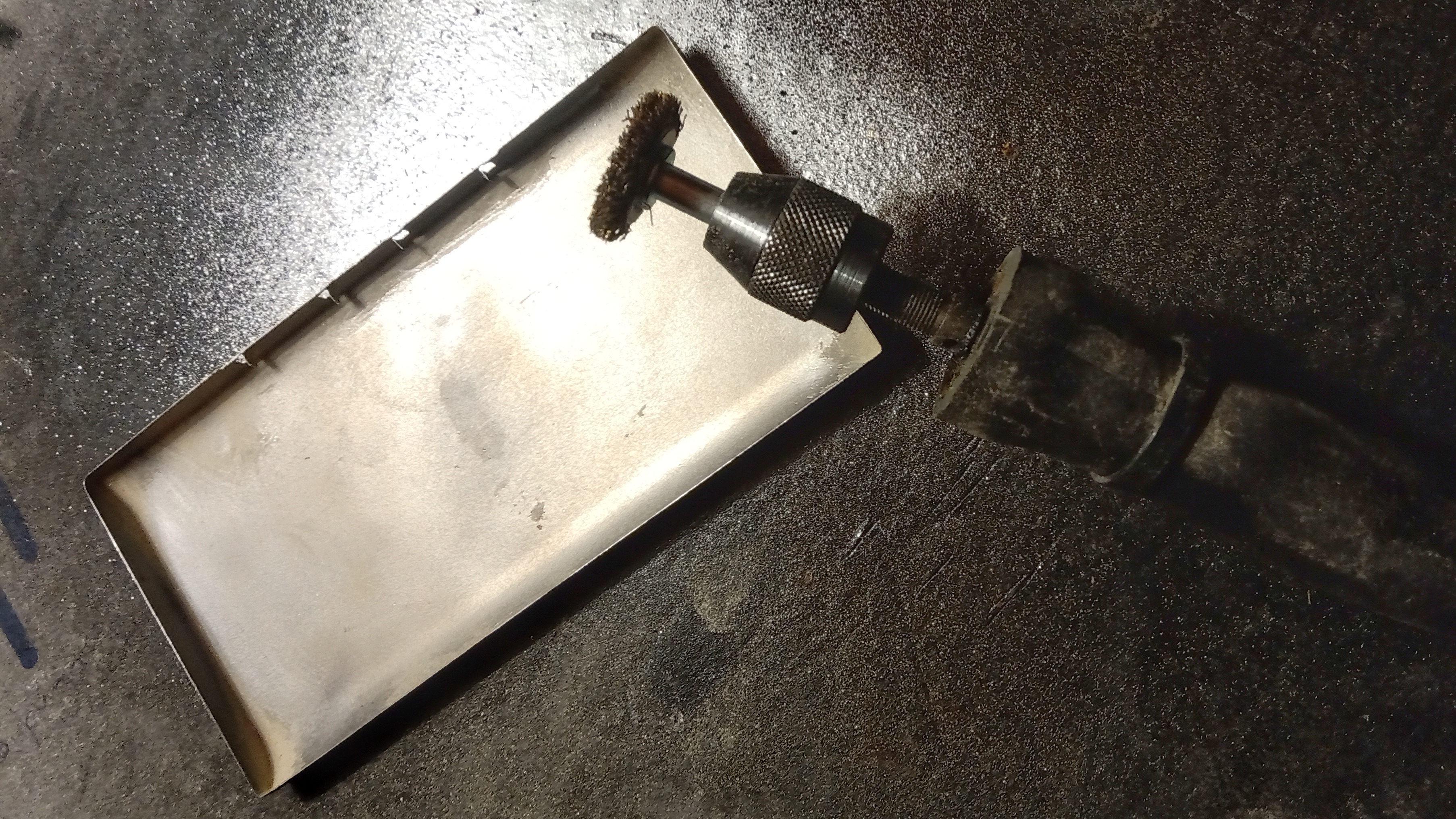 Ho provveduto con una spazzola in acciaio ed una più piccola in bronzo, a pulire accuratamente la superficie della lastra per la sua successiva verniciatura...