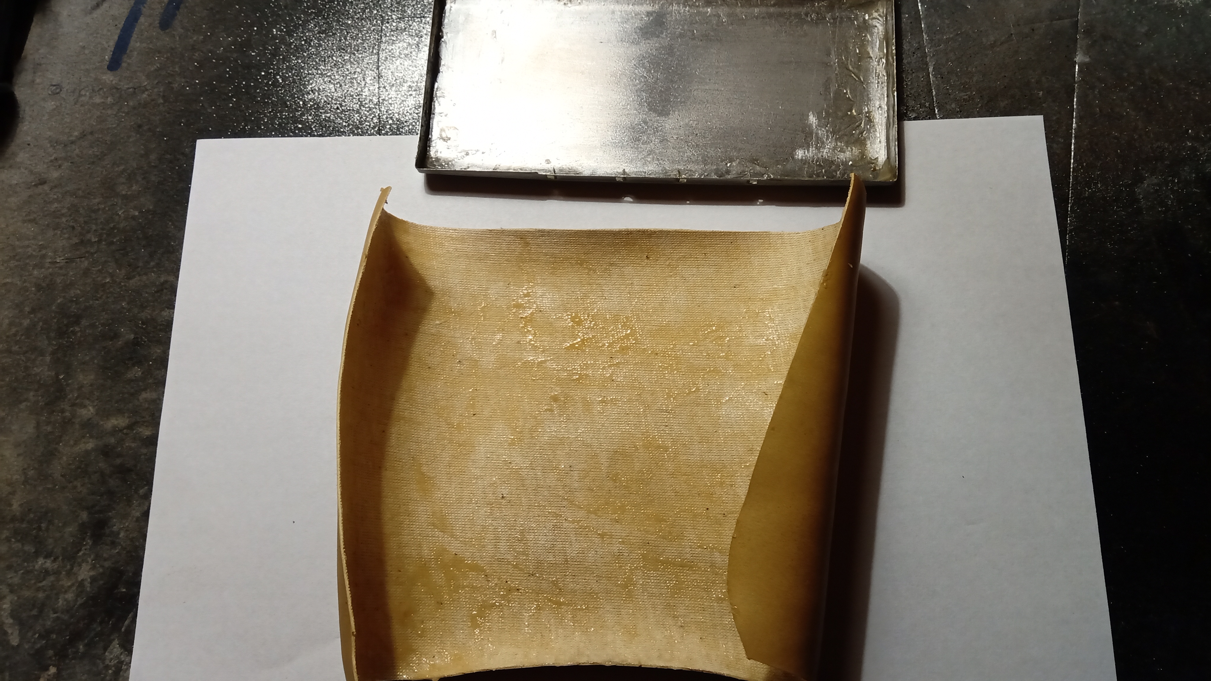 lasciando sia la base che il coperchio già aderiti al rivestimento...