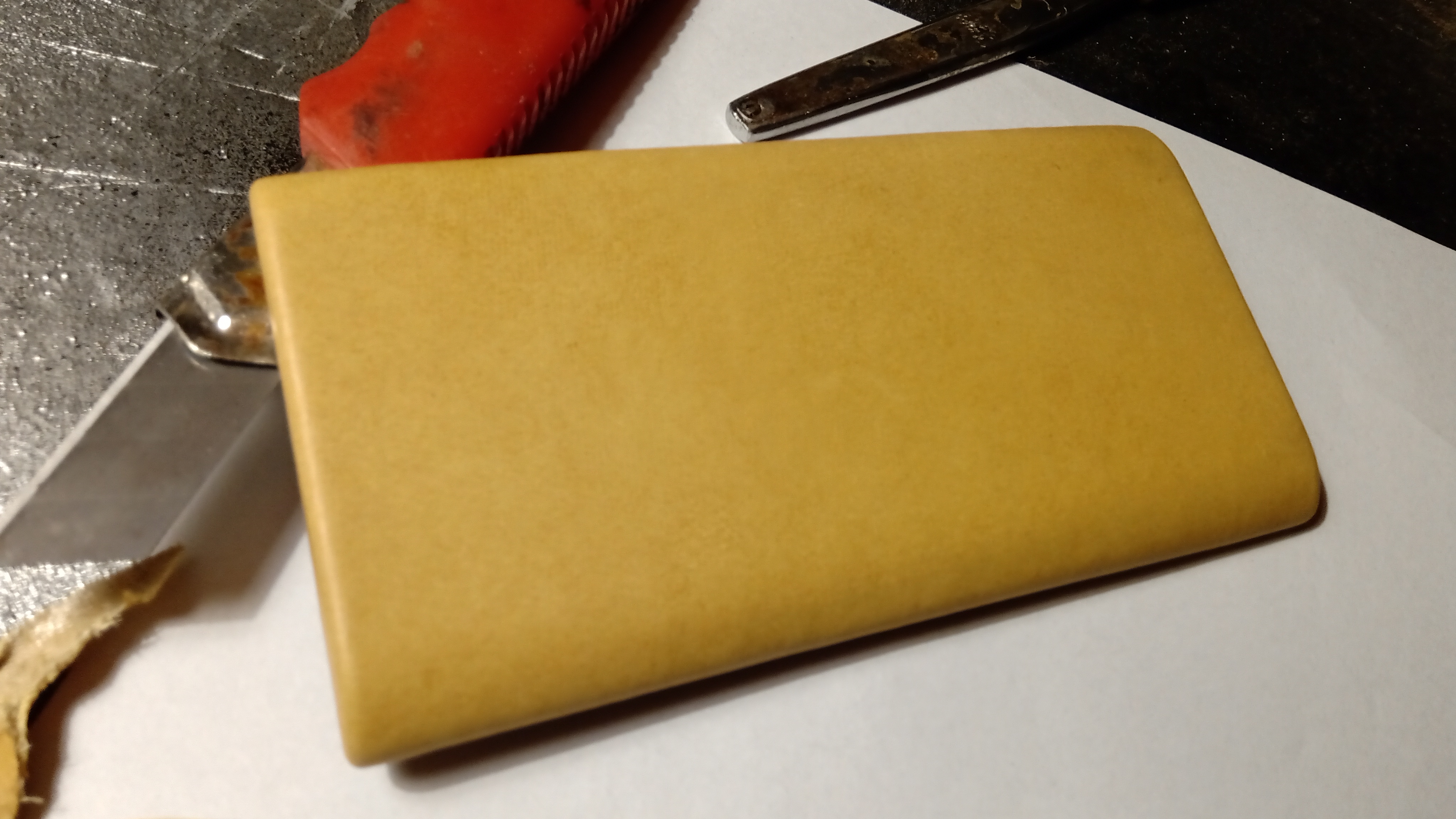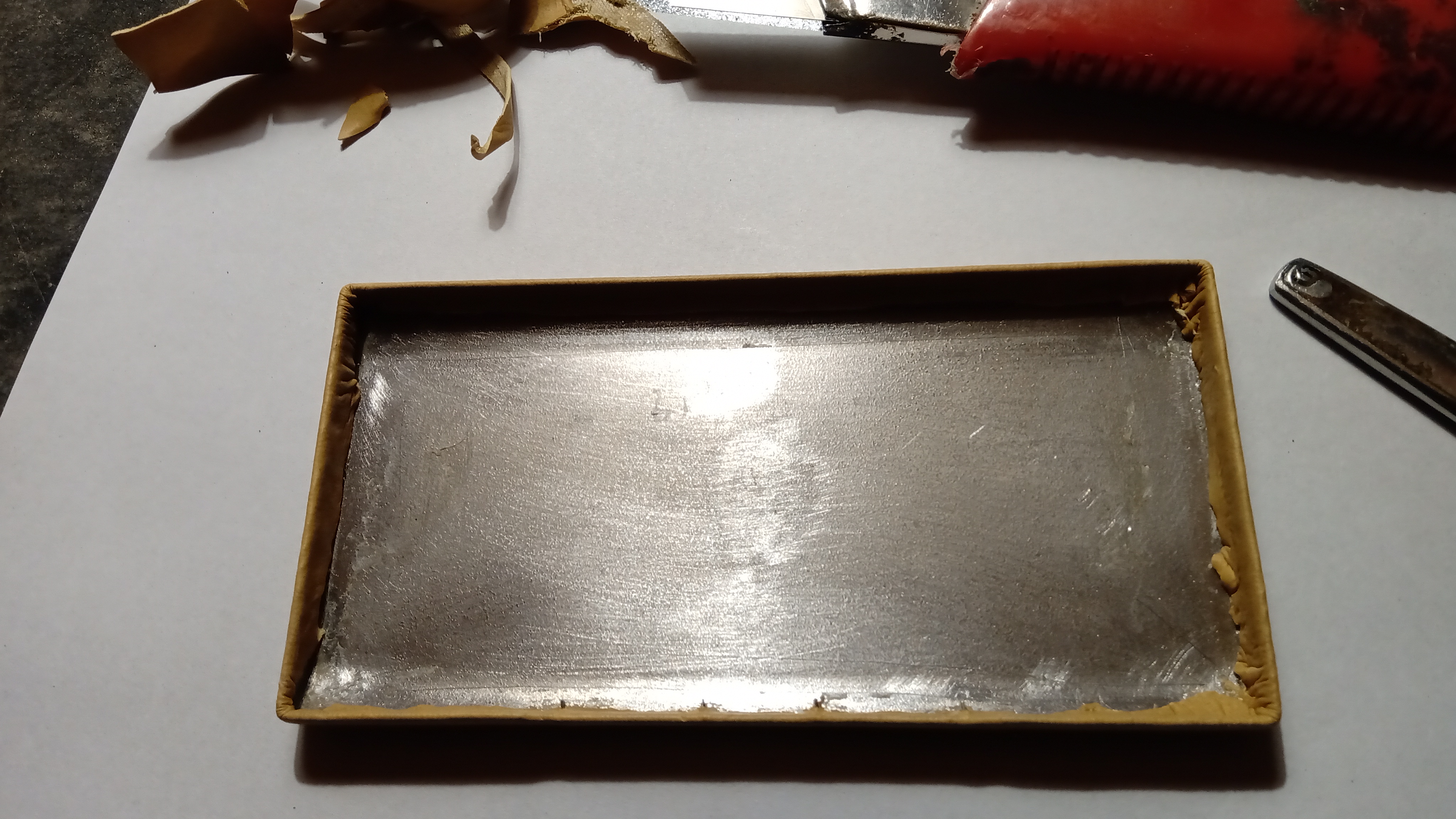 Una volta incollata la lamiera esterna, ho stretto e fissato il rivestimento ai bordi interni, rifilando l'eccesso...