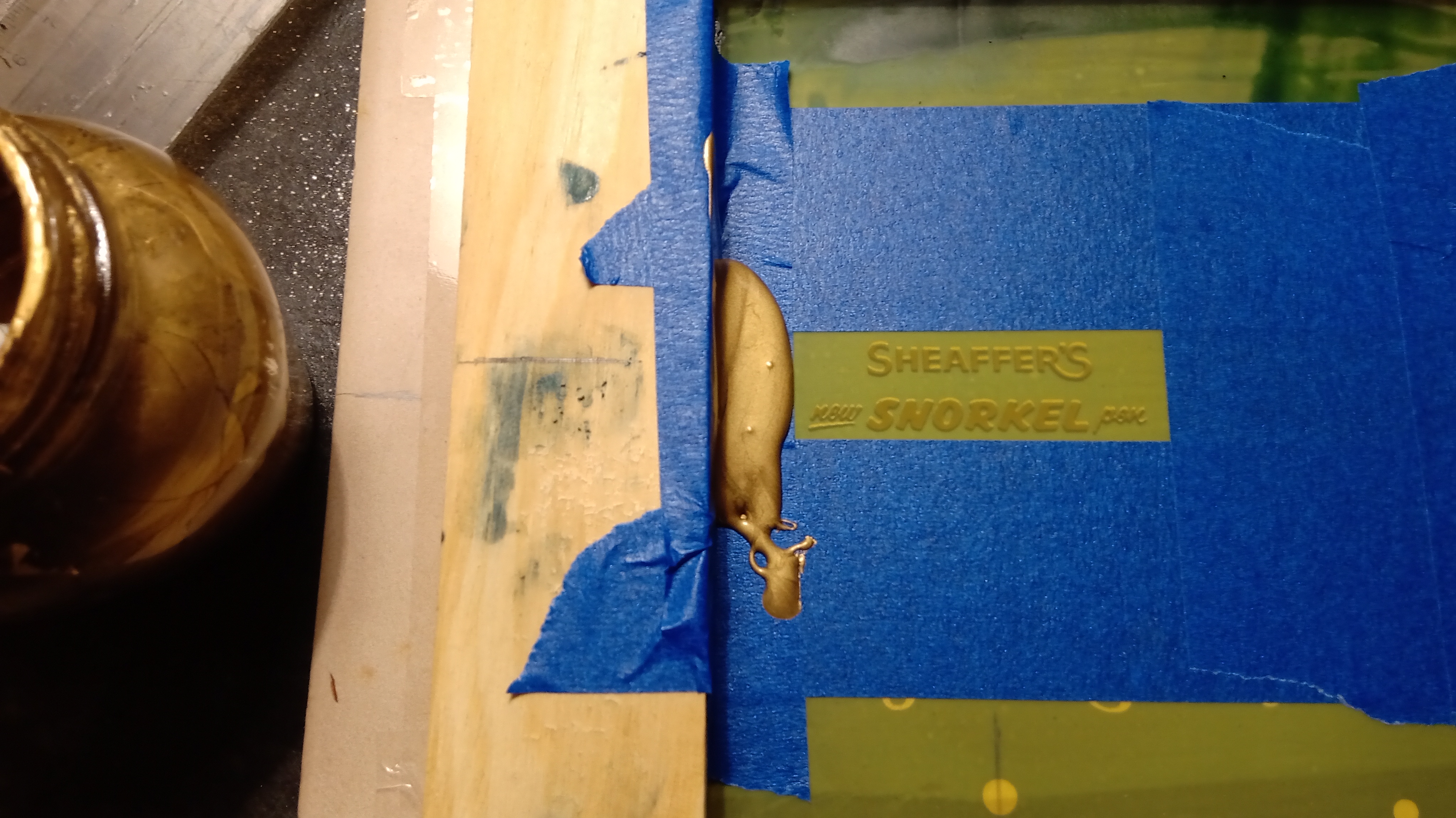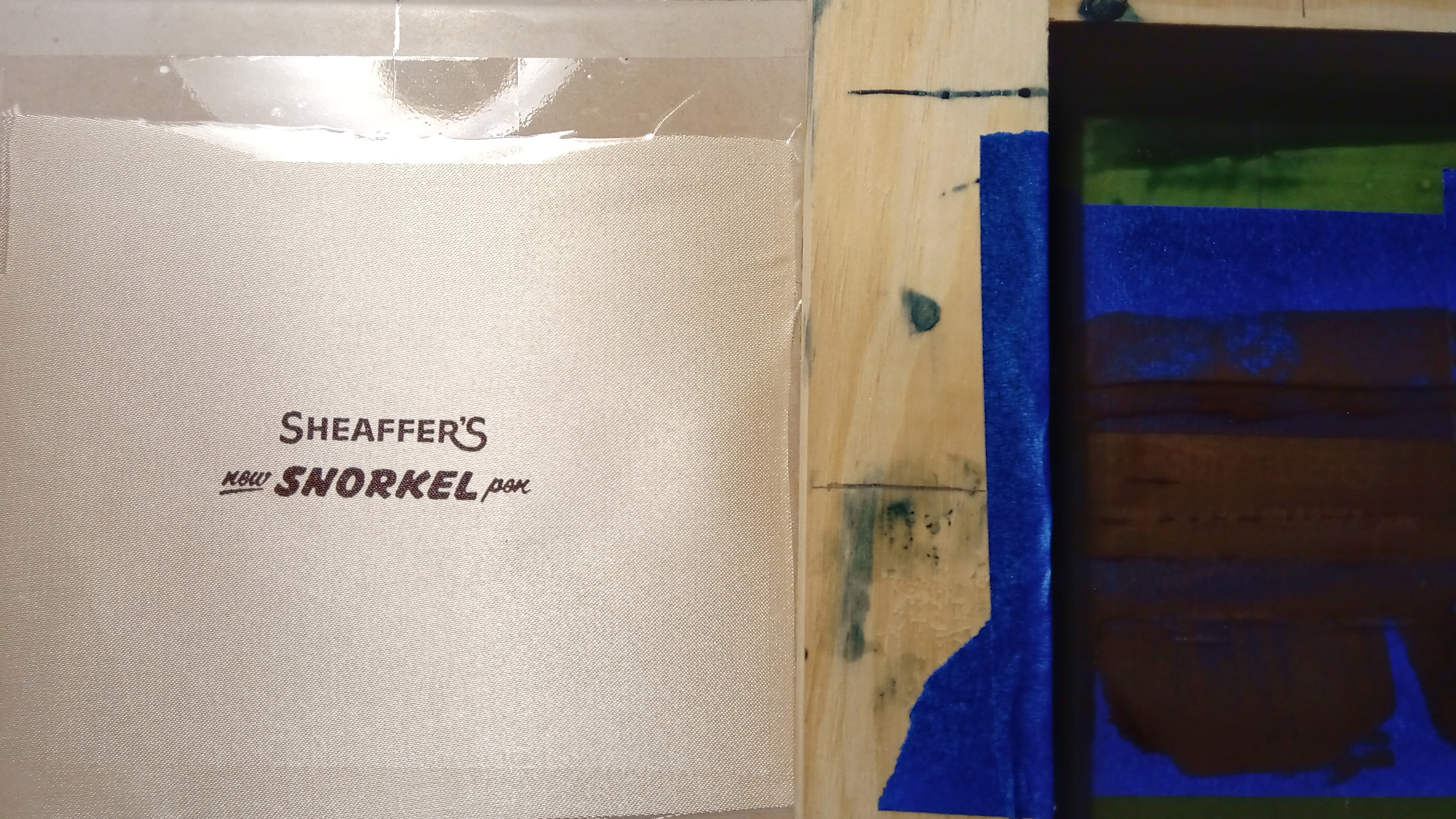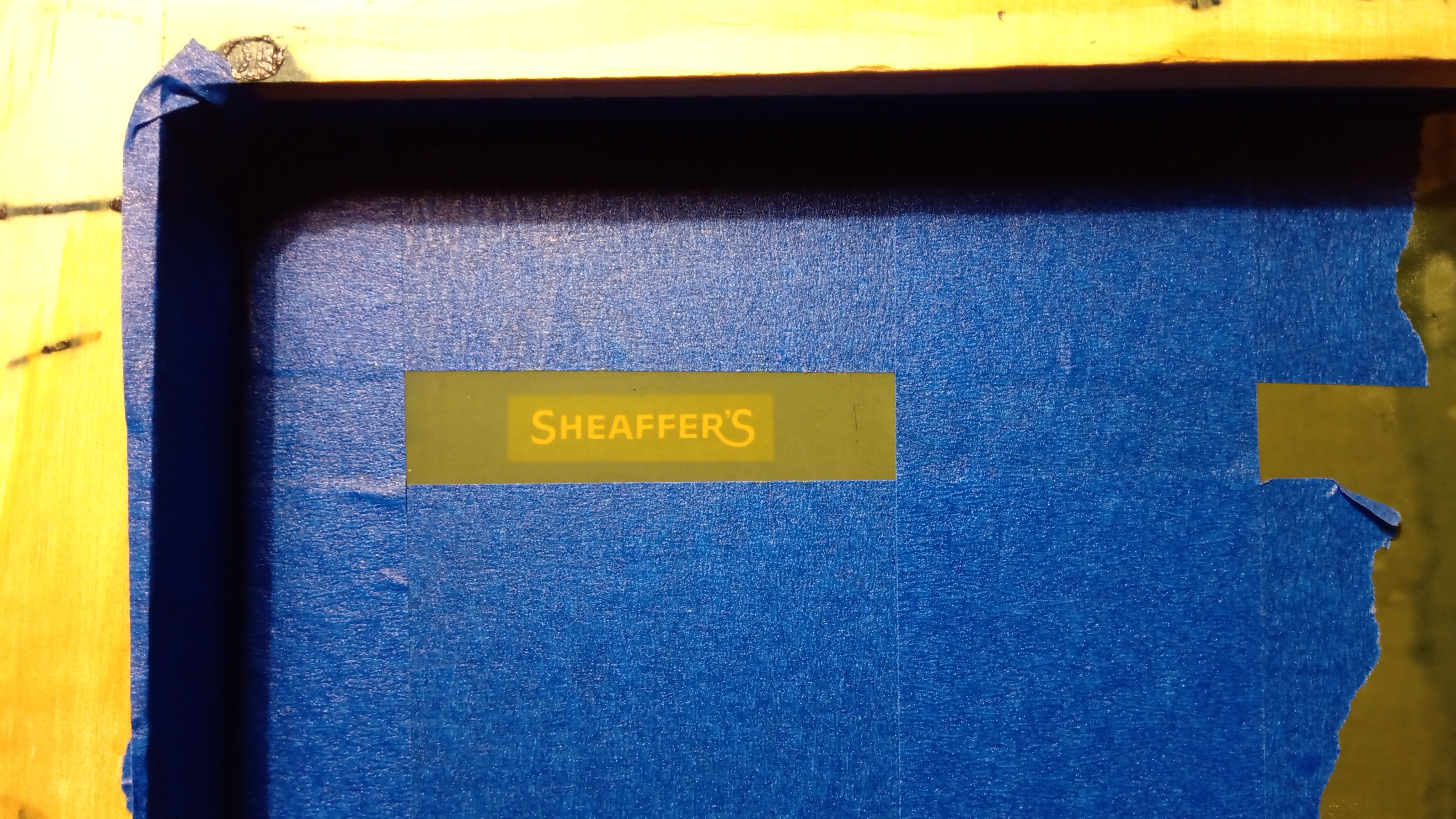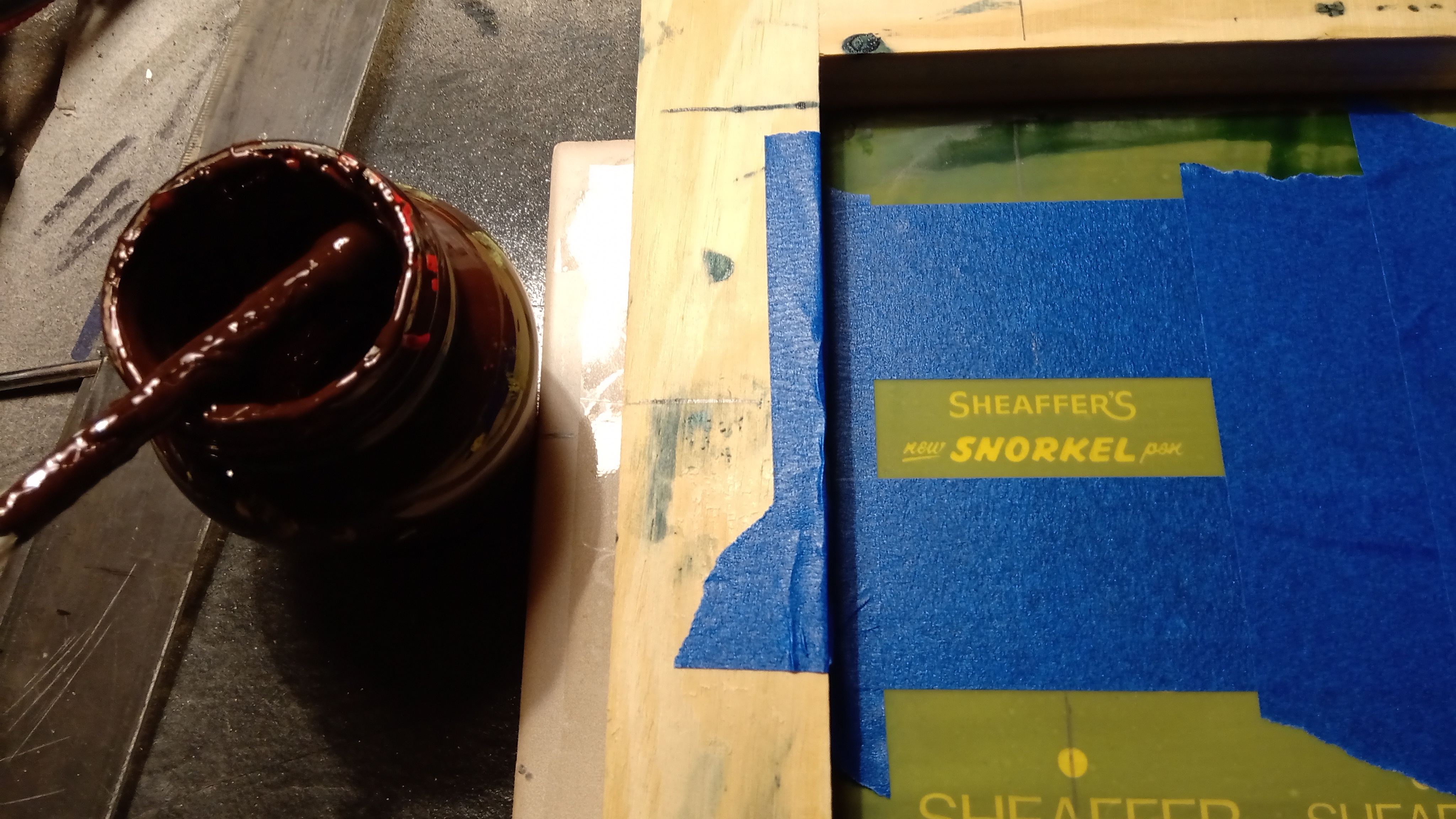 Ho scelto il logo da stampare dalla cornice serigrafica e ho mascherato il resto per evitare il passaggio di inchiostro...