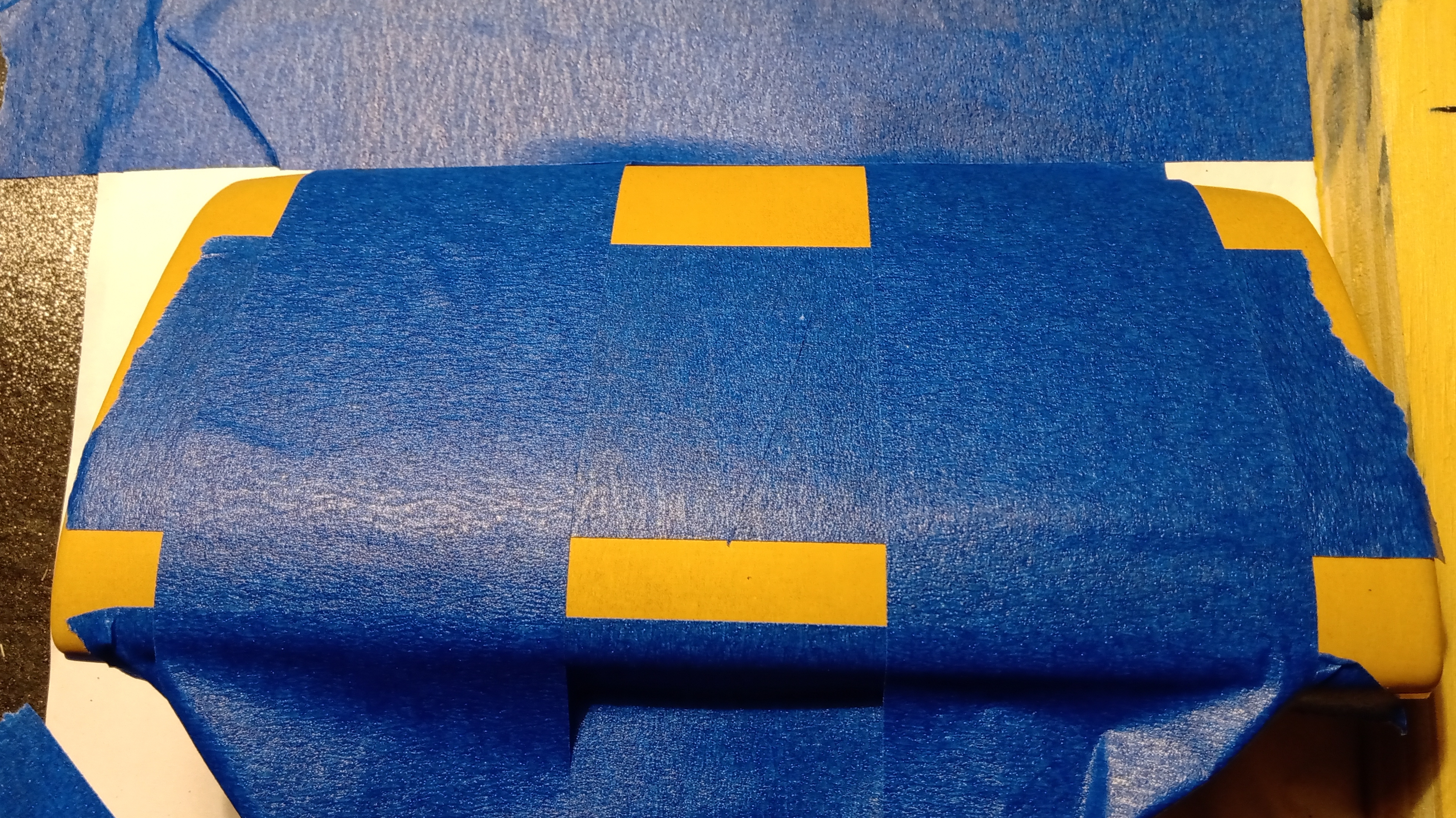 Prima di posizionare la cerniera, è stato necessario stampare il logo sul coperchio, delimitando l'area prescelta e proteggendo il resto del rivestimento...
