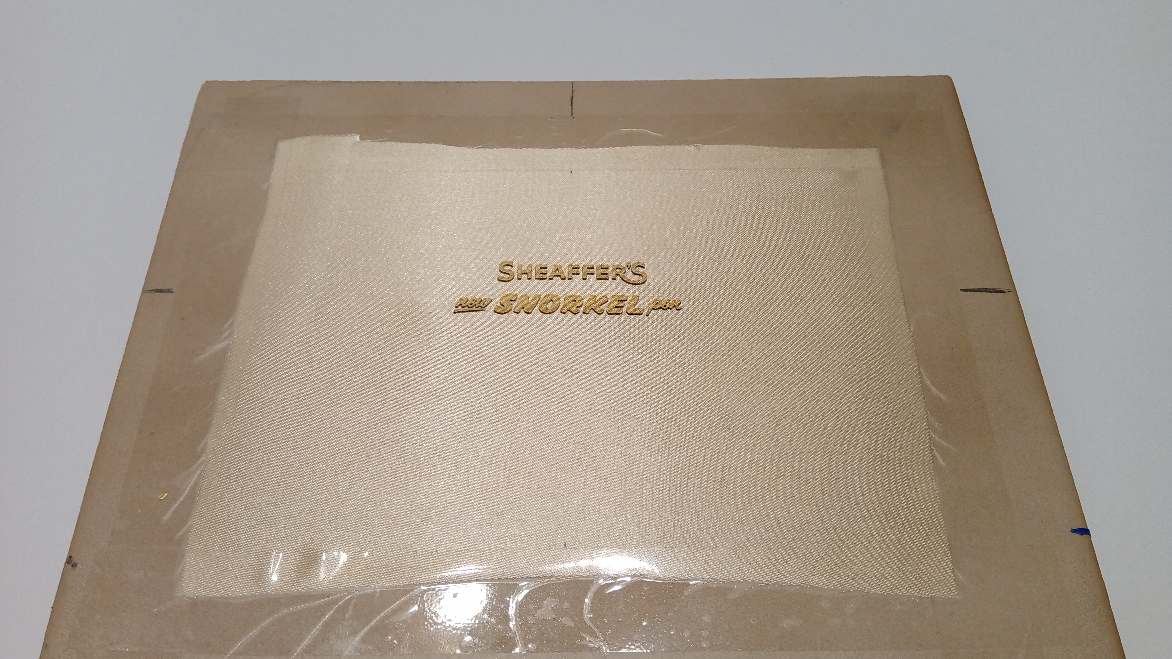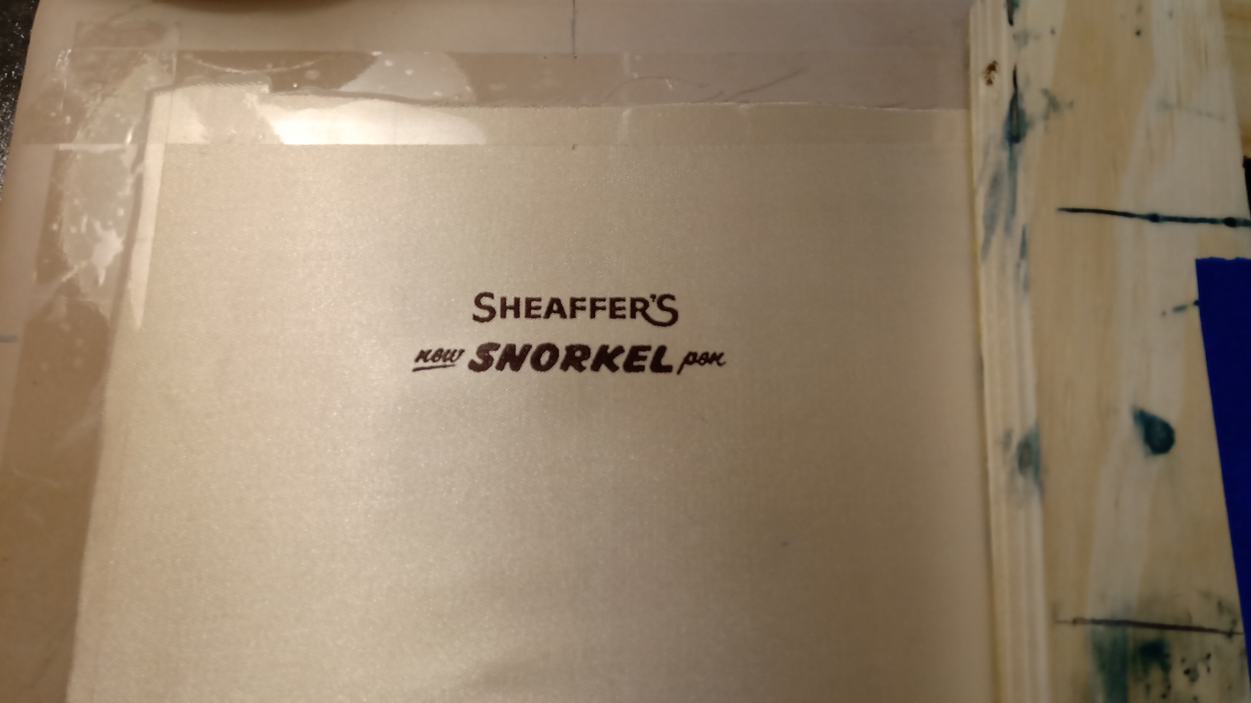 Ho anche dovuto stampare il logo originale sul telo di copertura, e l'ho fatto prima con un inchiostro vinilico scuro...