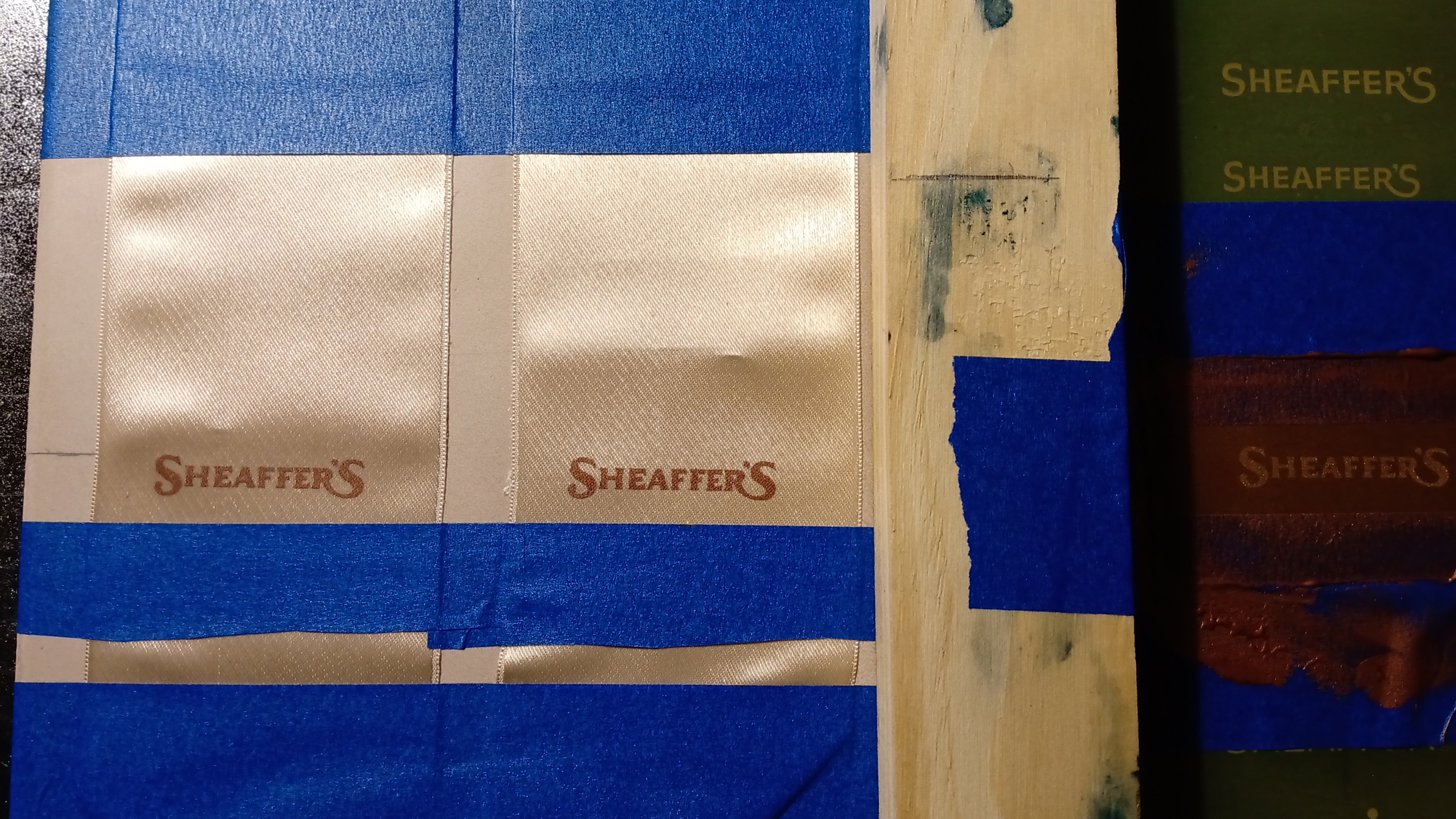 Ho stampato il logo con un inchiostro vinilico abbastanza viscoso, sfruttando l'area delimitata dalla mascherina per il corretto posizionamento...